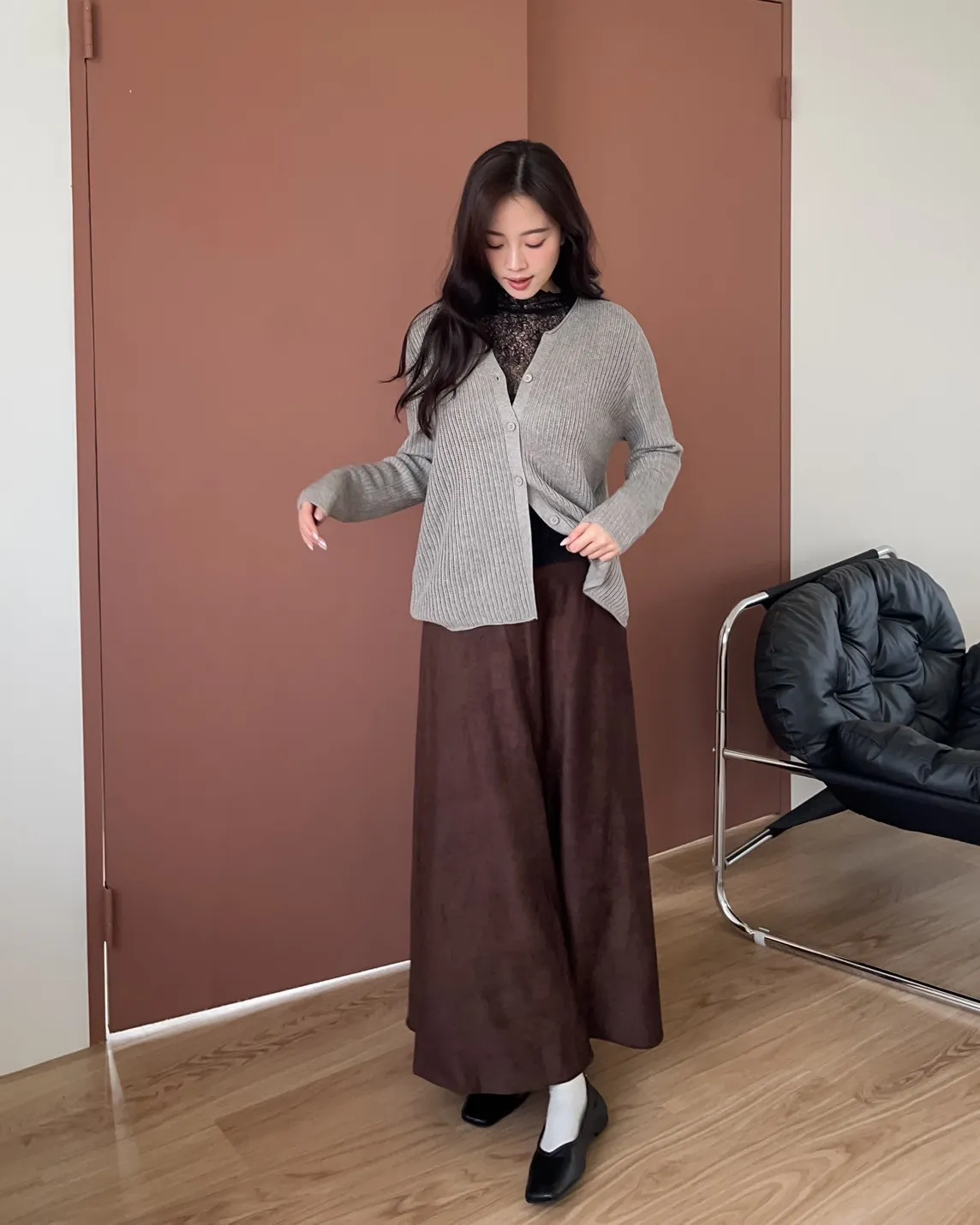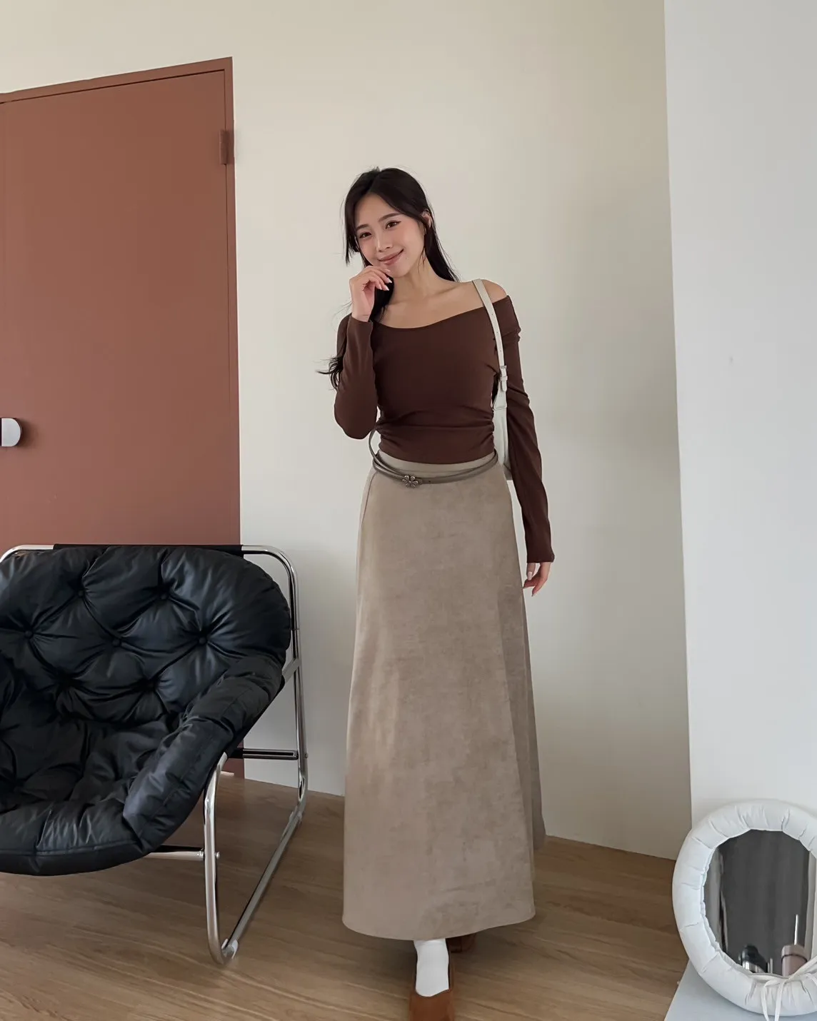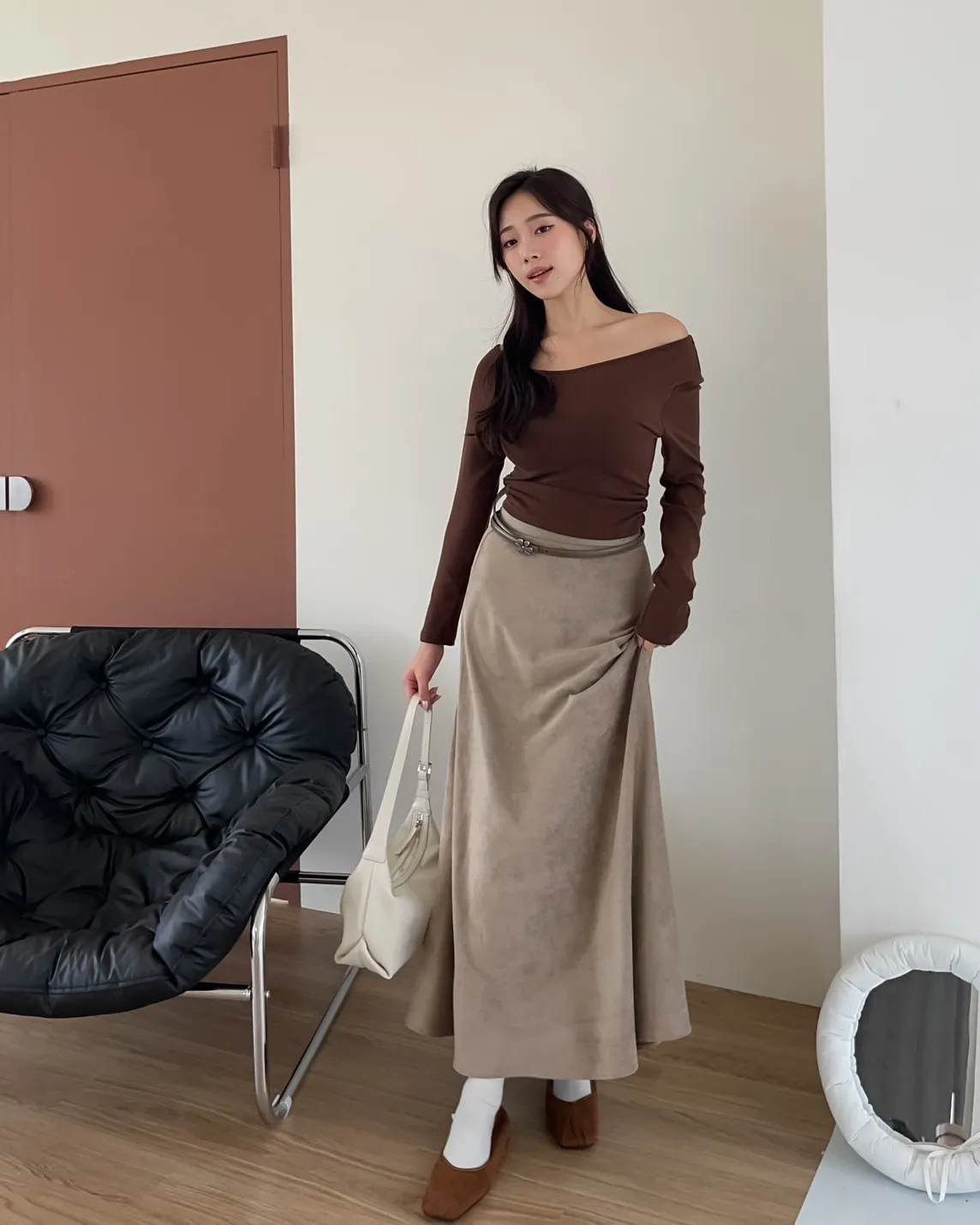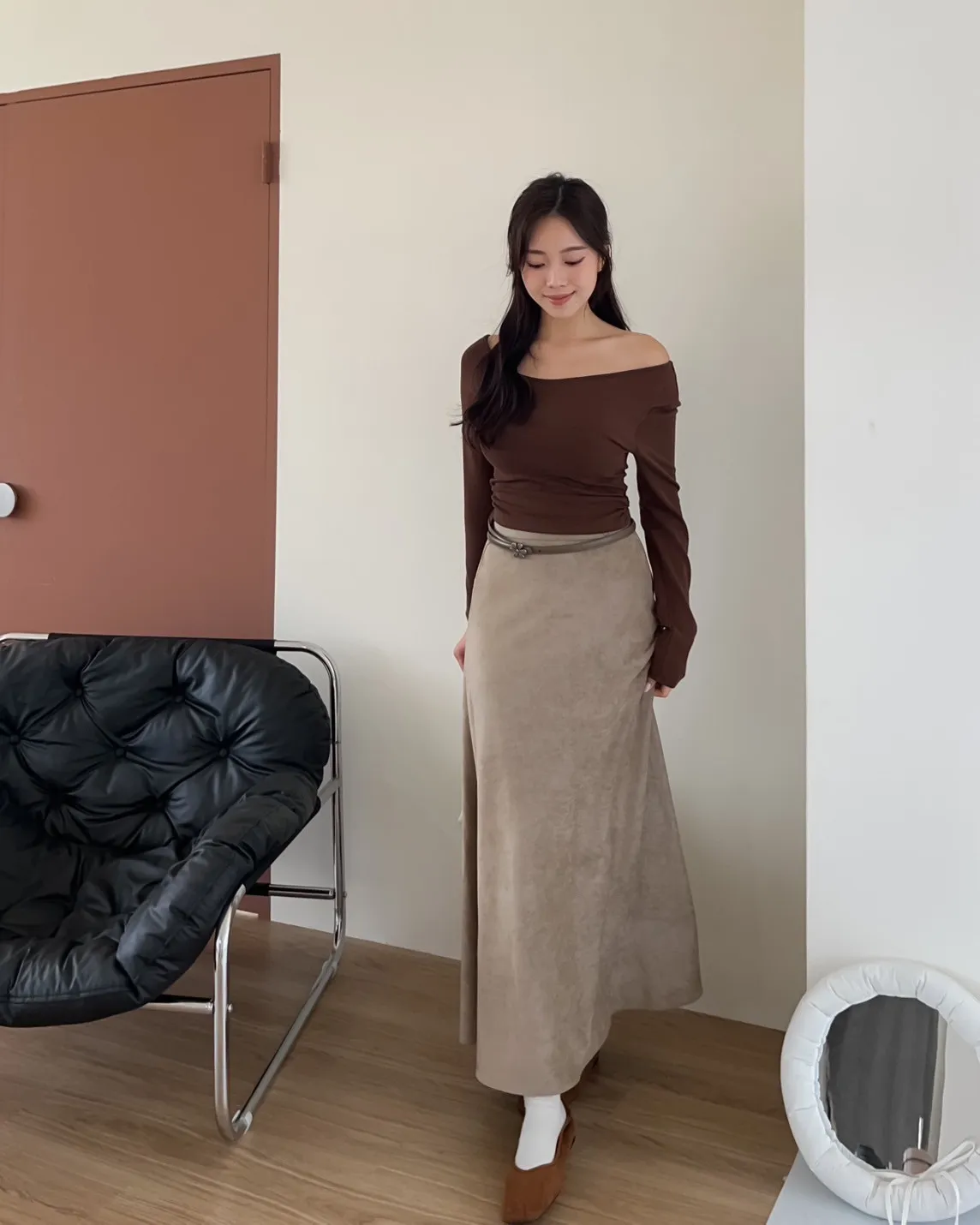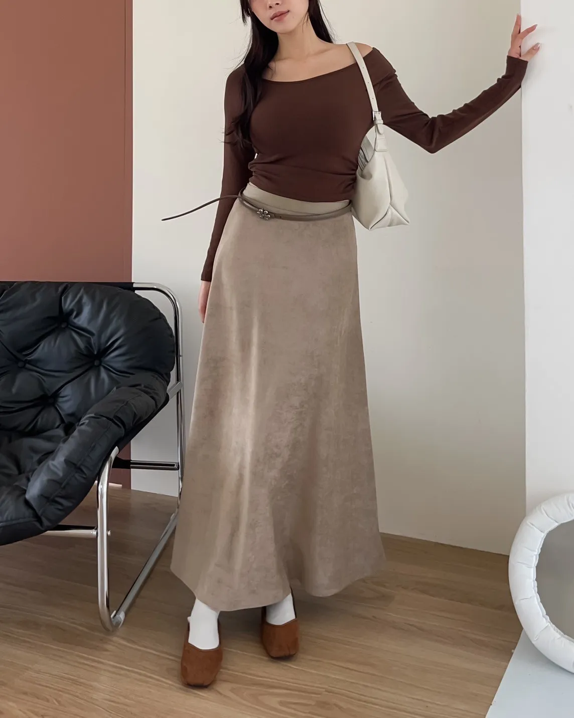 U0085秋日氣息麂皮A字長裙(奶茶/咖啡/黑)