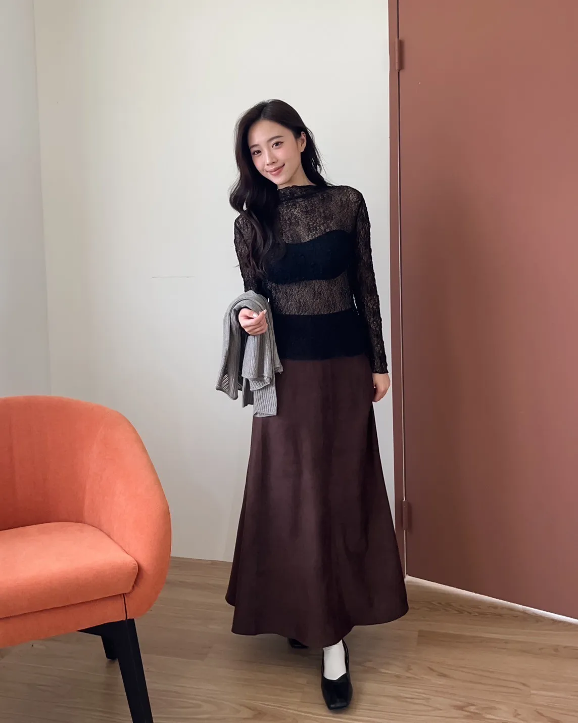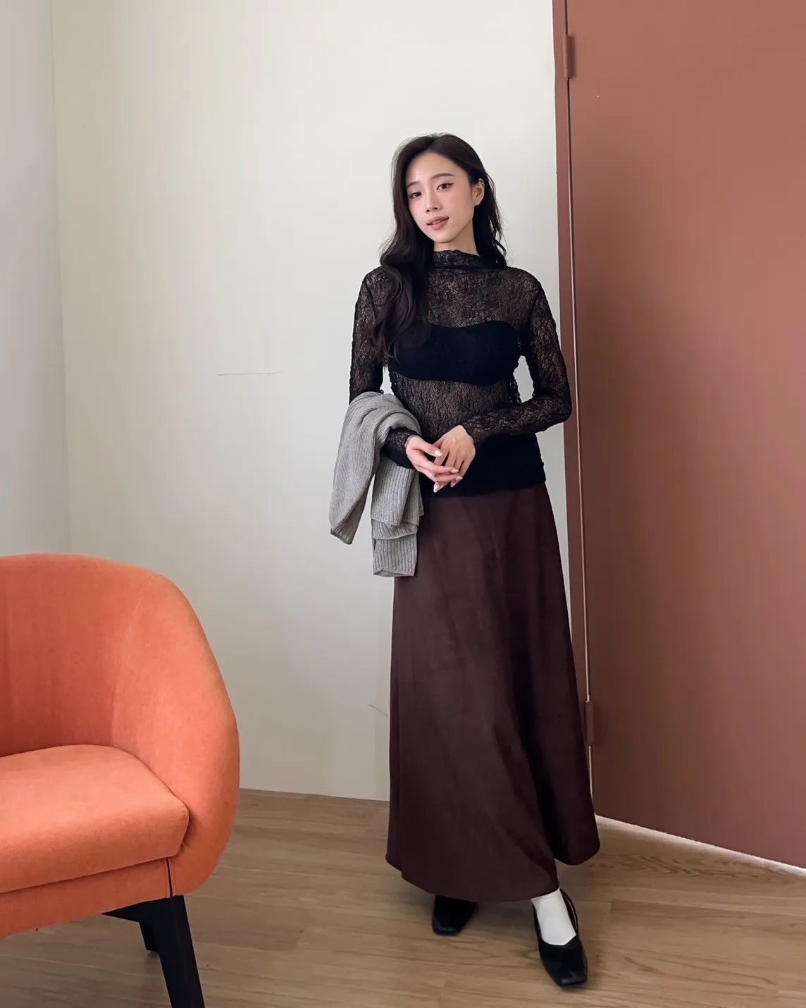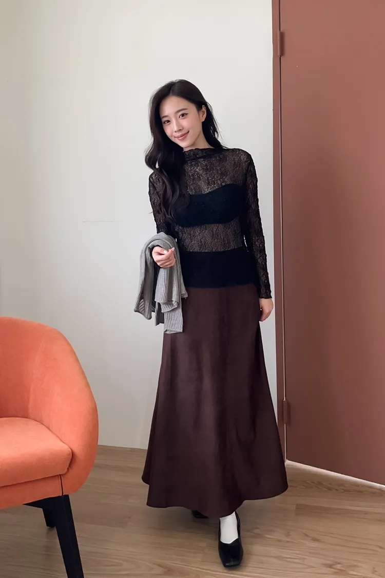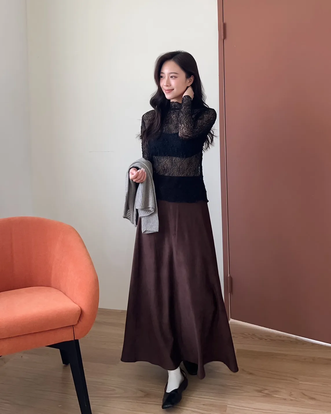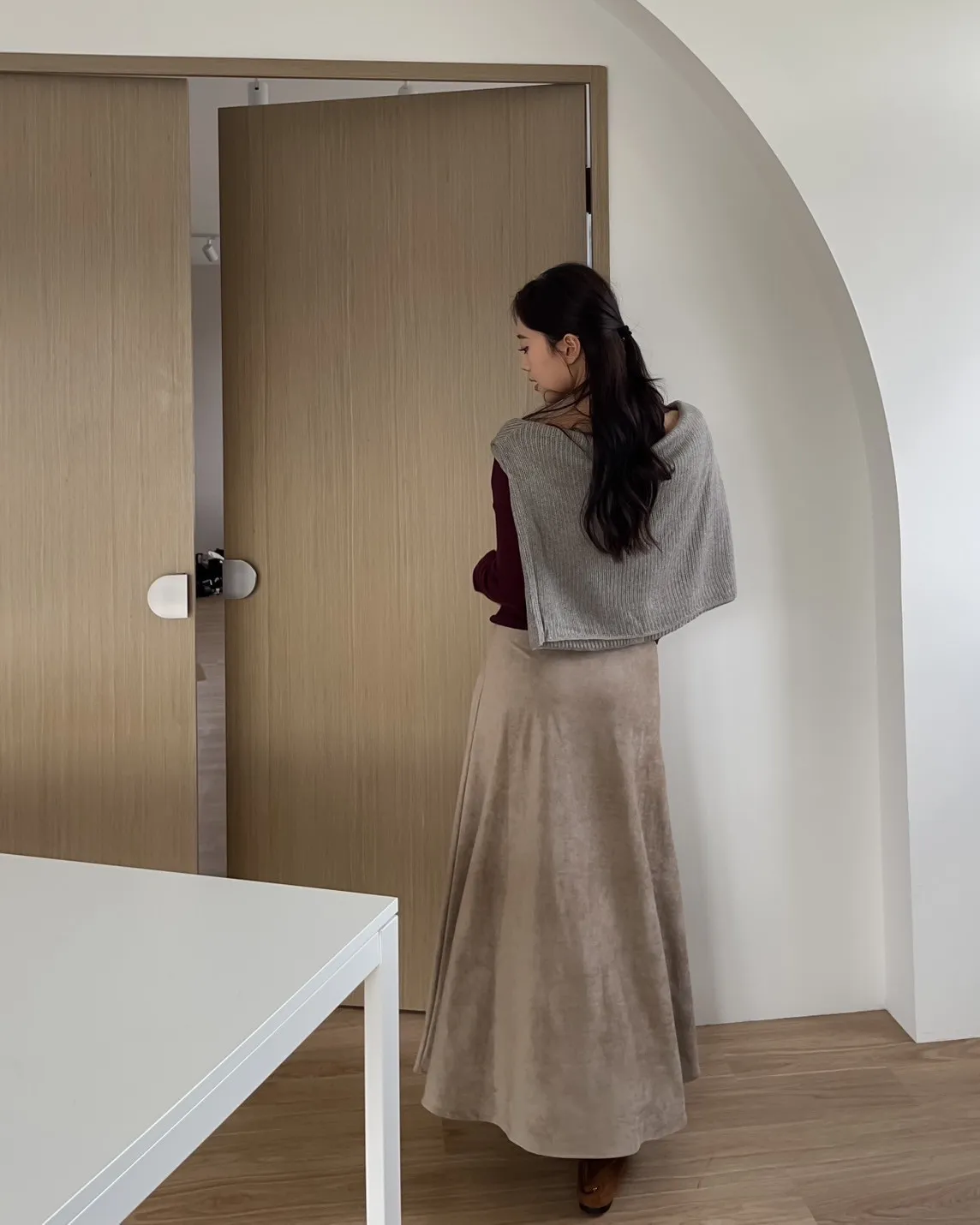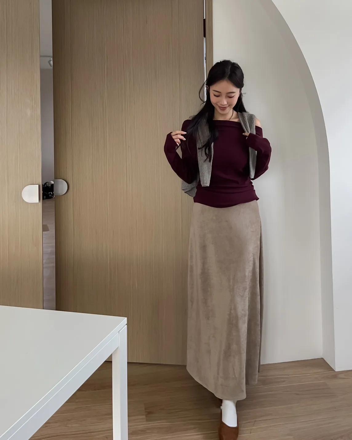U0085秋日氣息麂皮A字長裙(奶茶/咖啡/黑)