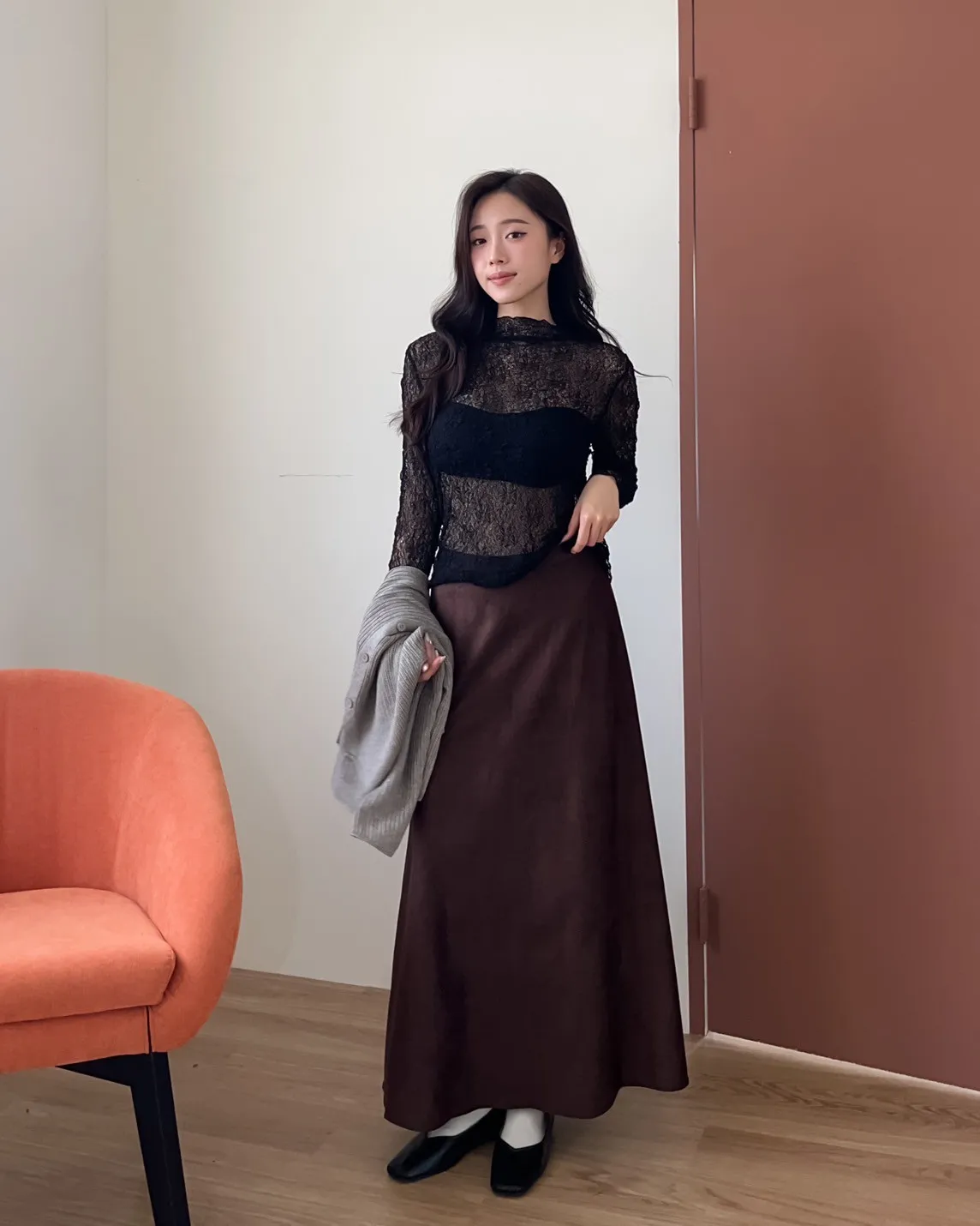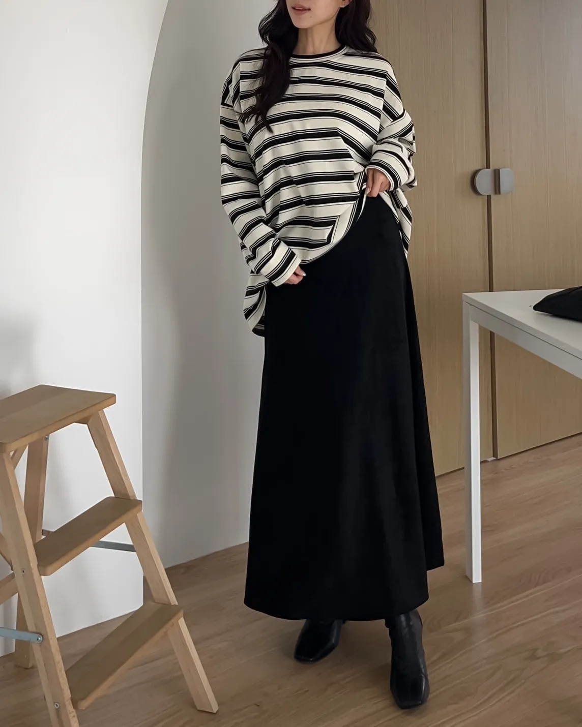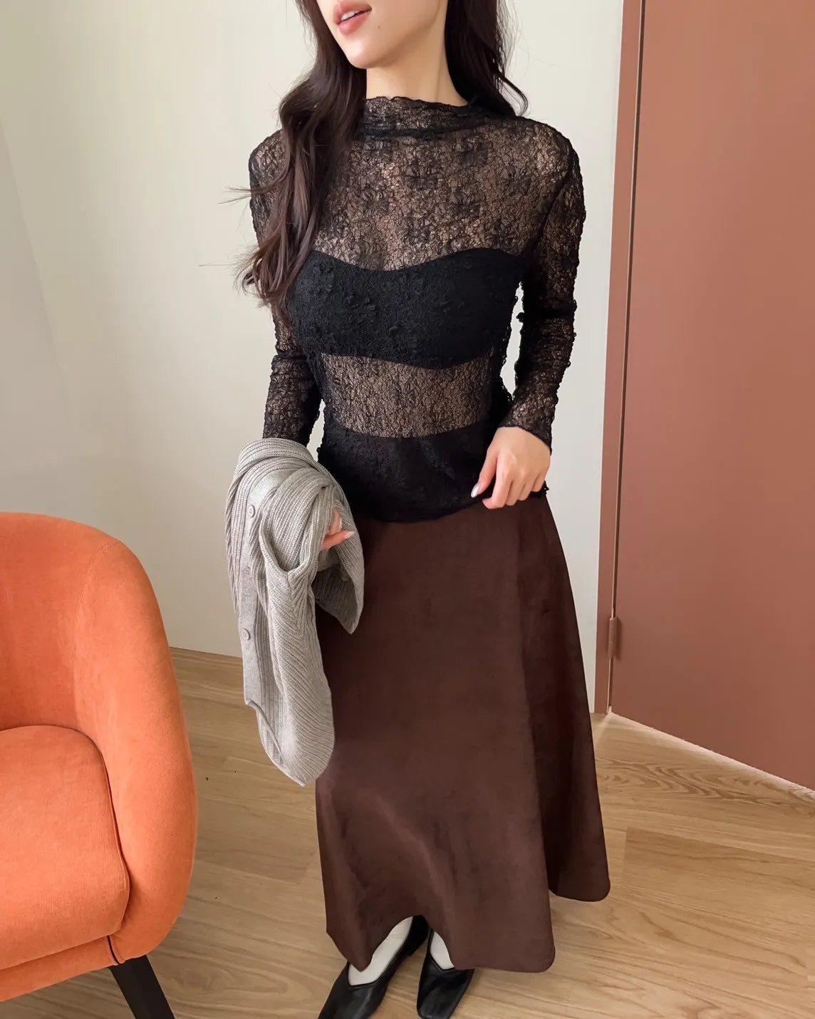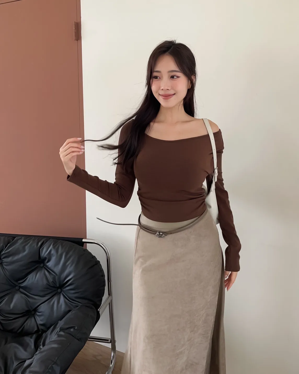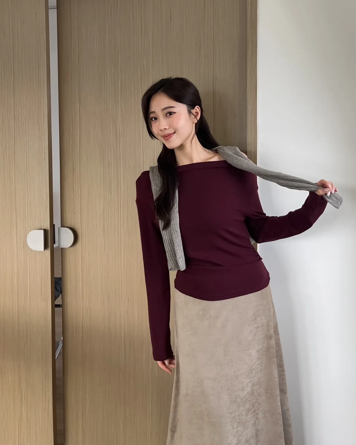 U0085秋日氣息麂皮A字長裙(奶茶/咖啡/黑)
