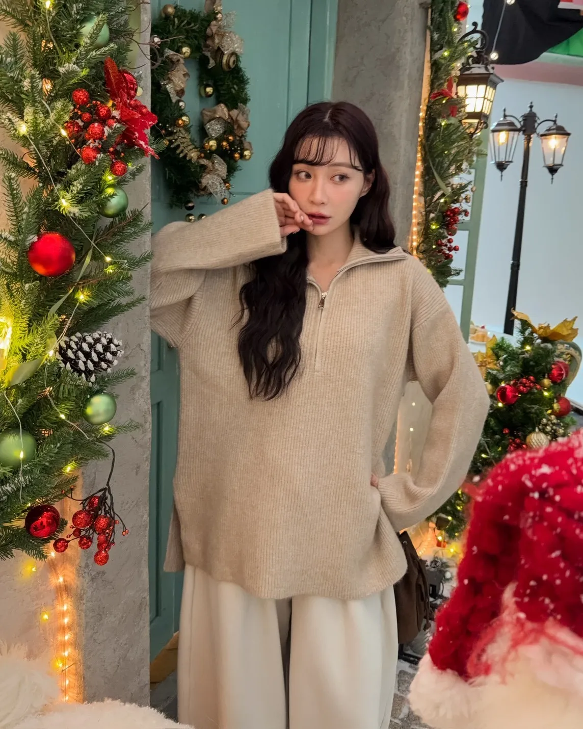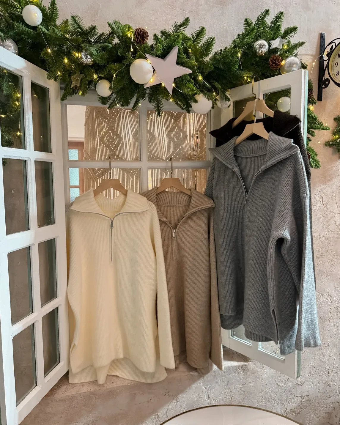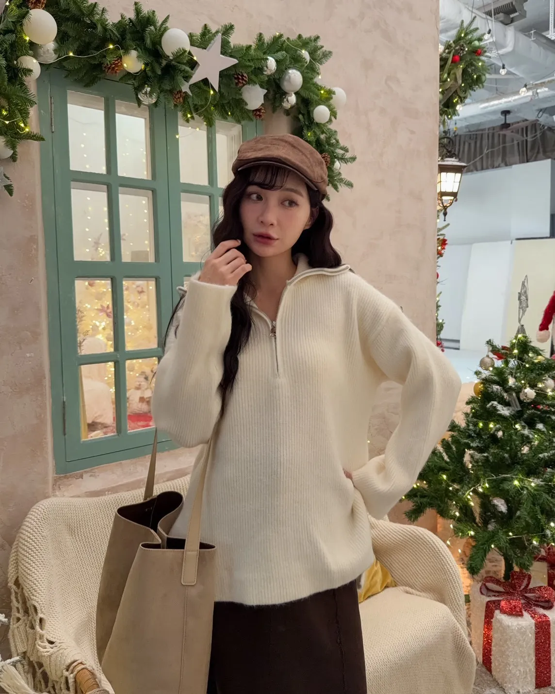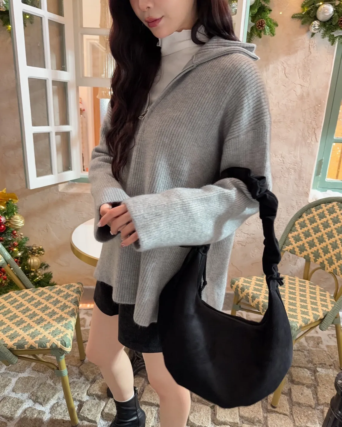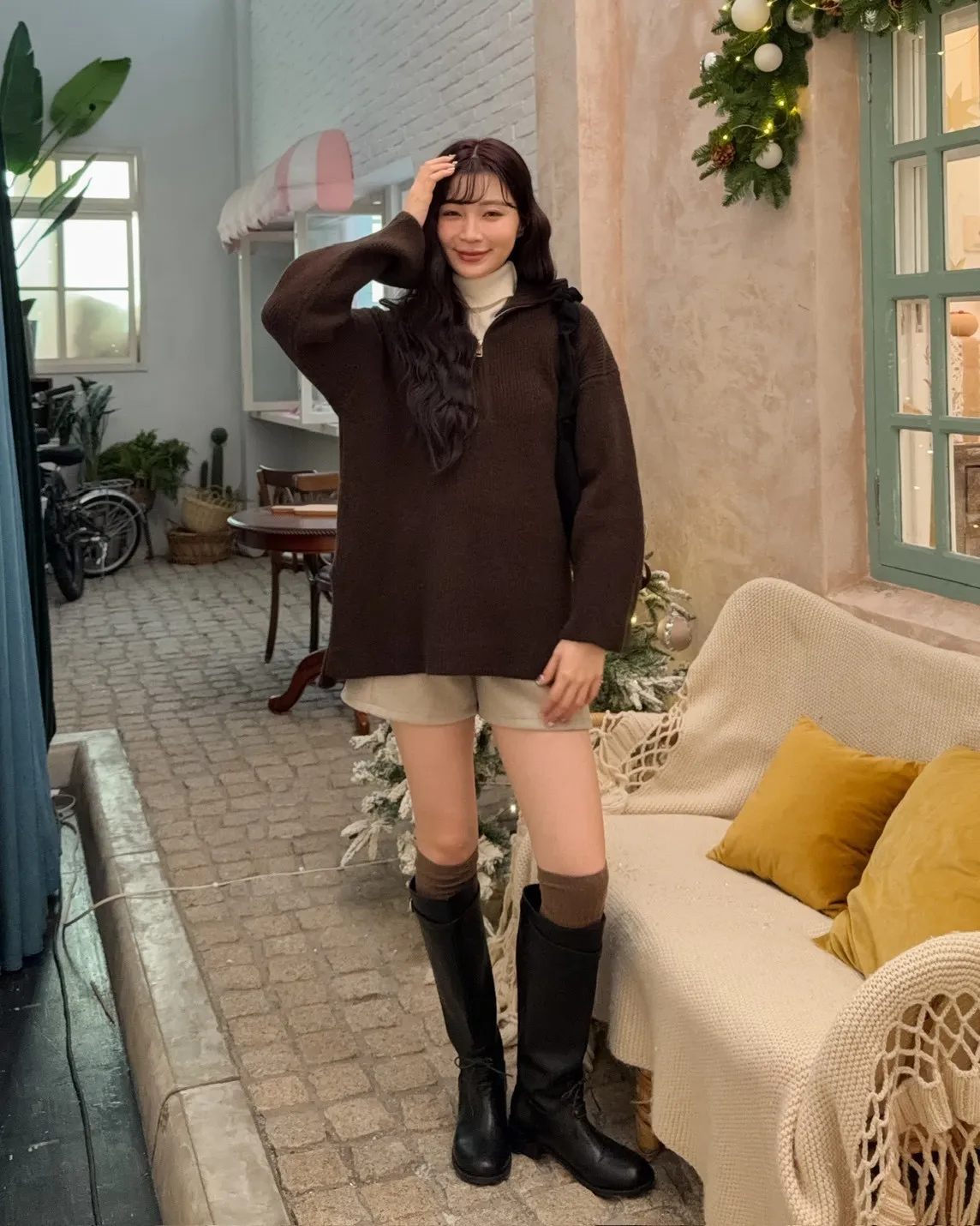 X0050遮屁屁前短後長拉鍊翻領毛衣(米白/深咖啡/奶杏/灰)