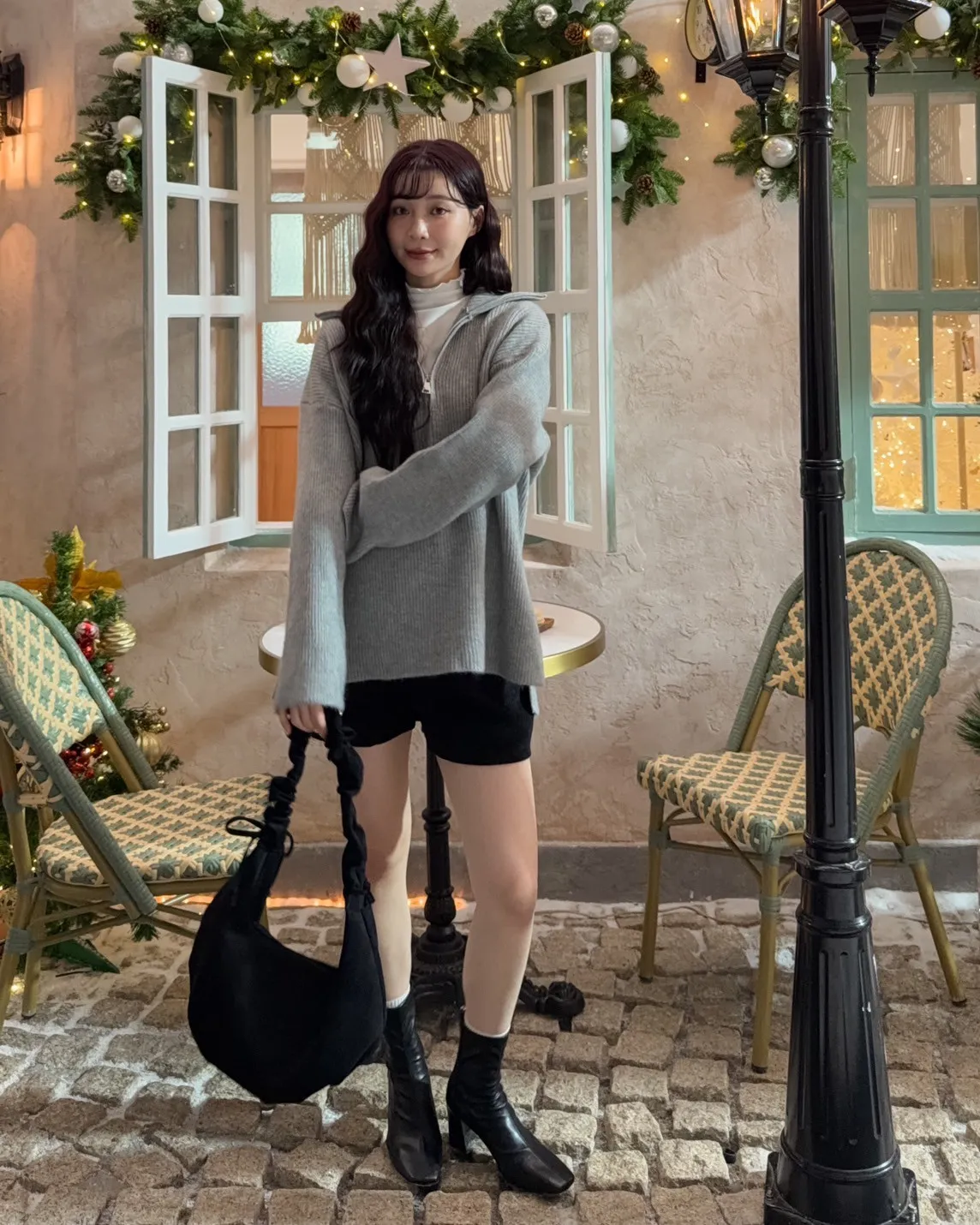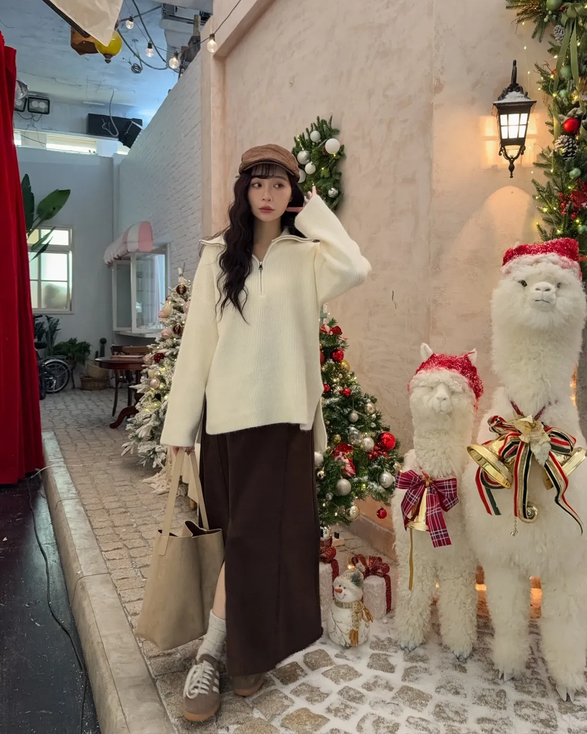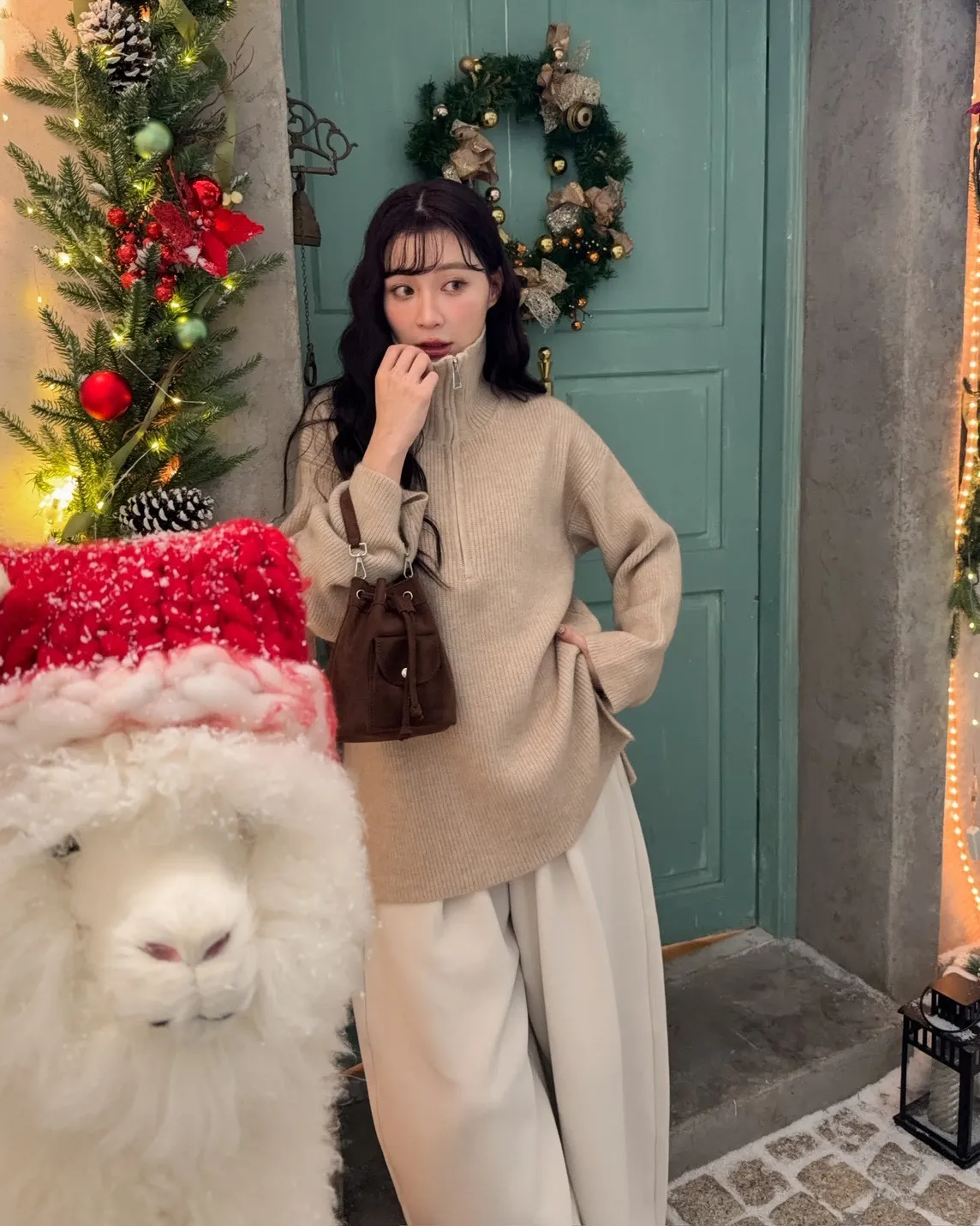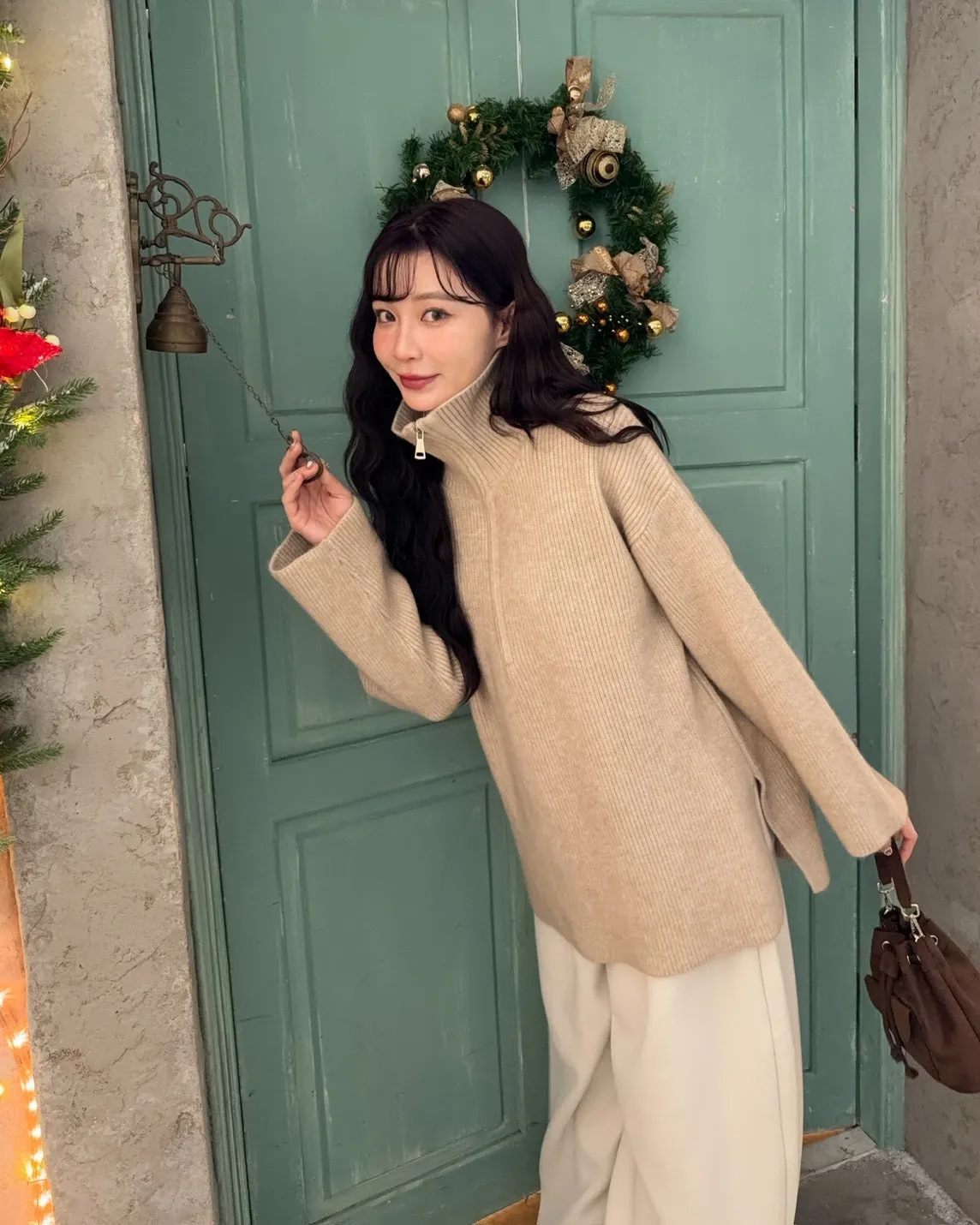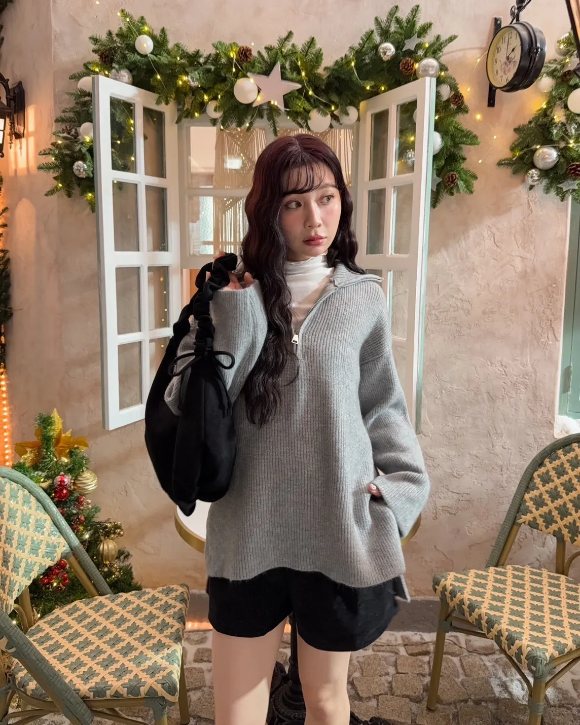 X0050遮屁屁前短後長拉鍊翻領毛衣(米白/深咖啡/奶杏/灰)