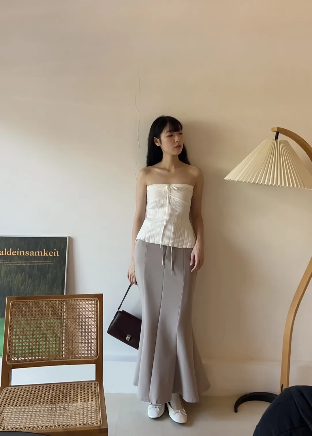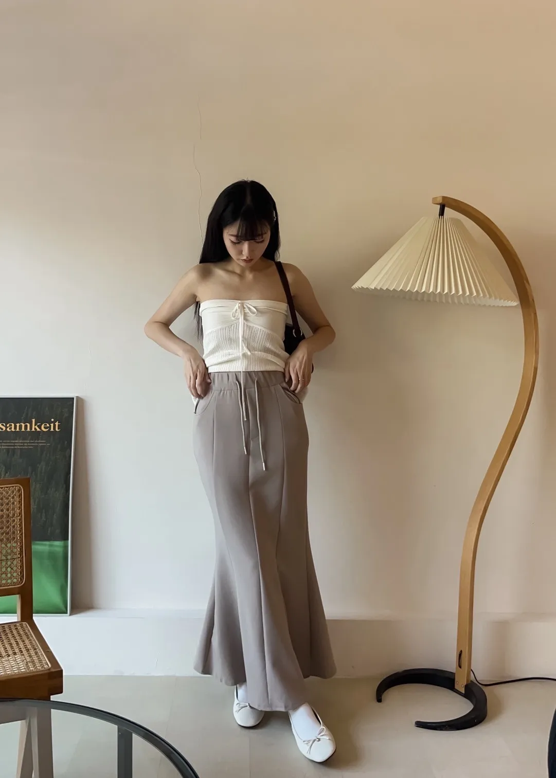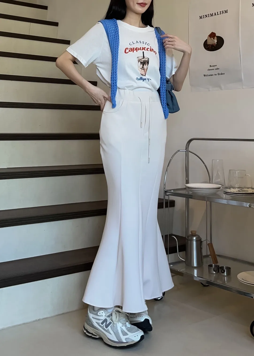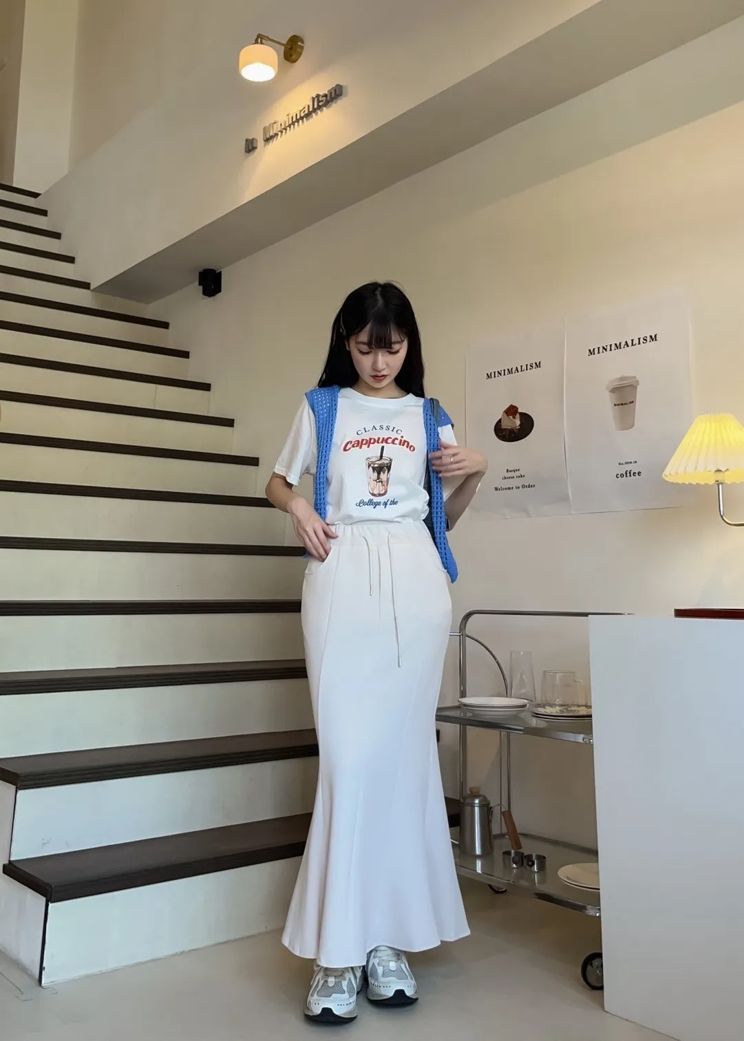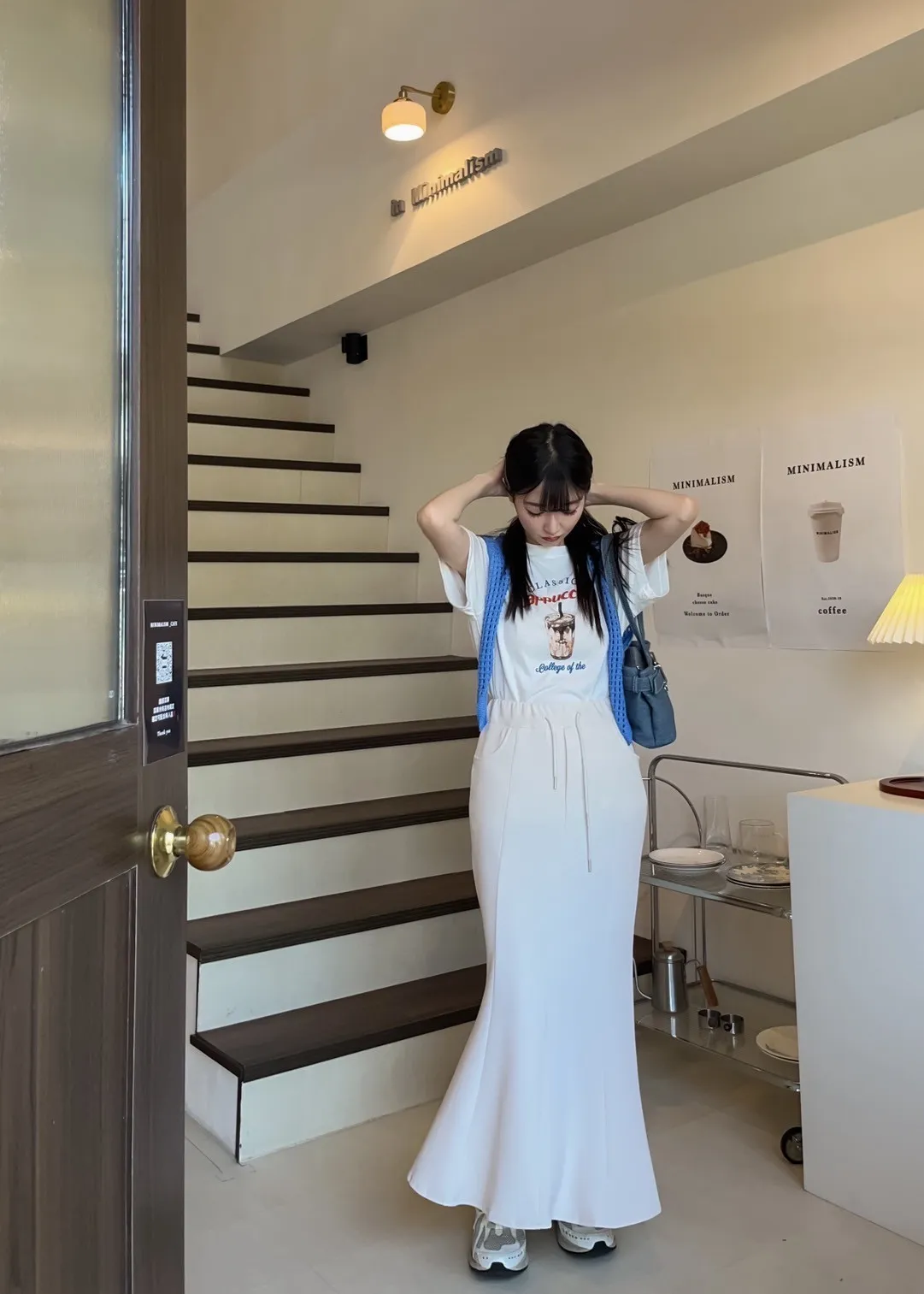 S0060氣質溫柔太空棉魚尾裙(米/奶茶)(售完不補)