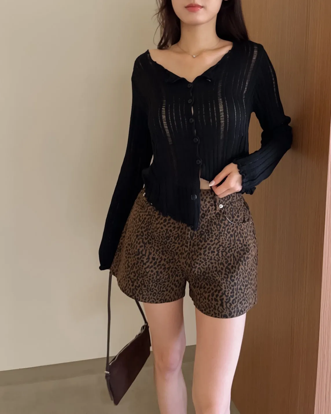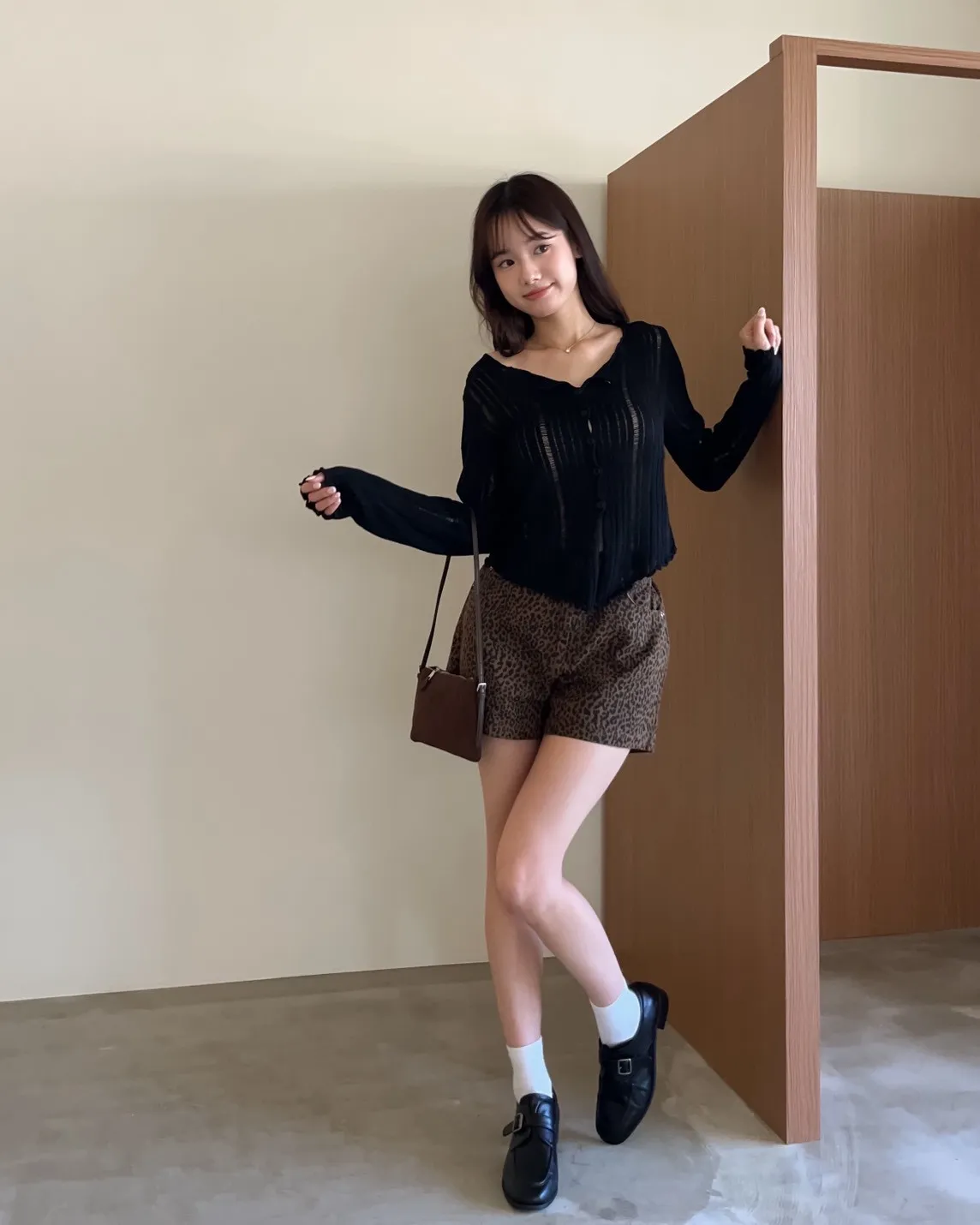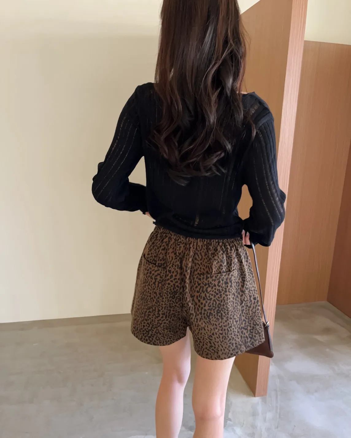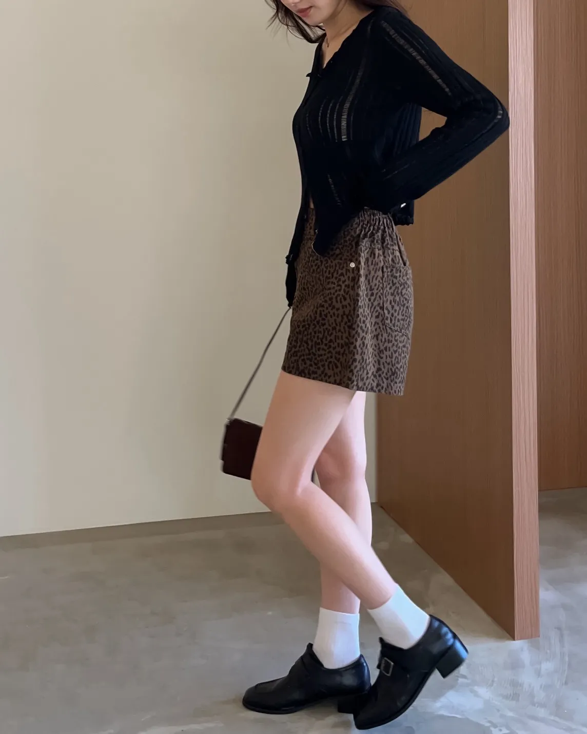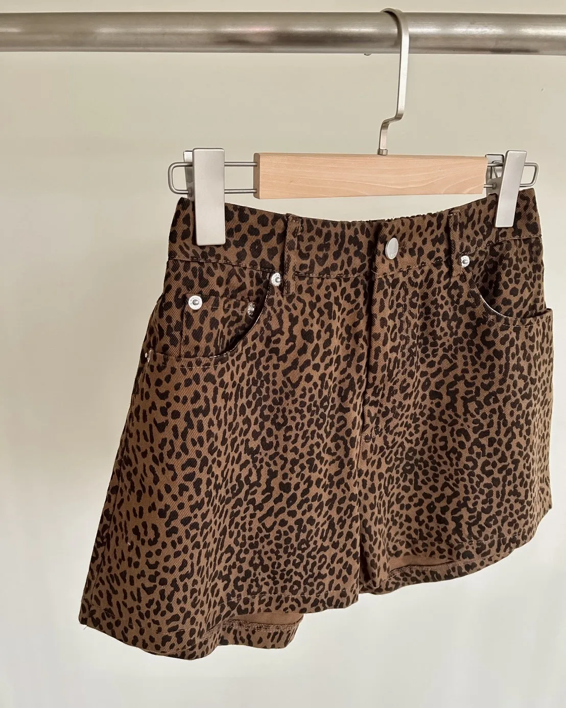 後鬆緊 建議尺寸S-小L 兩側口袋 豹紋 鉚釘裝飾 A字版型 布料本身無彈性
