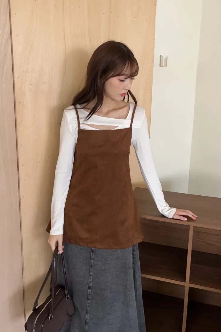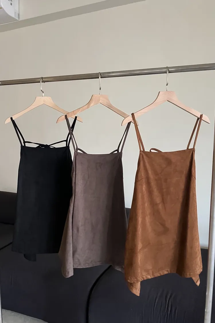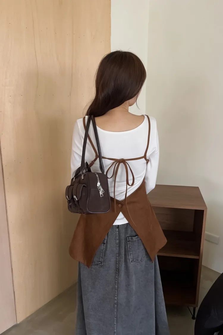 V0024後扣細肩麂皮馬甲(焦糖/可可/黑)