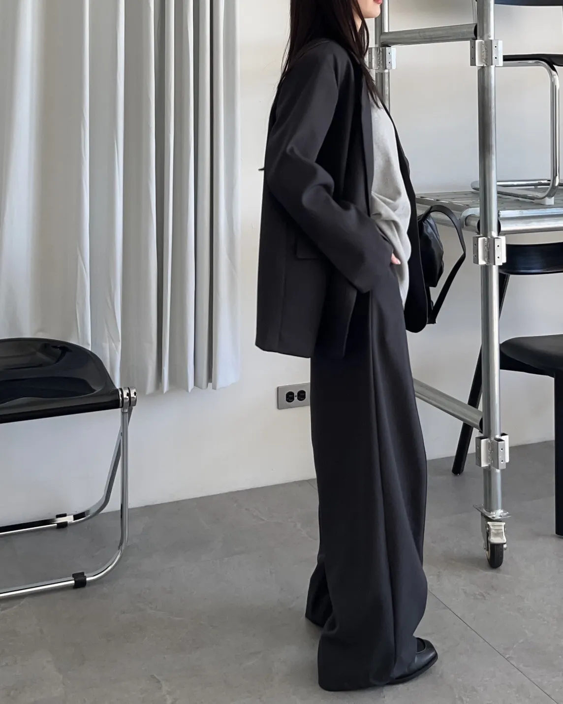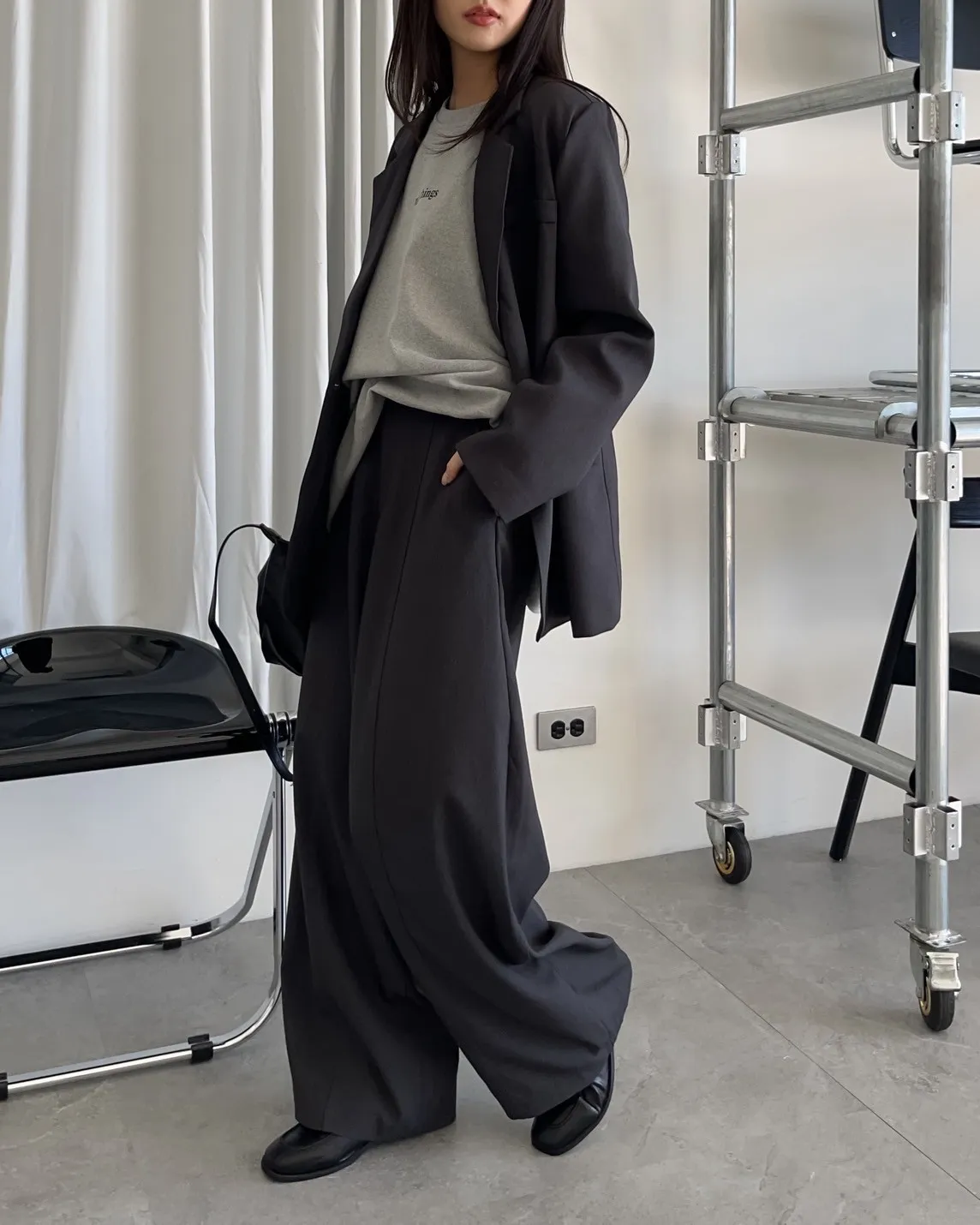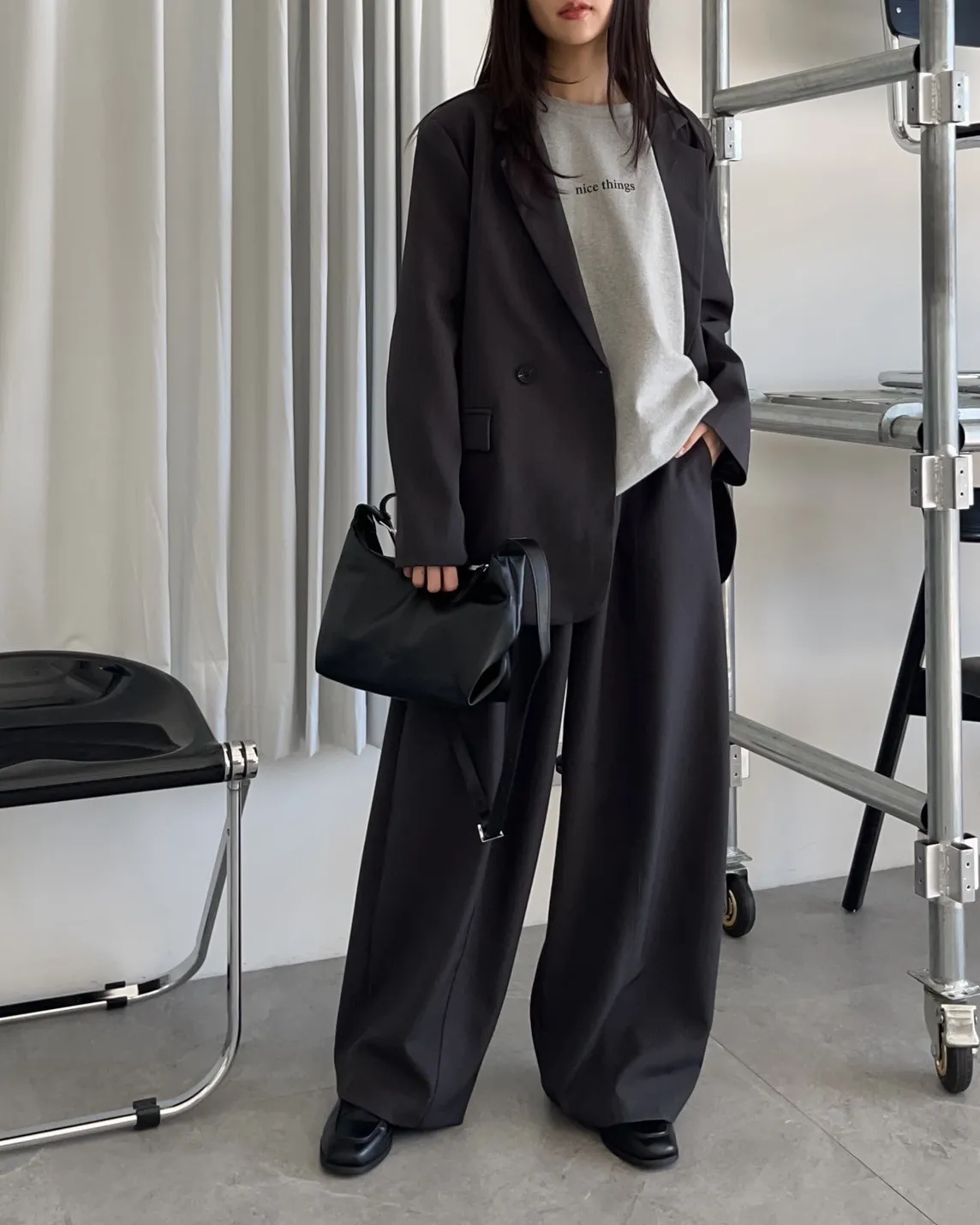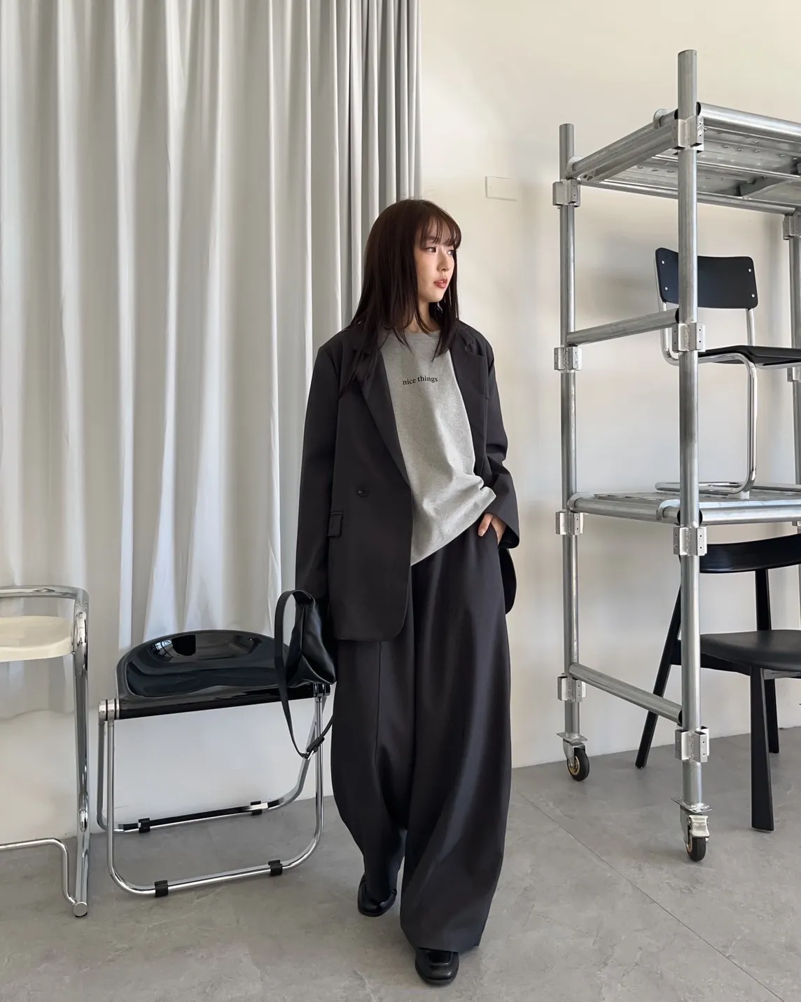 U0062版型good小彎刀西裝寬褲(咖啡/深灰)