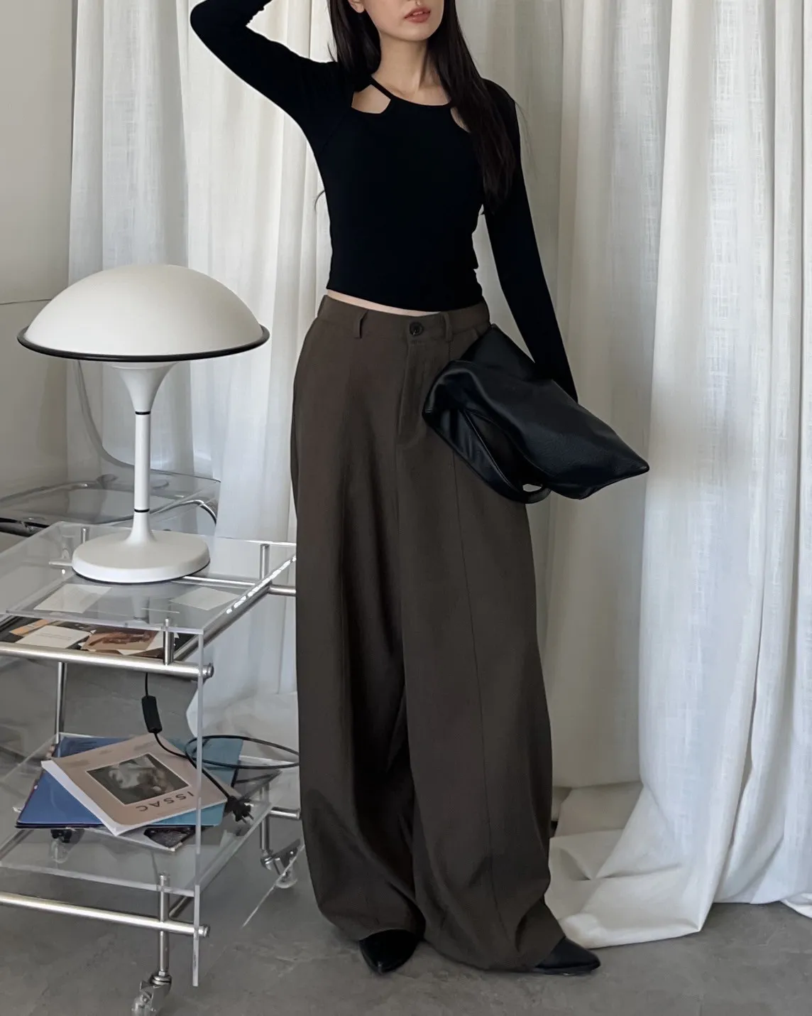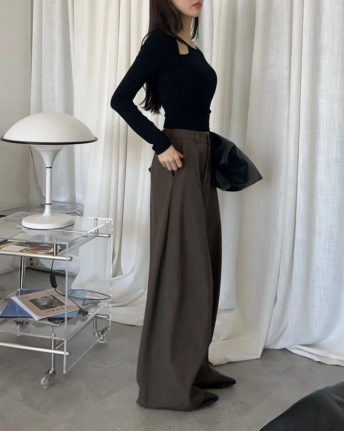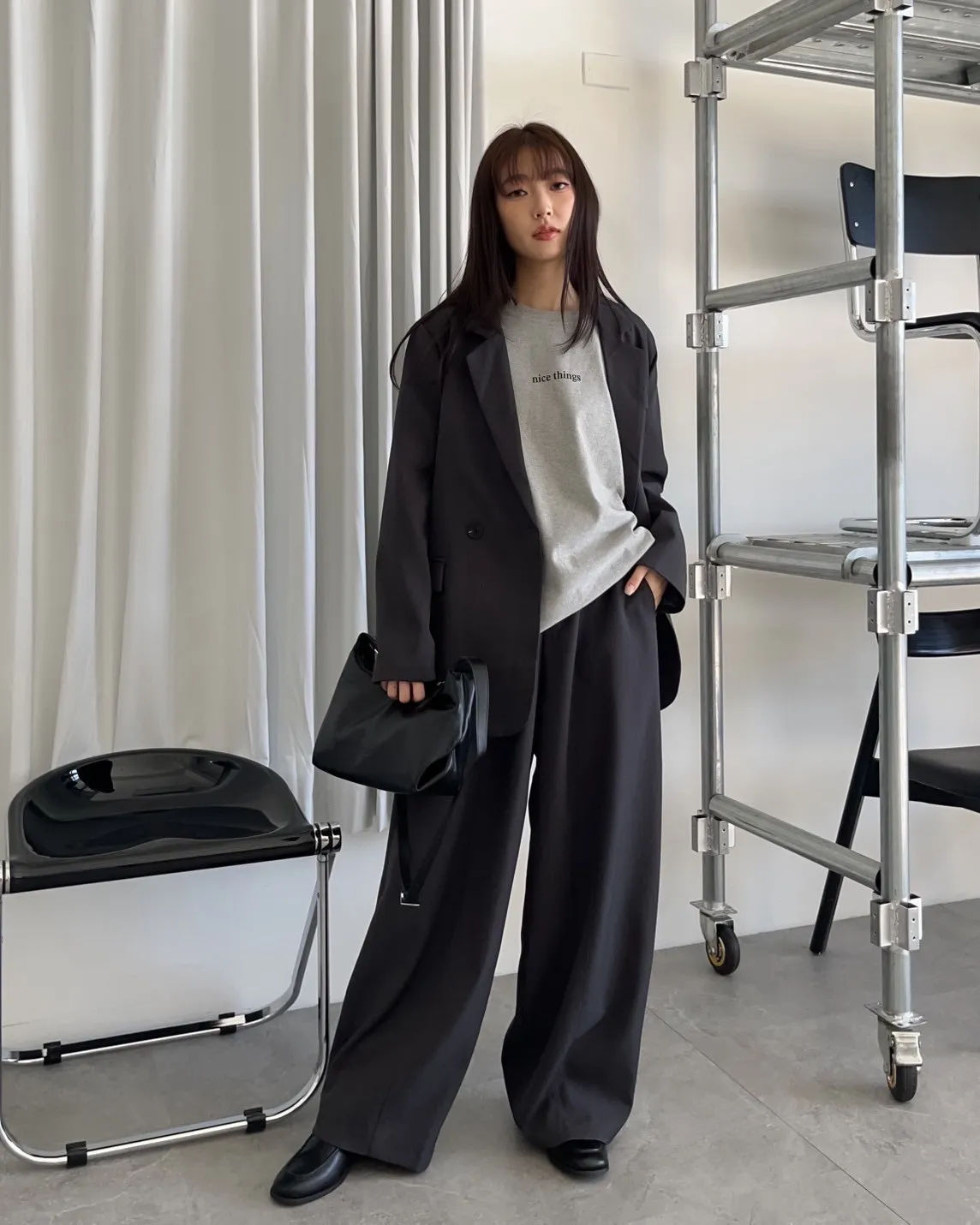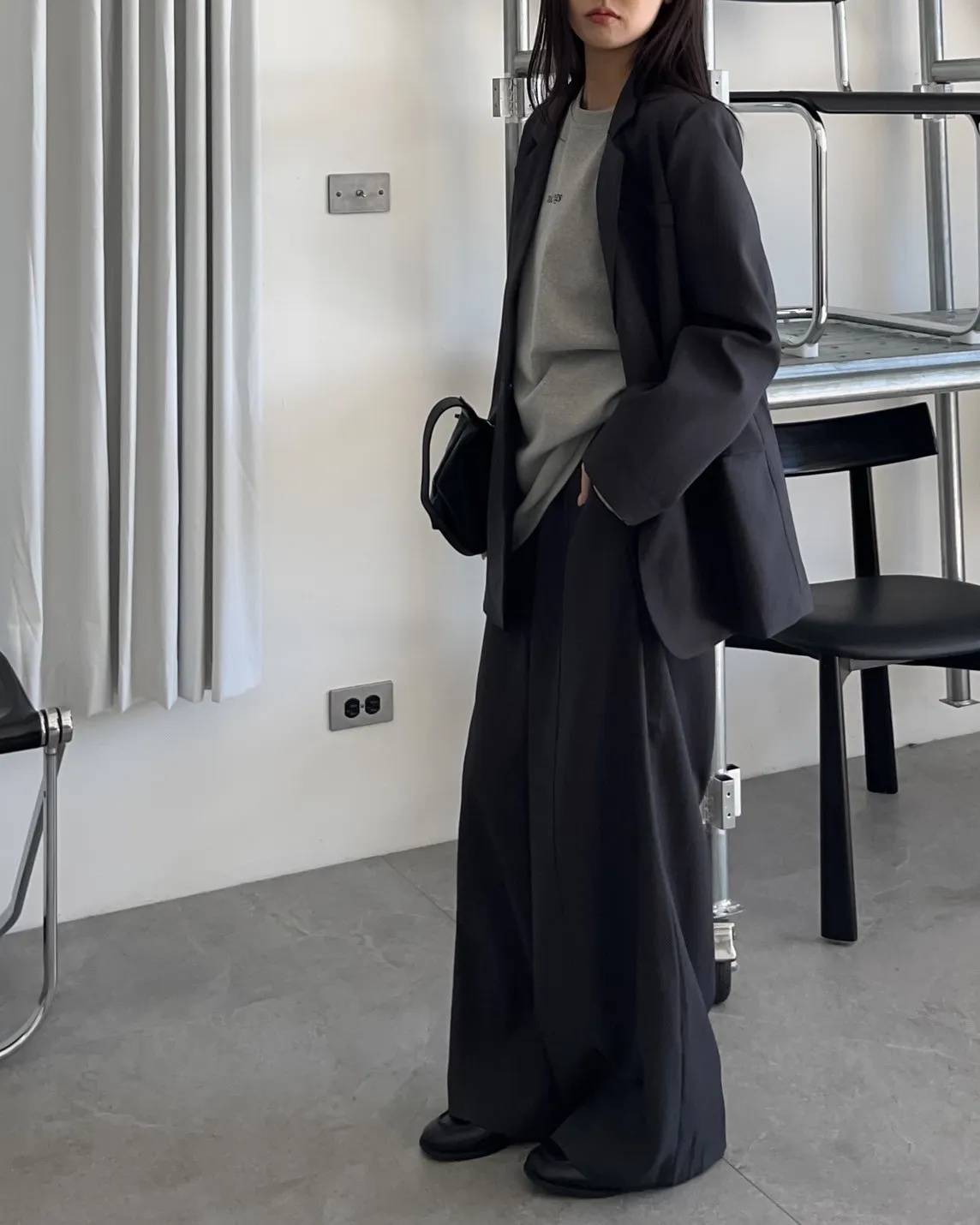 U0062版型good小彎刀西裝寬褲(咖啡/深灰)