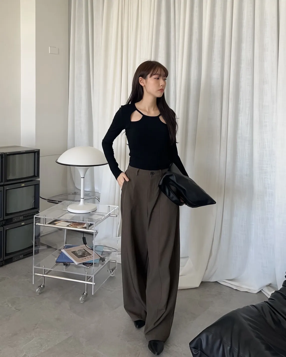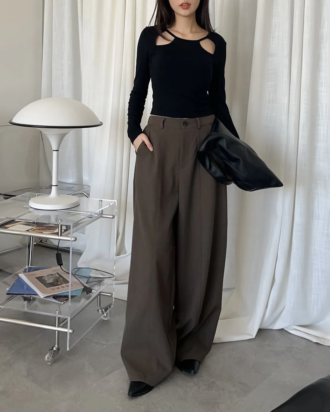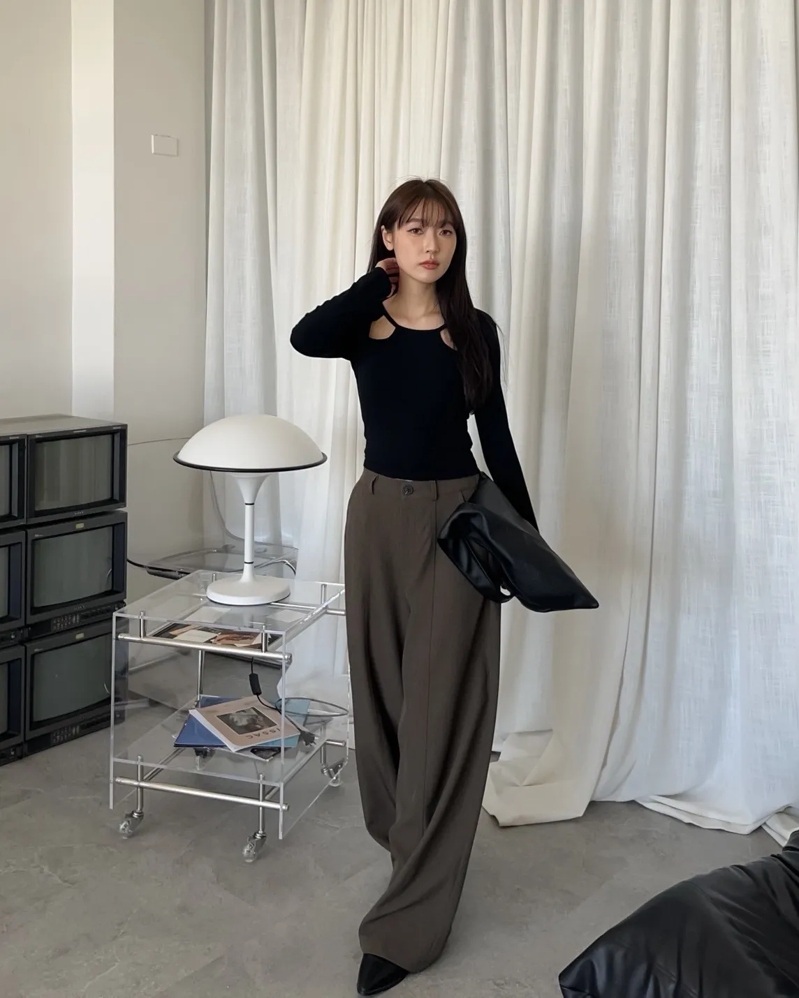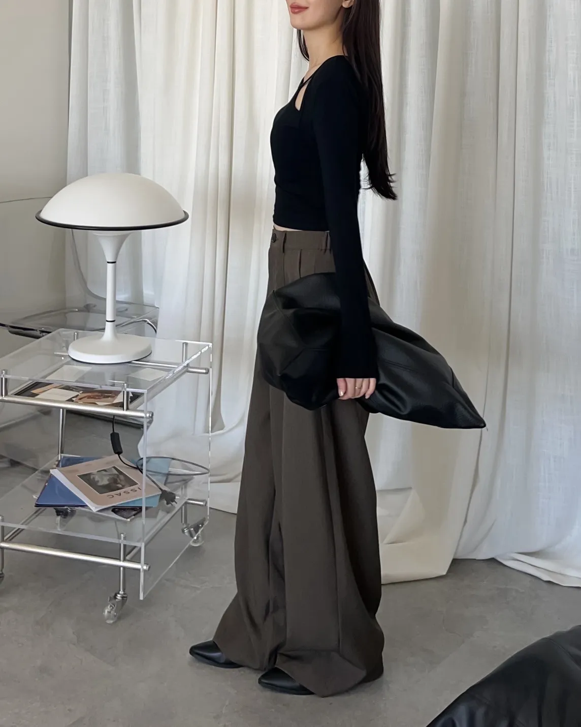 U0062版型good小彎刀西裝寬褲(咖啡/深灰)