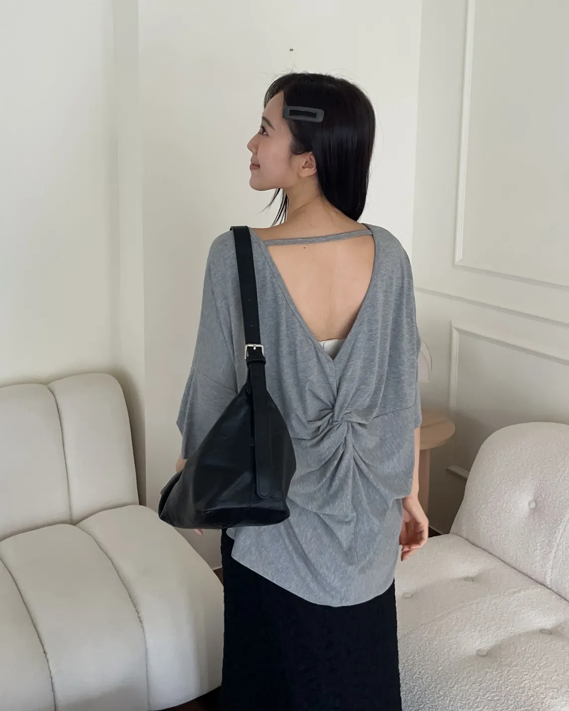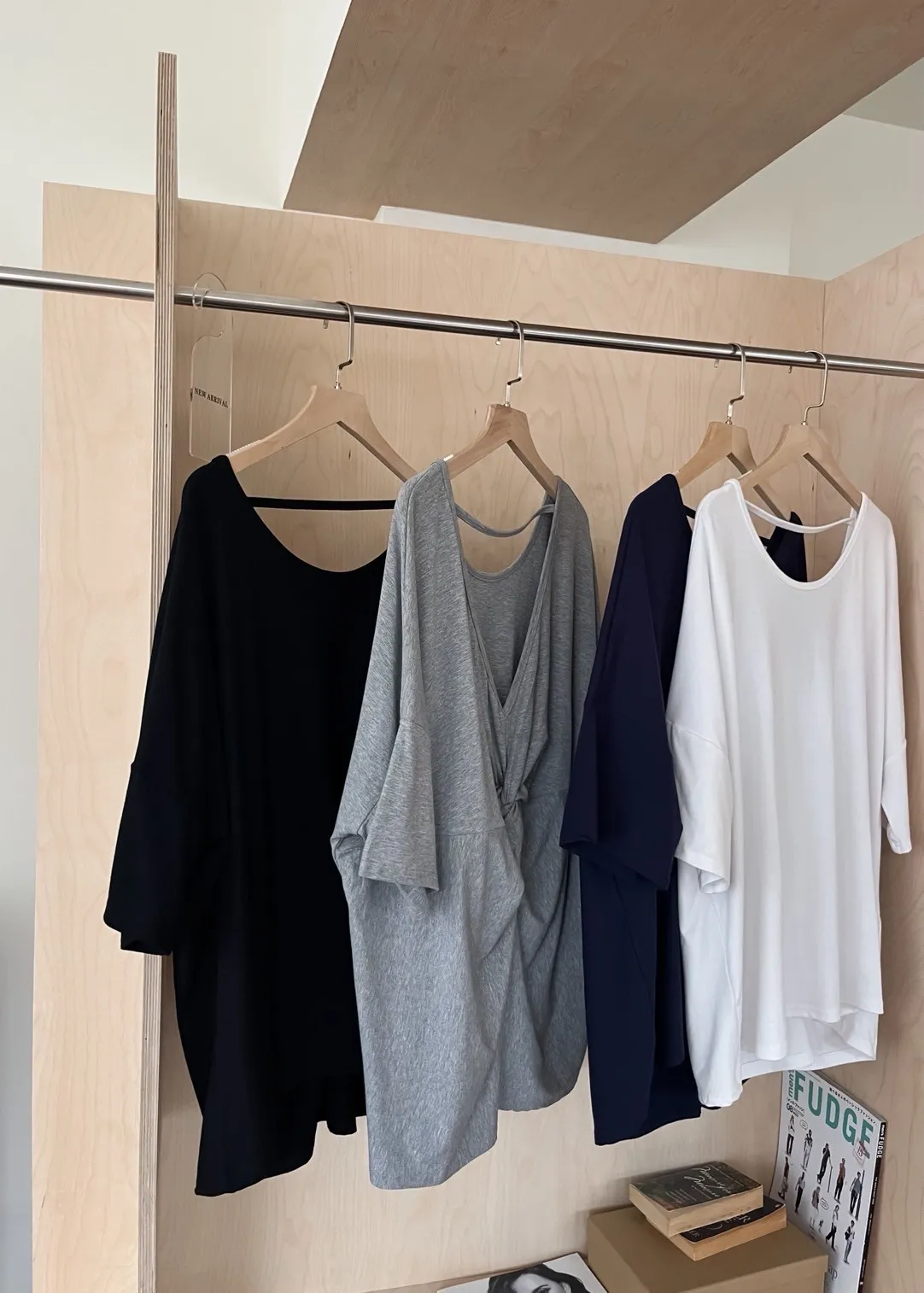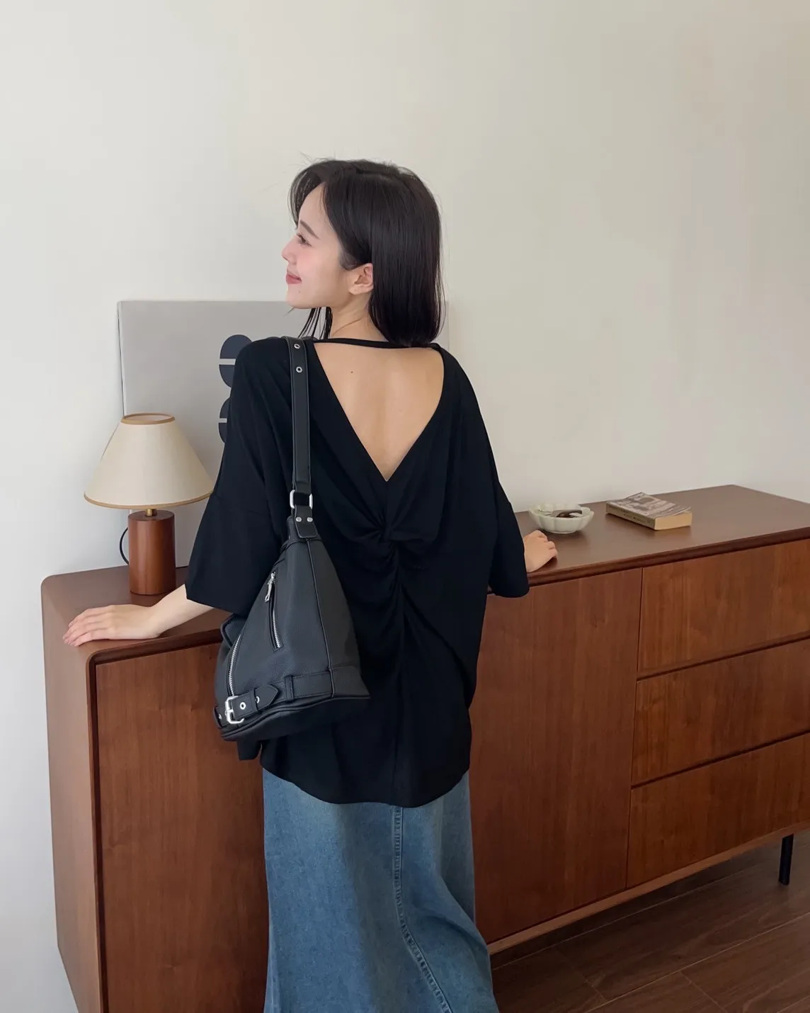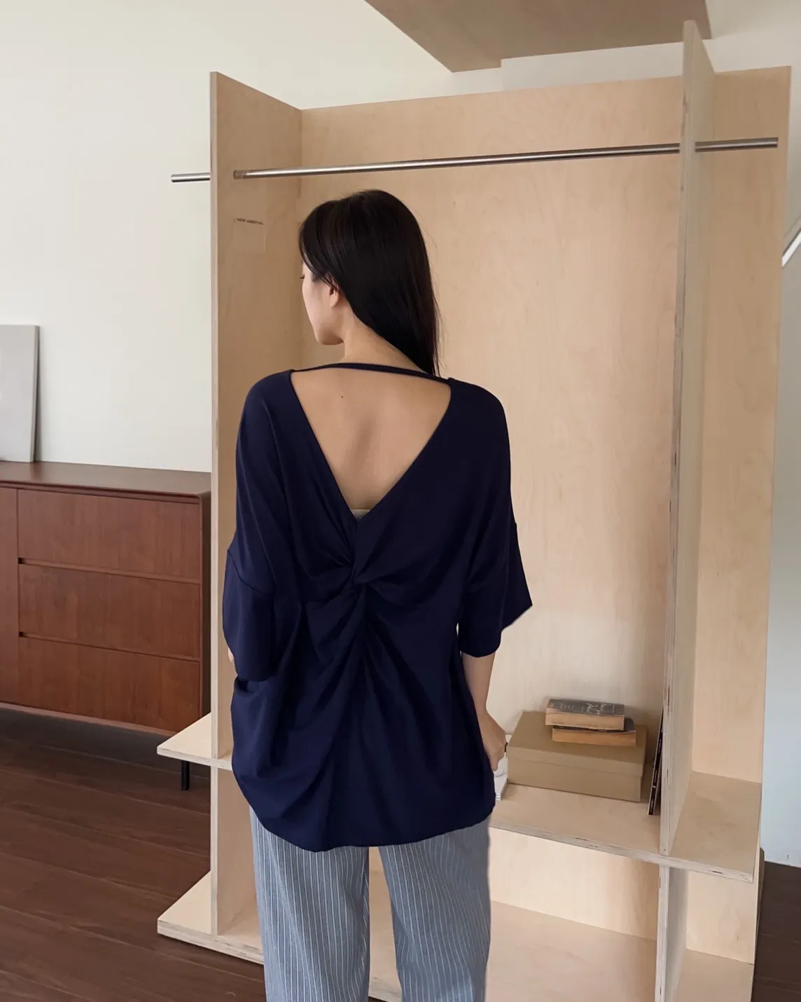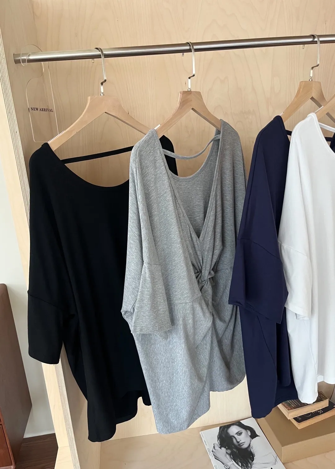 T0056正反穿2ways扭結一條線上衣(白/深藍/灰/黑)(售完不補)
