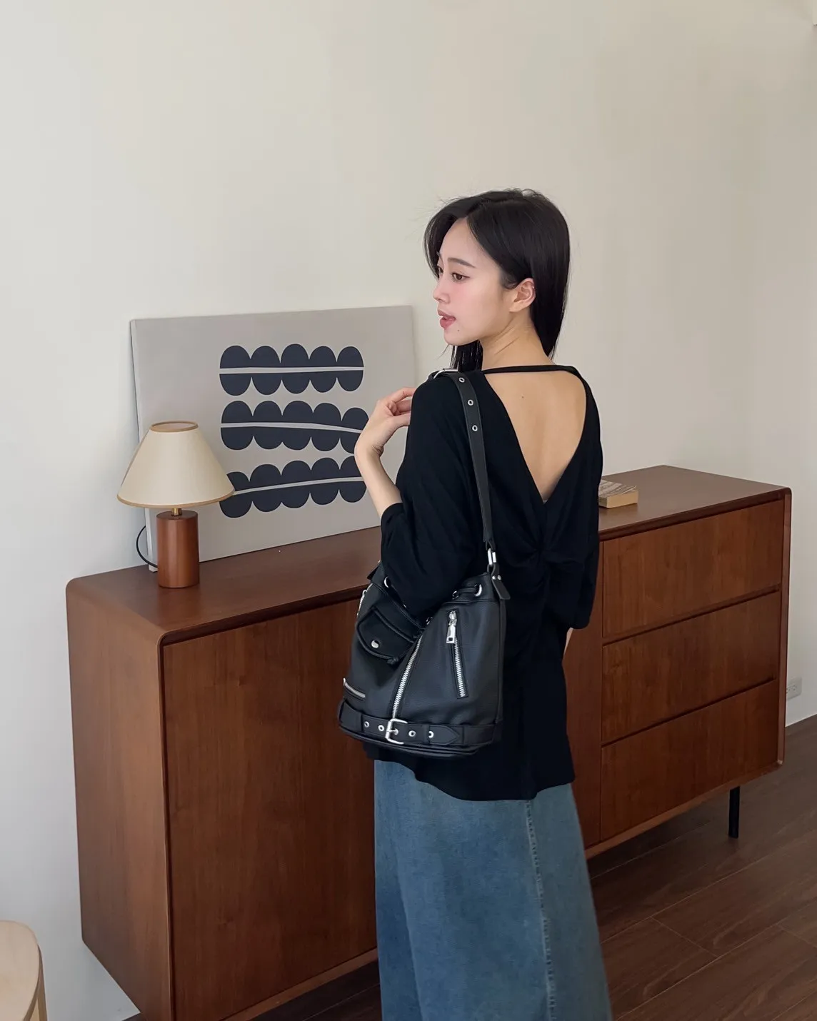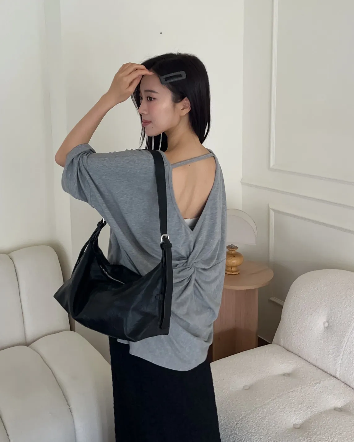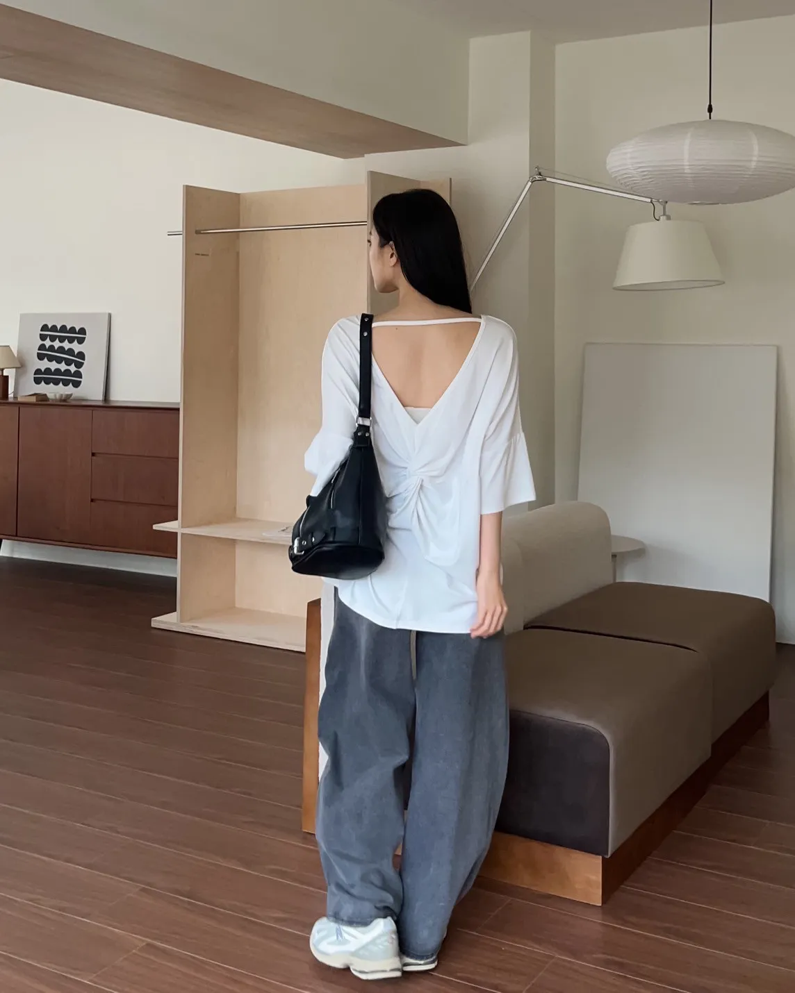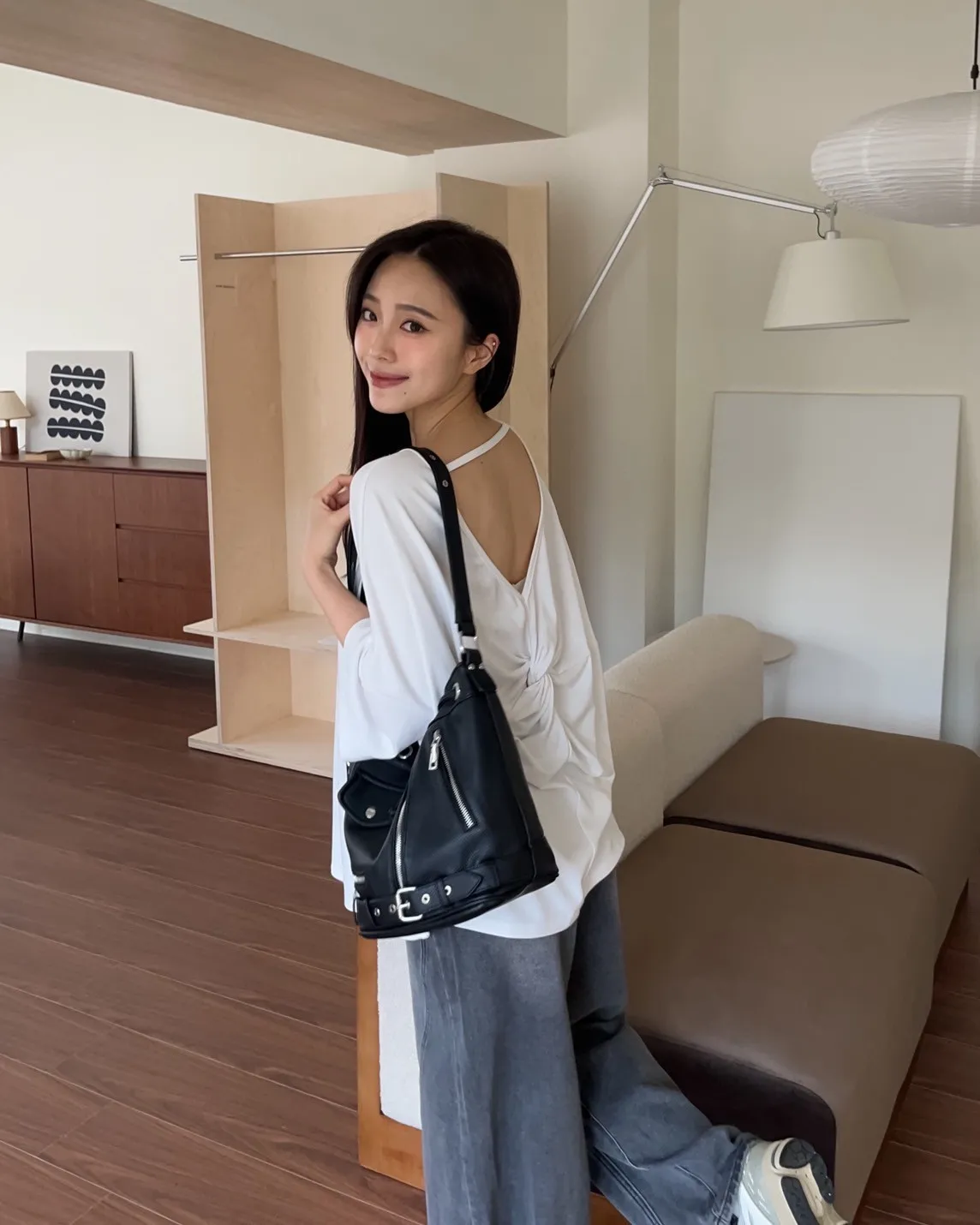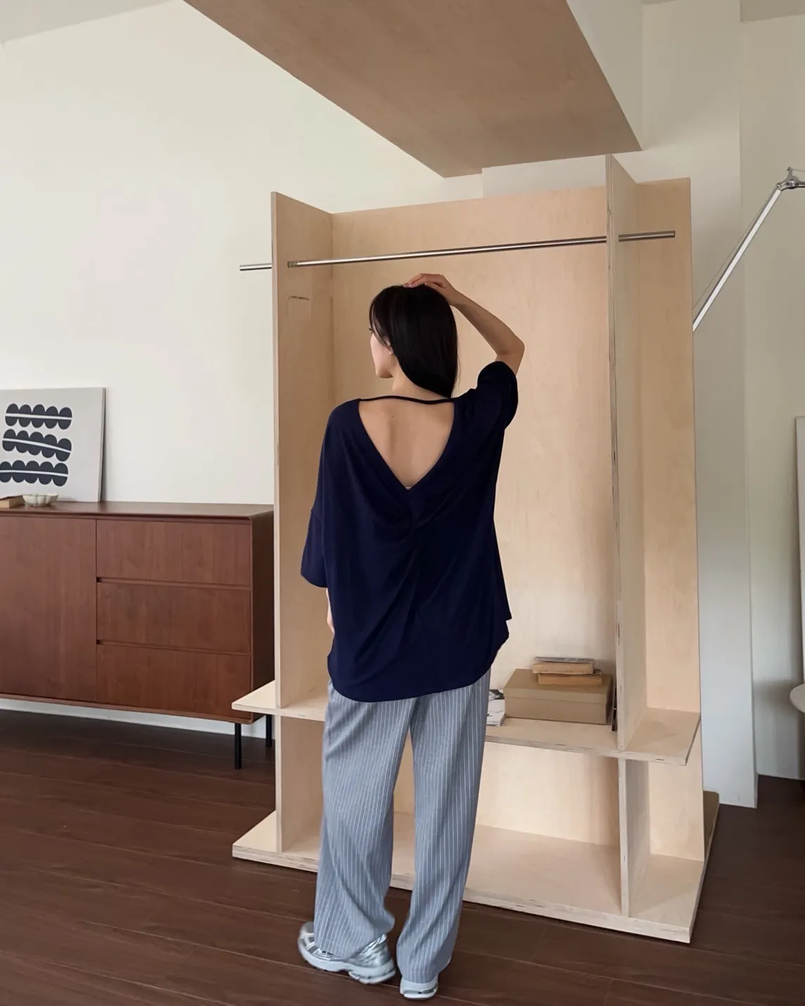 T0056正反穿2ways扭結一條線上衣(白/深藍/灰/黑)(售完不補)
