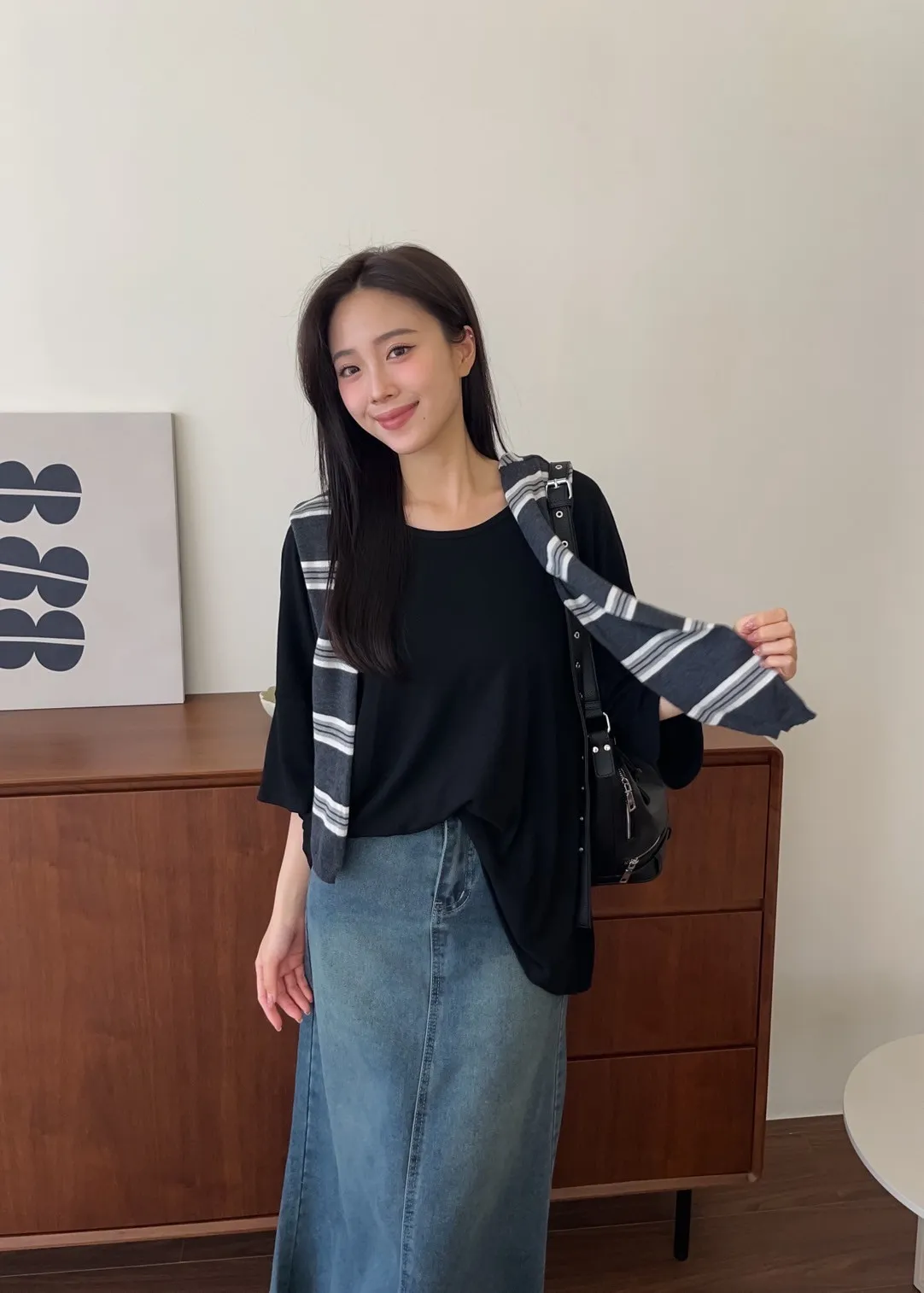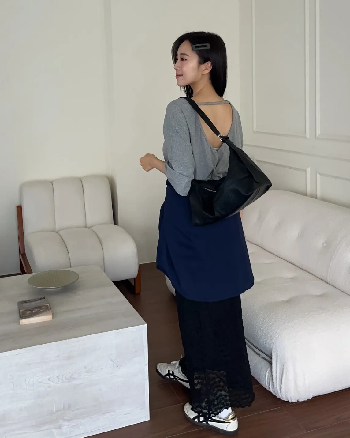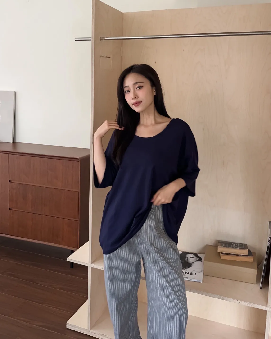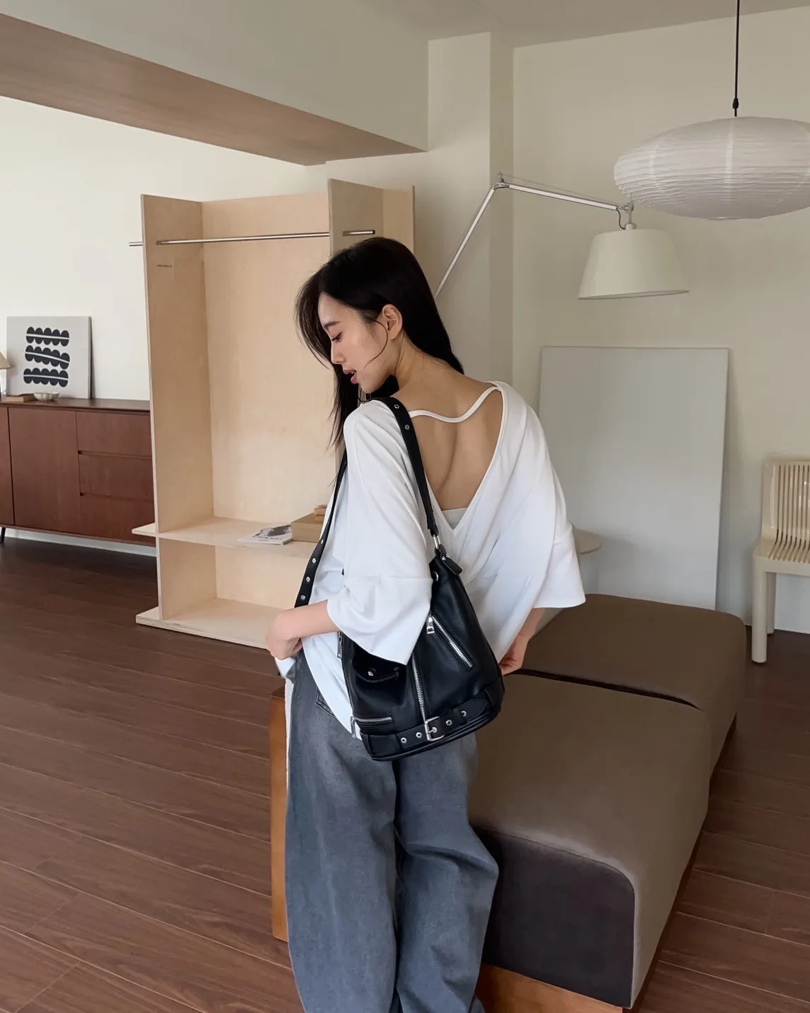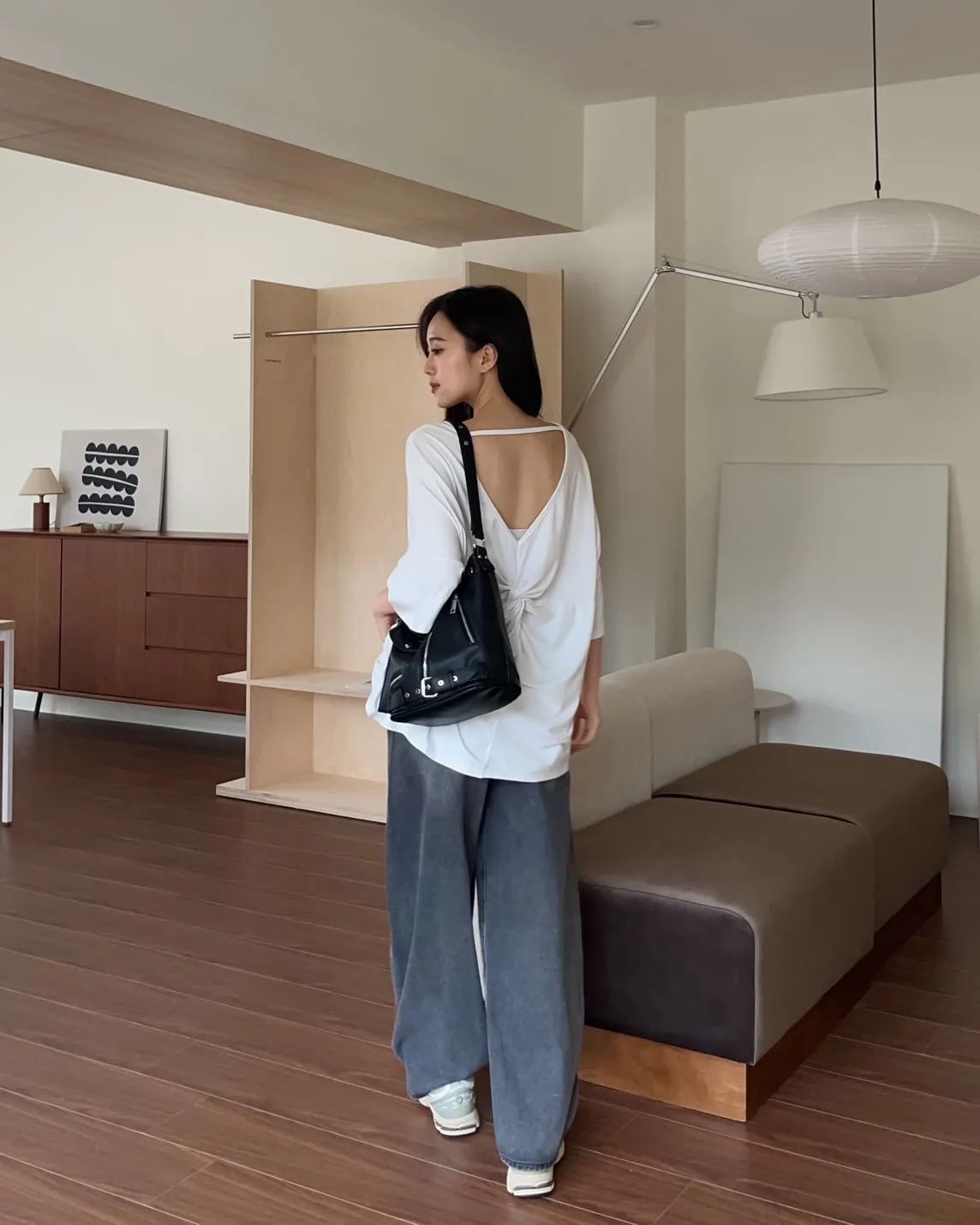 T0056正反穿2ways扭結一條線上衣(白/深藍/灰/黑)(售完不補)