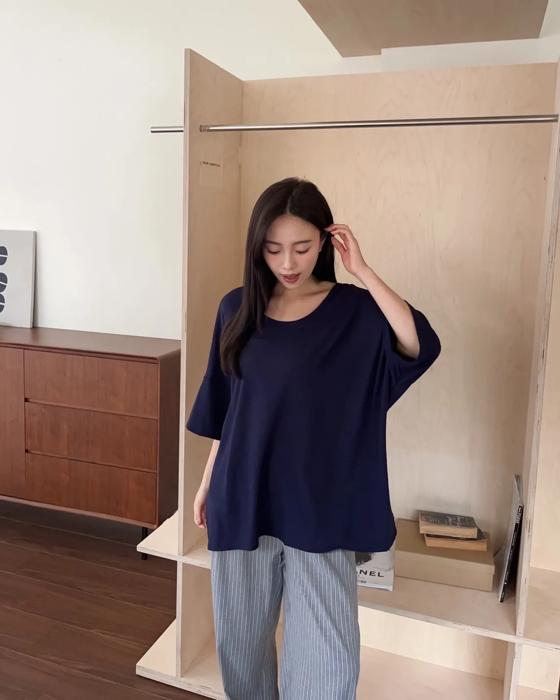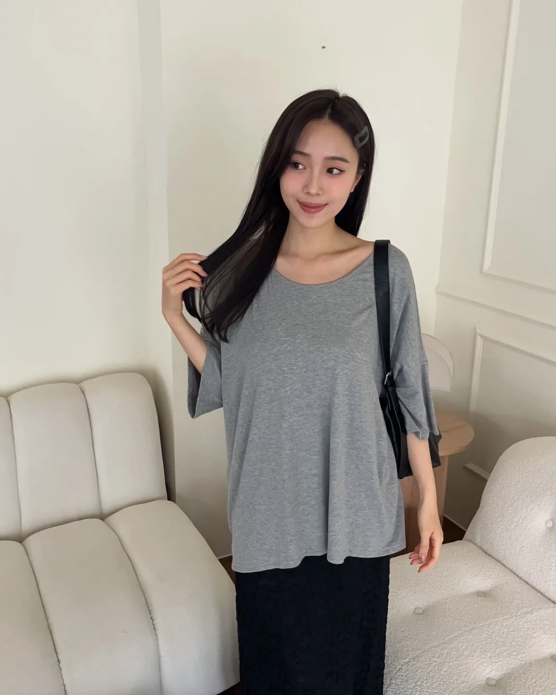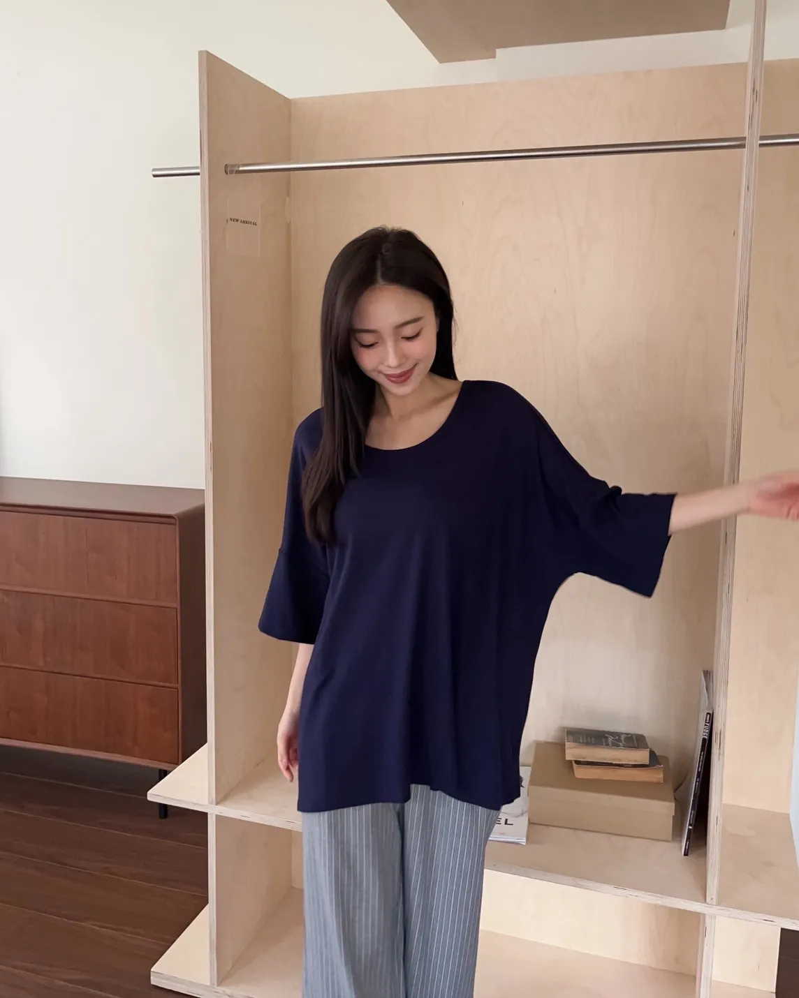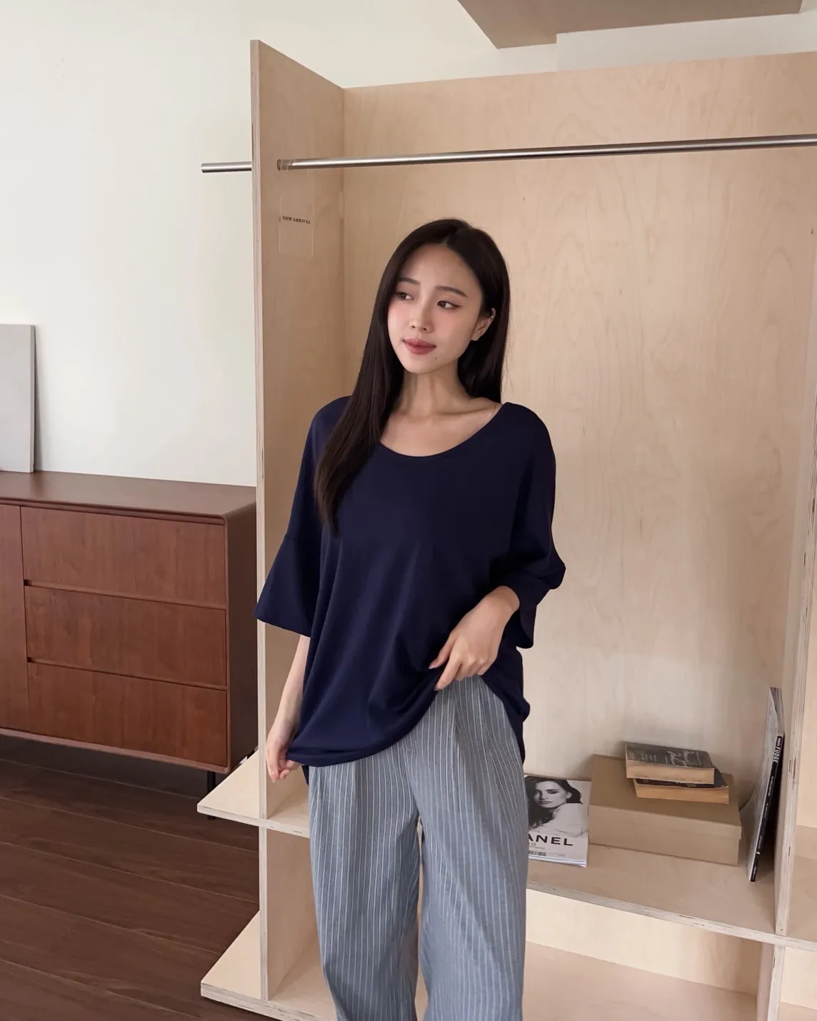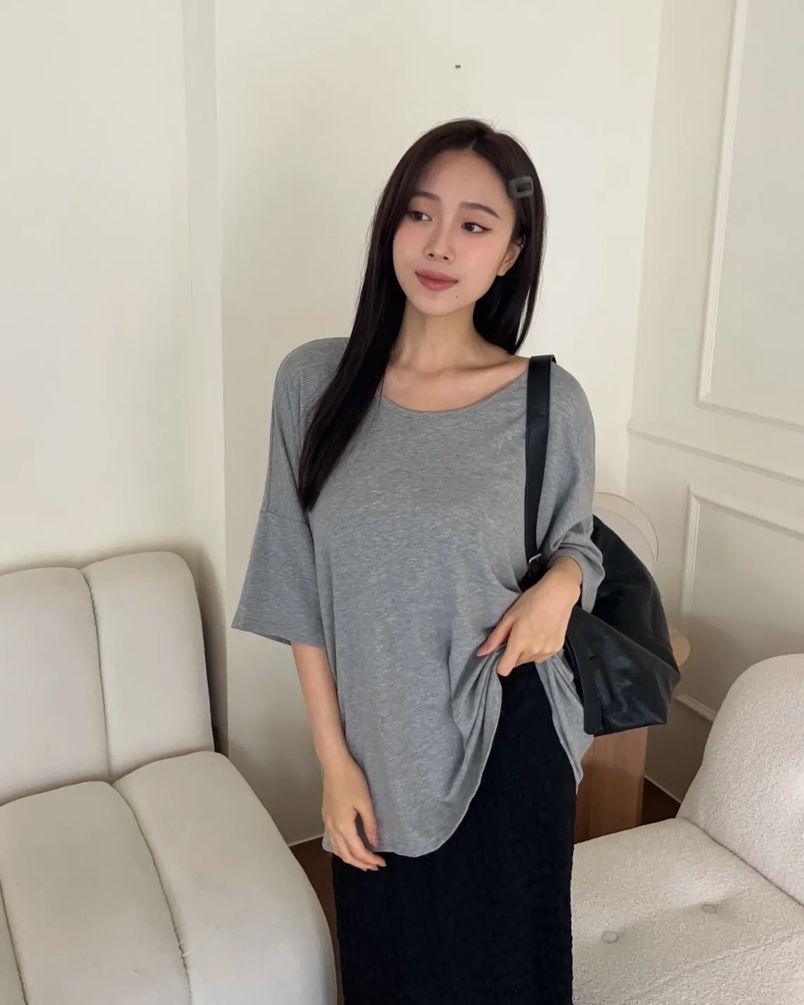 可以正反穿 一面U領一條線領口/一面V領+扭結造型(領口較低需內搭) 寬鬆落肩 布料彈性好很親膚