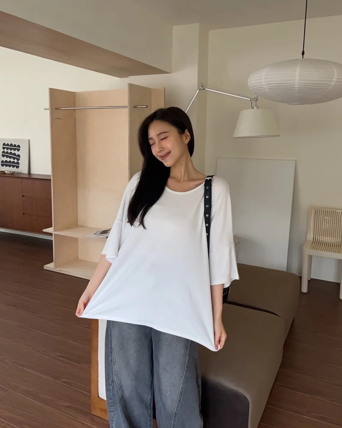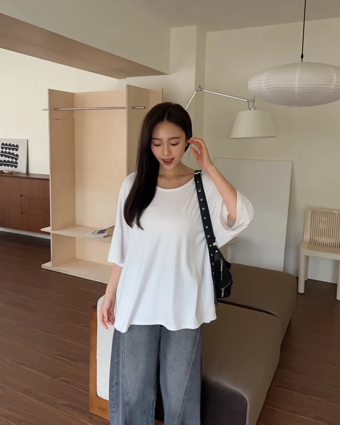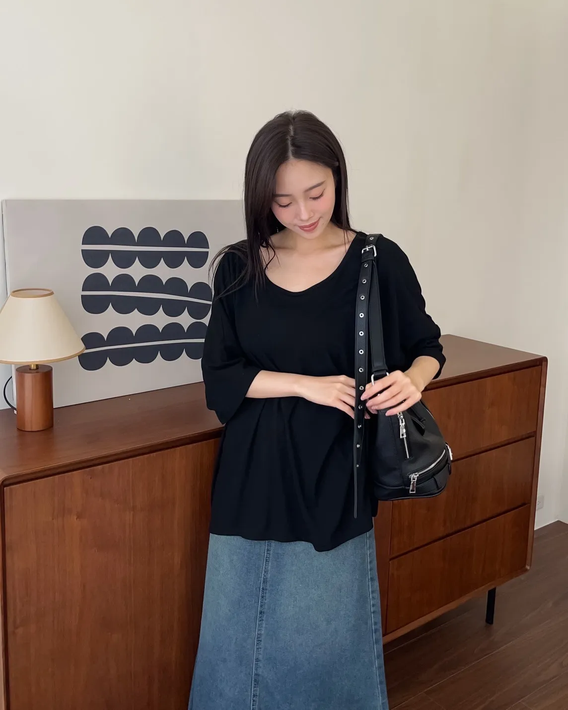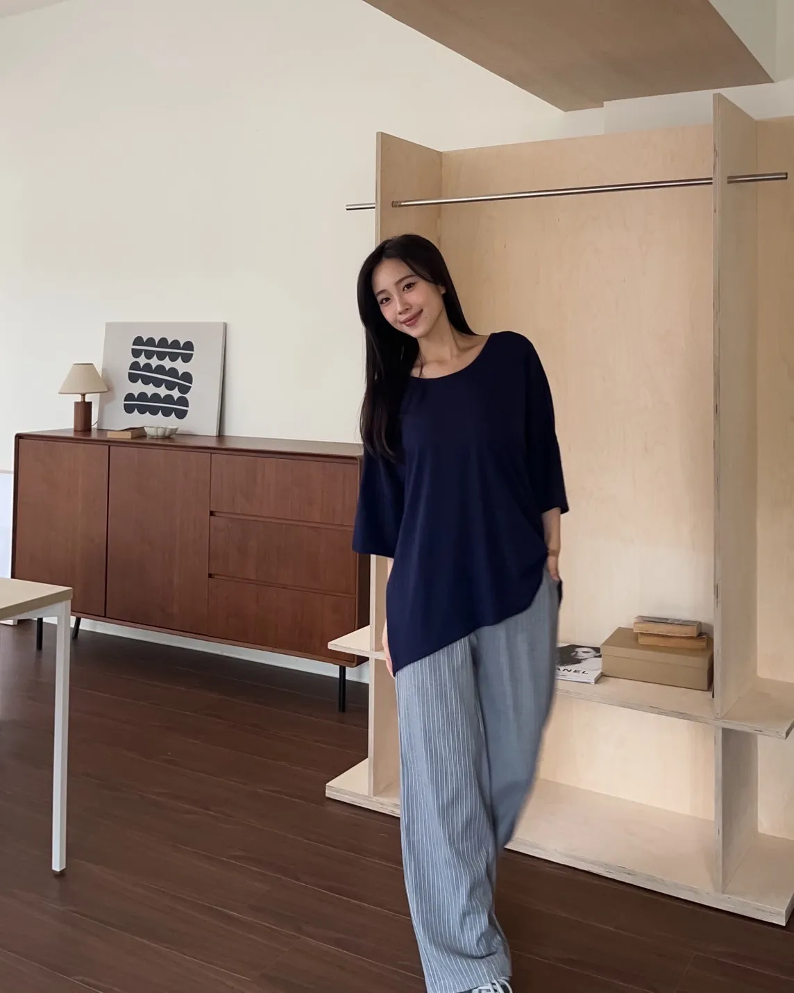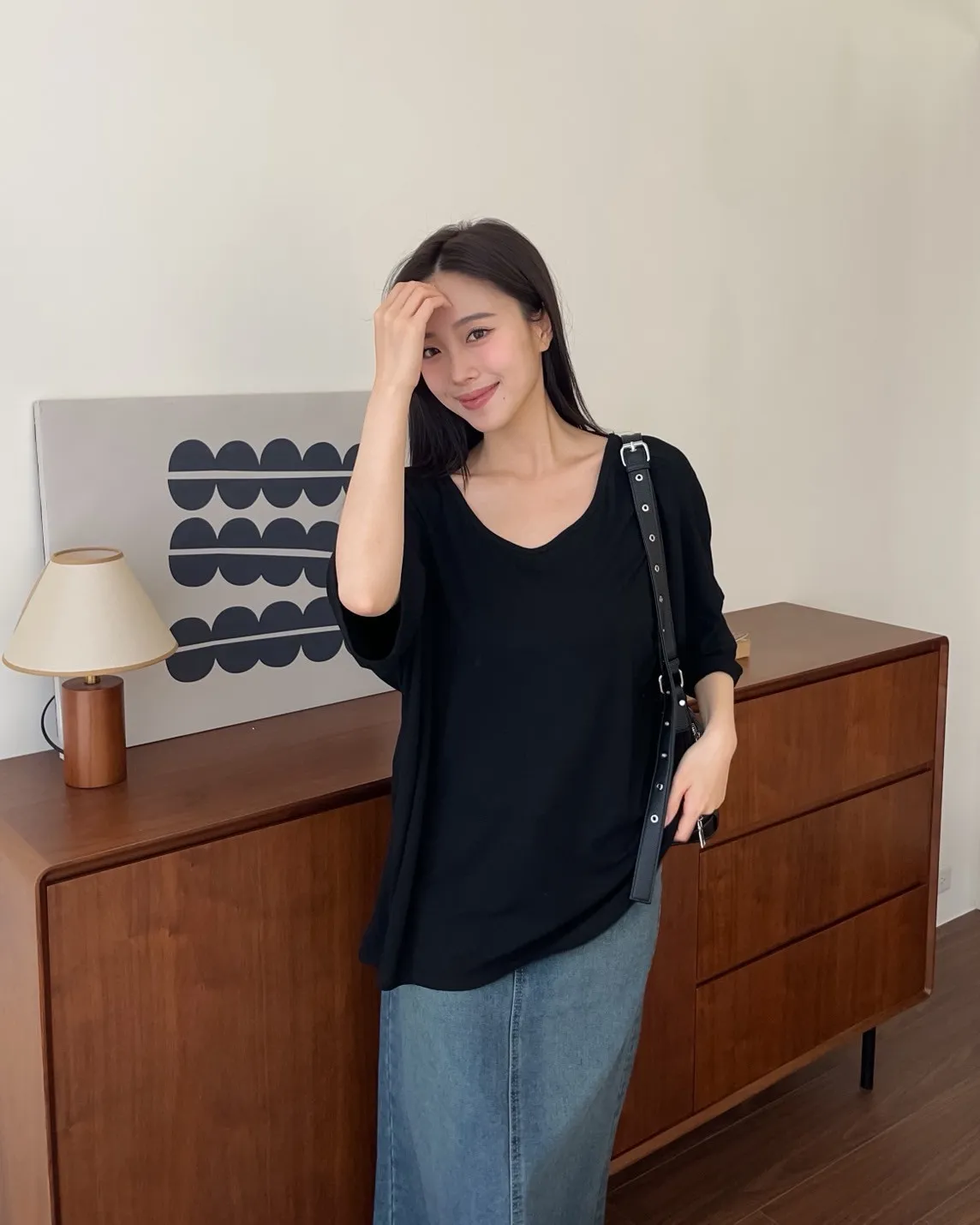 可以正反穿 一面U領一條線領口/一面V領+扭結造型(領口較低需內搭) 寬鬆落肩 布料彈性好很親膚