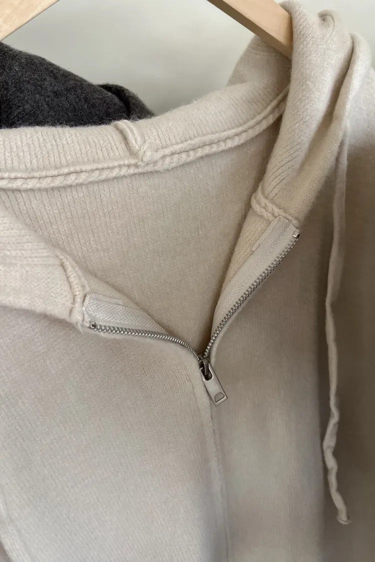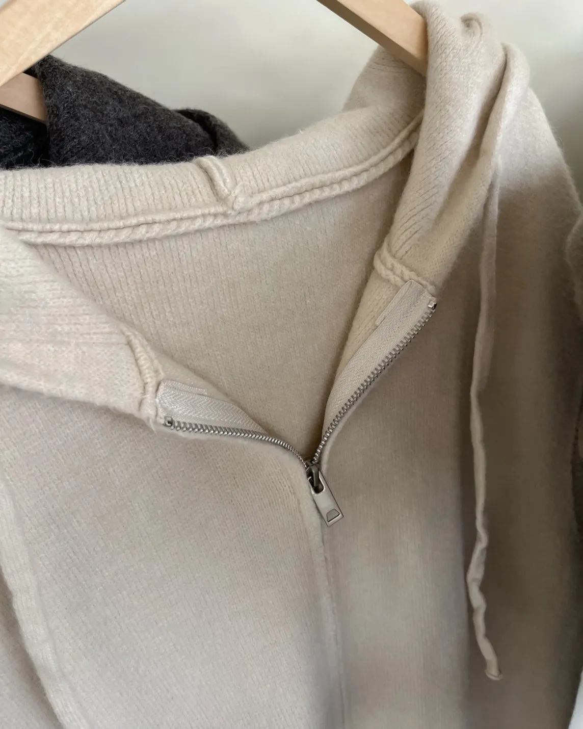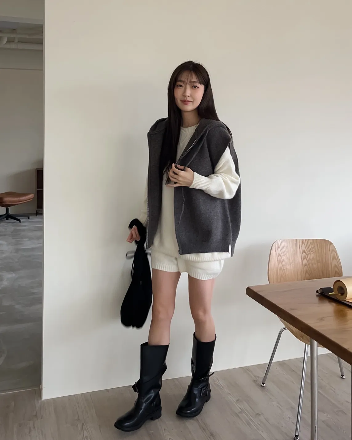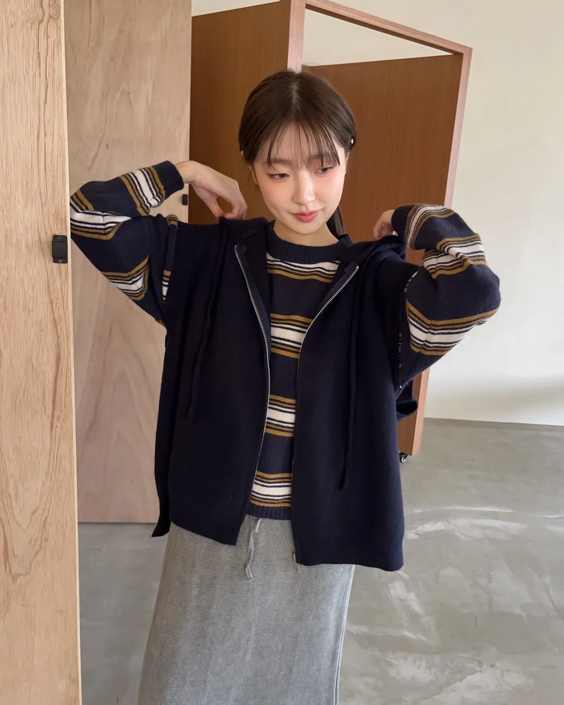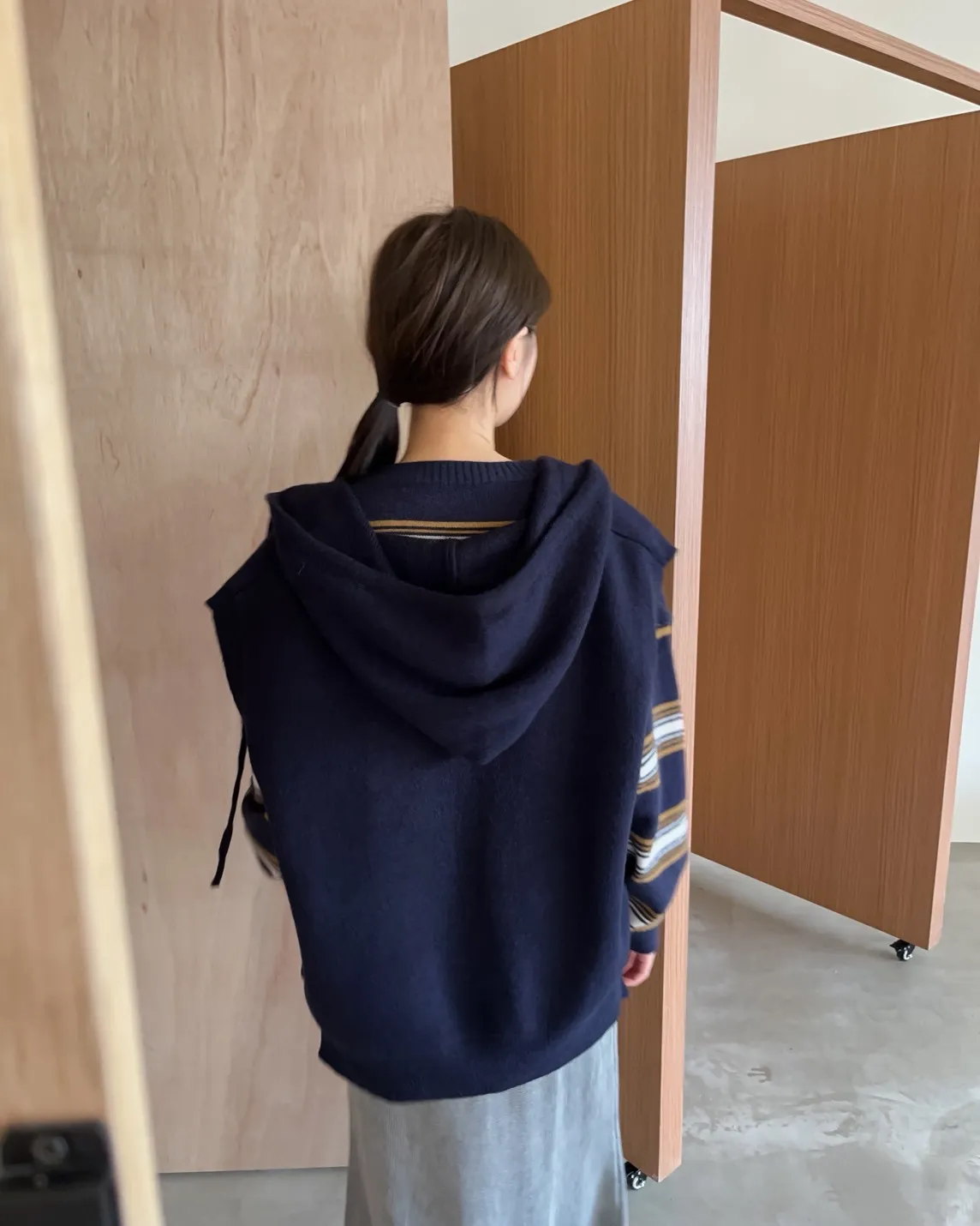 W0009隨性落肩有拉鍊連帽針織背心(杏/綠/灰/深藍)