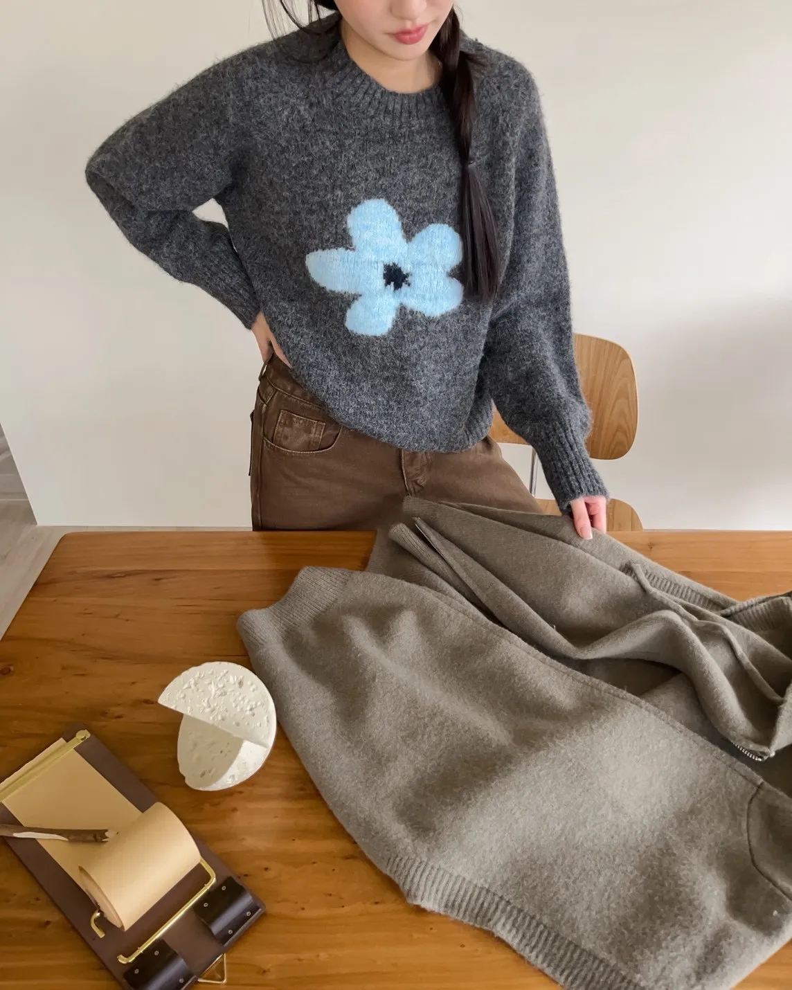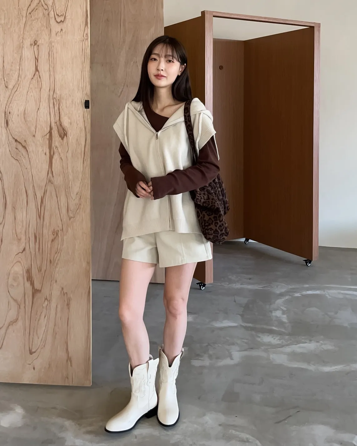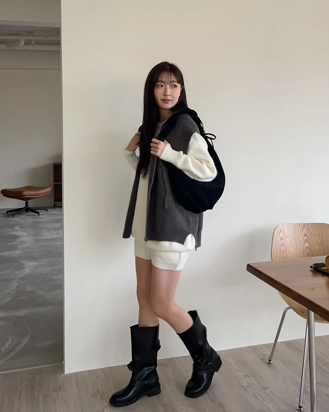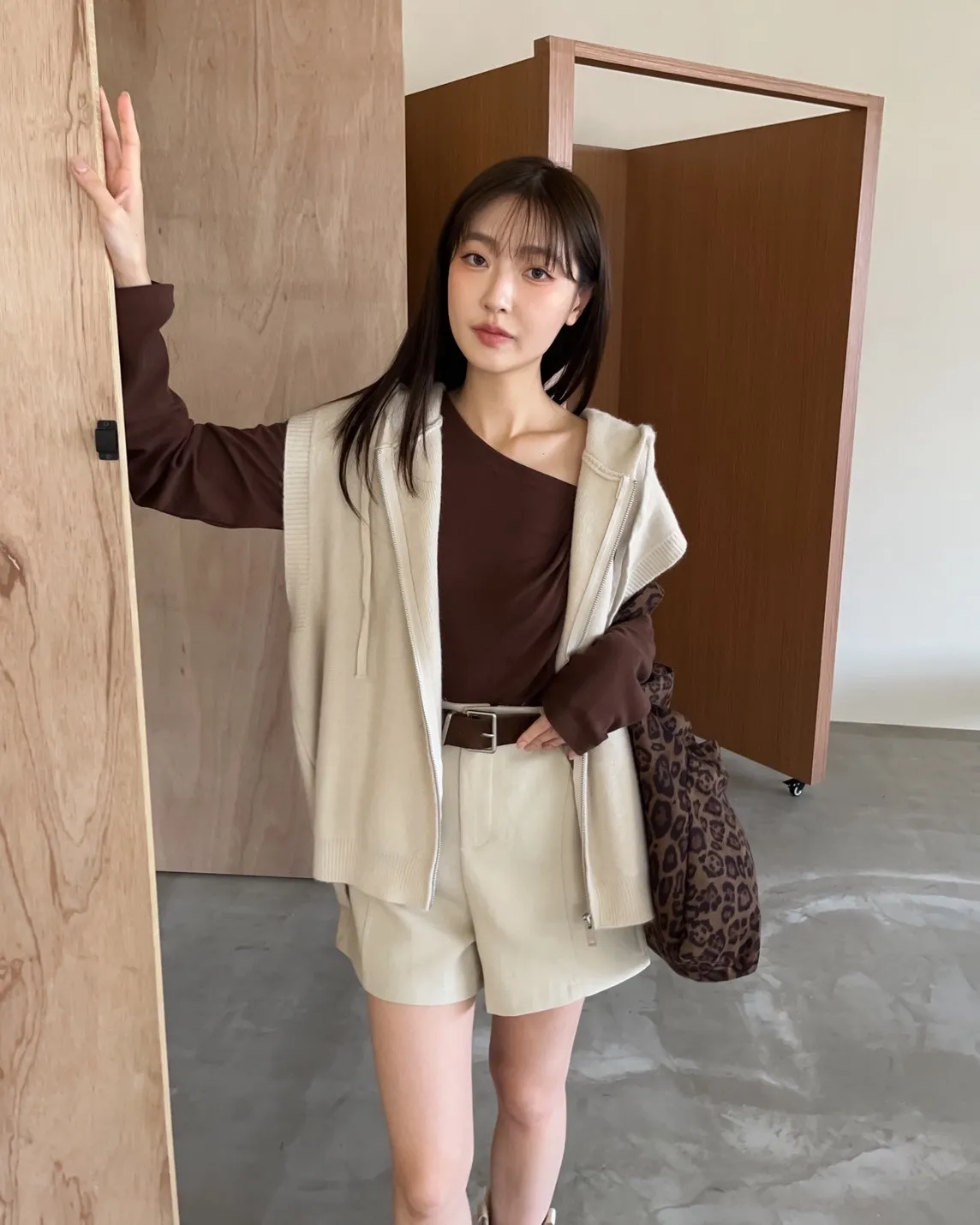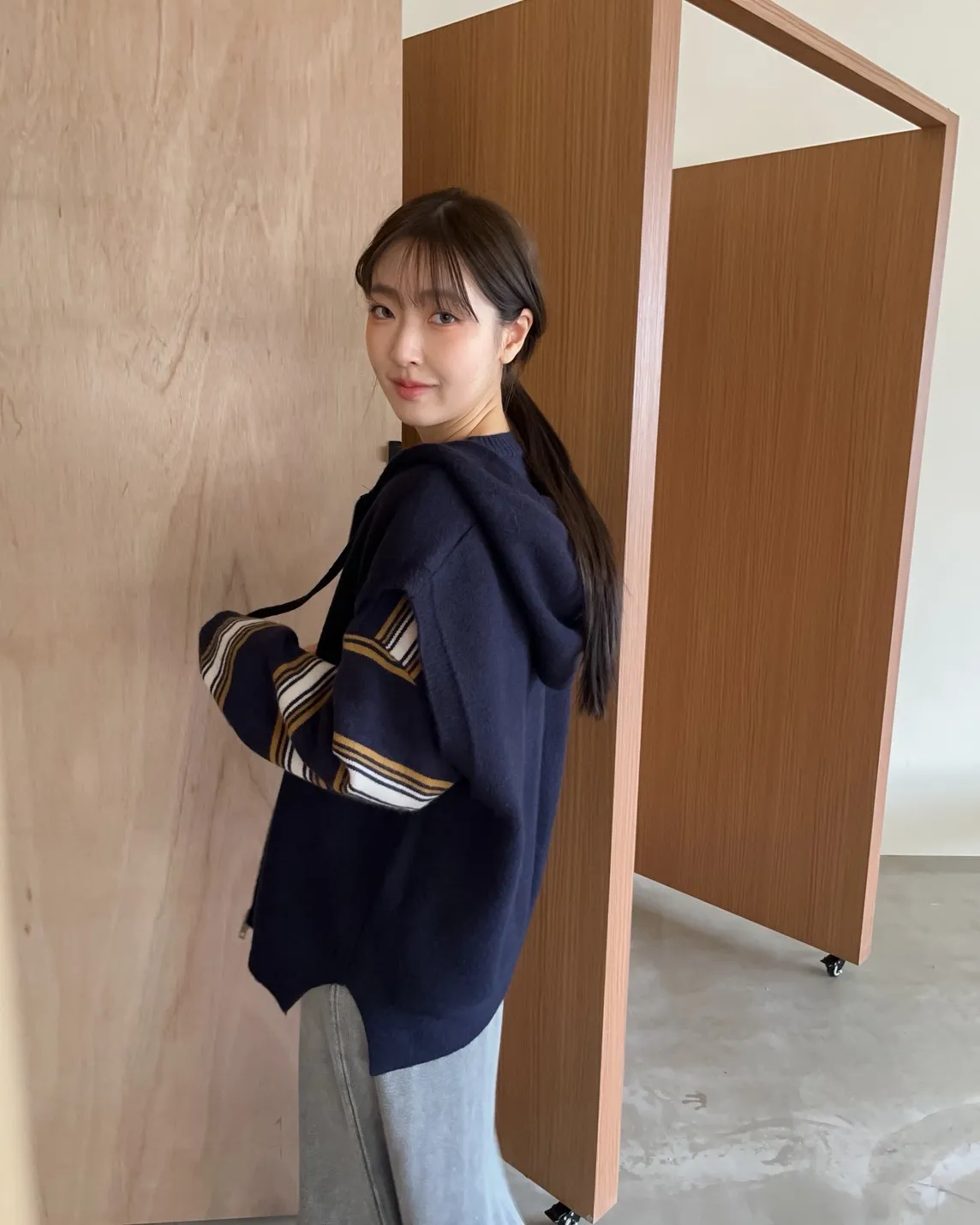 W0009隨性落肩有拉鍊連帽針織背心(杏/綠/灰/深藍)
