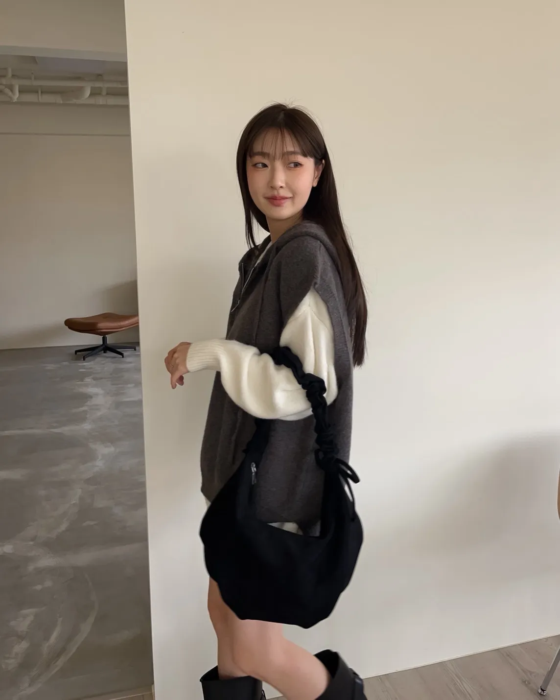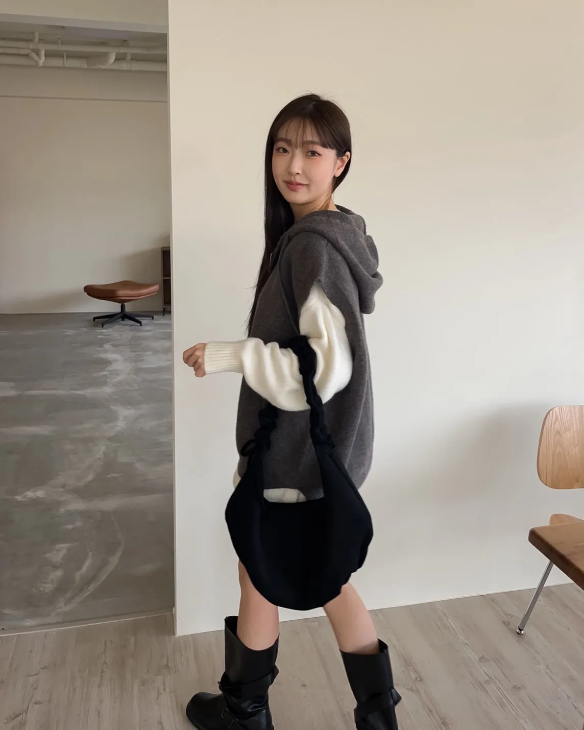 有拉鍊 寬鬆落肩 連帽增加隨性感