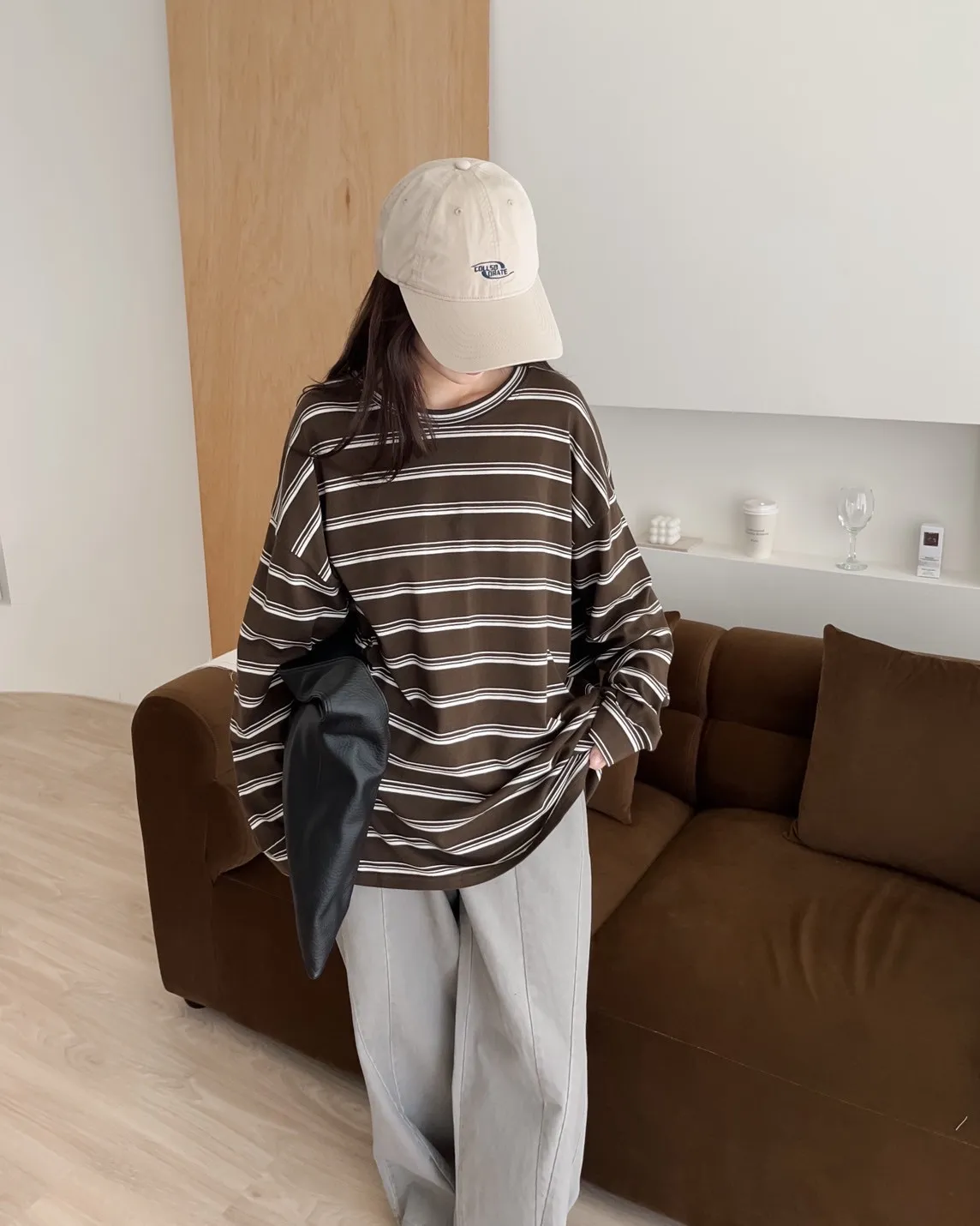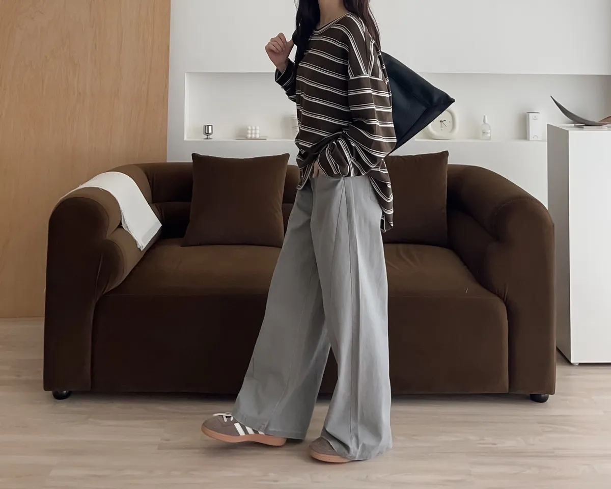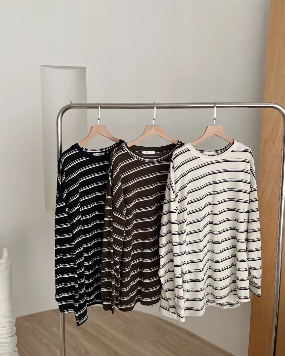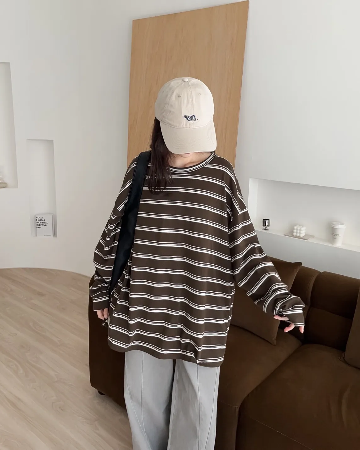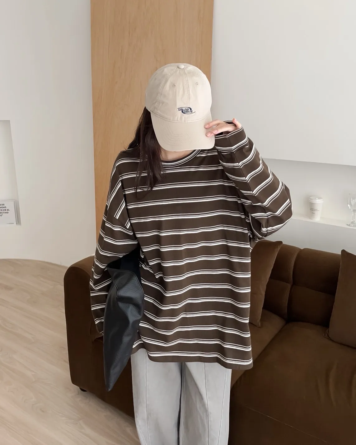 U0004早秋版_寬鬆橫條紋軟棉上衣(米/咖啡/黑)(米售完不補)