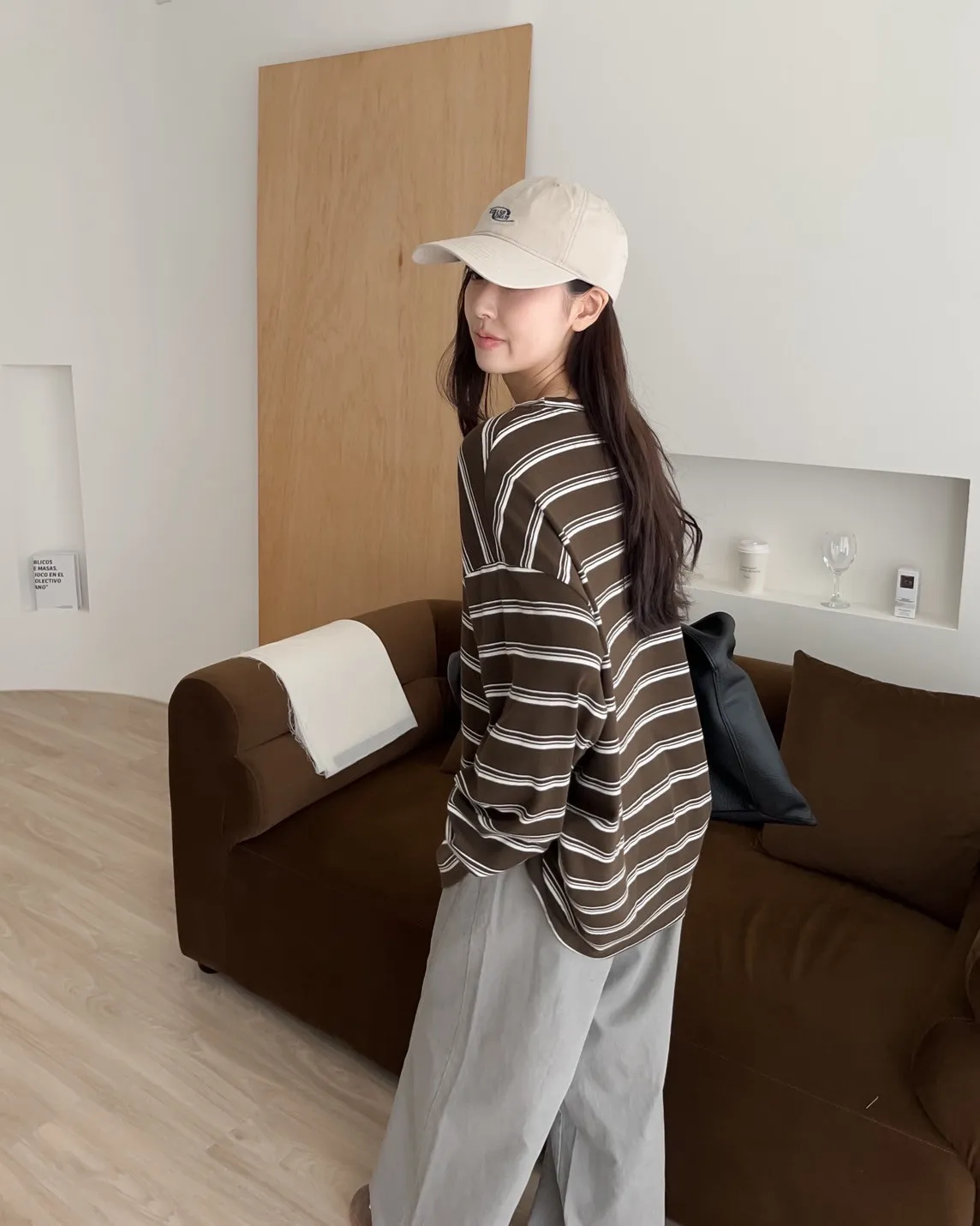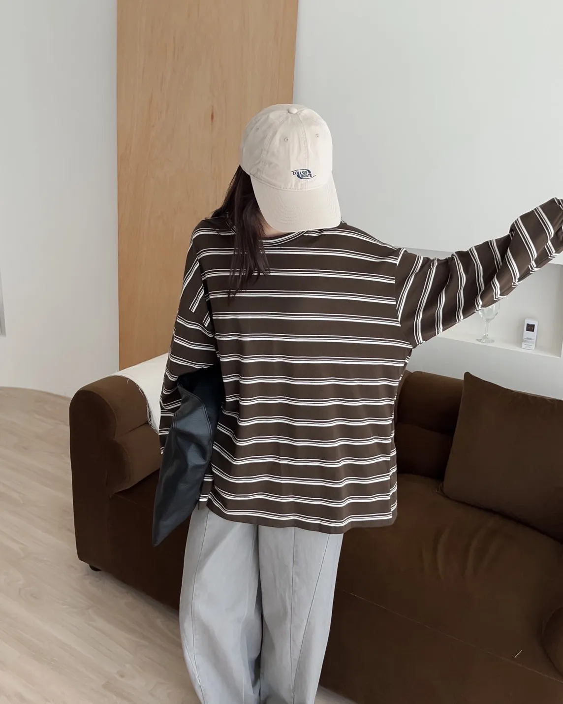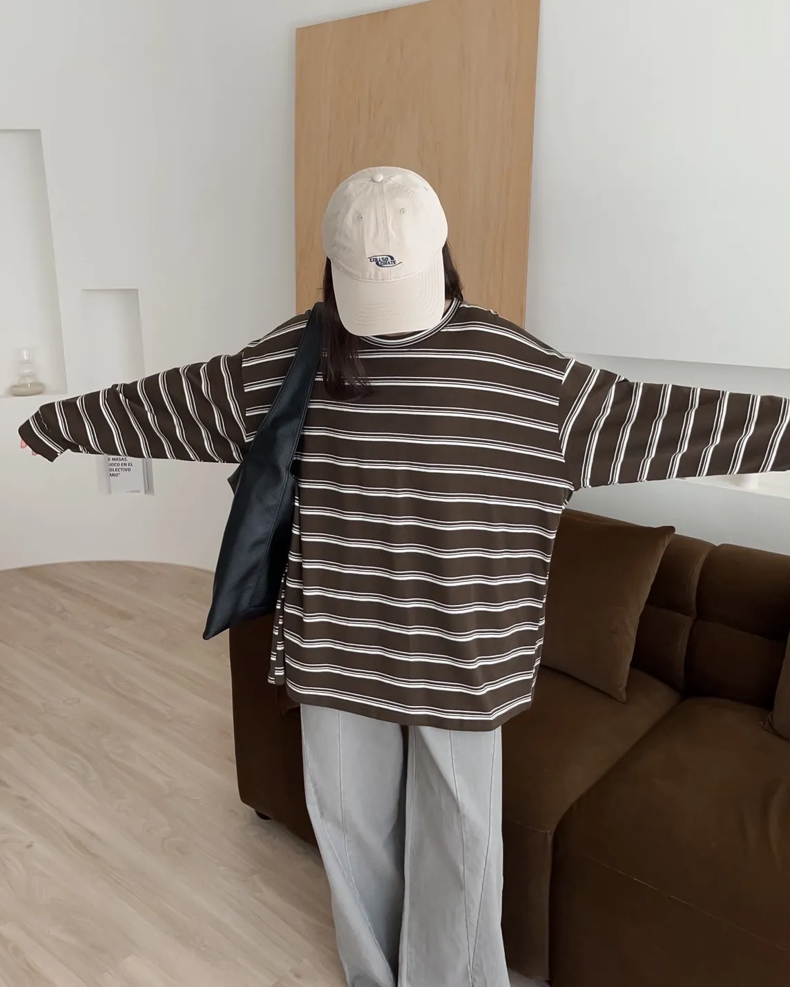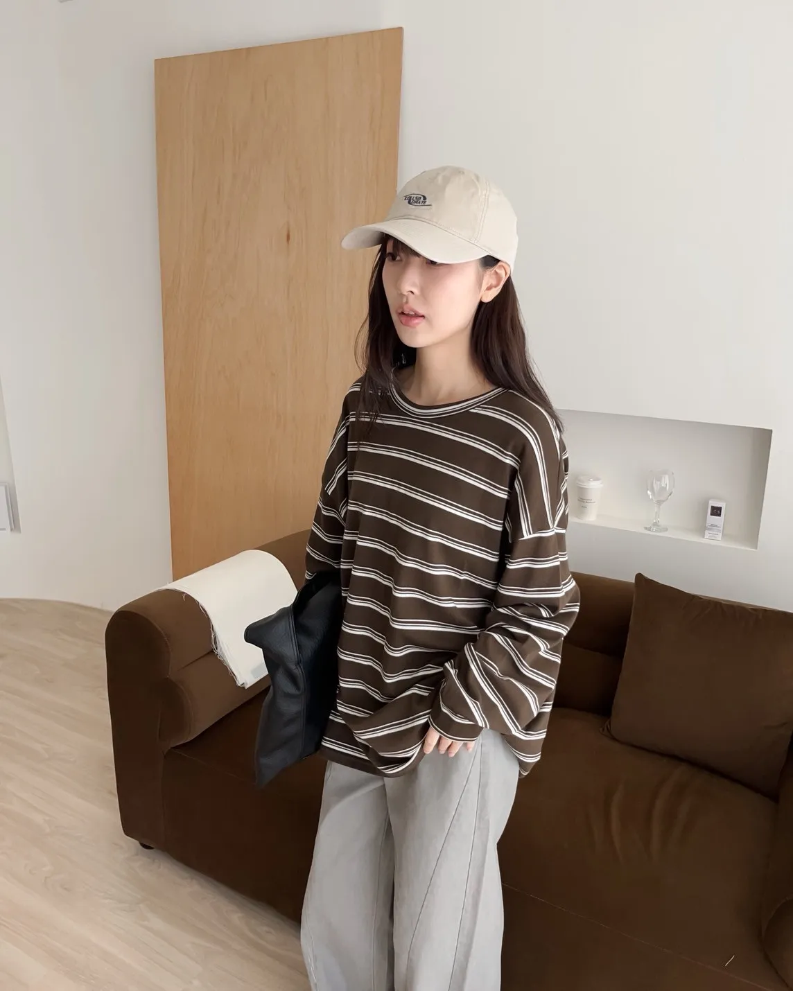 U0004早秋版_寬鬆橫條紋軟棉上衣(米/咖啡/黑)(米售完不補)