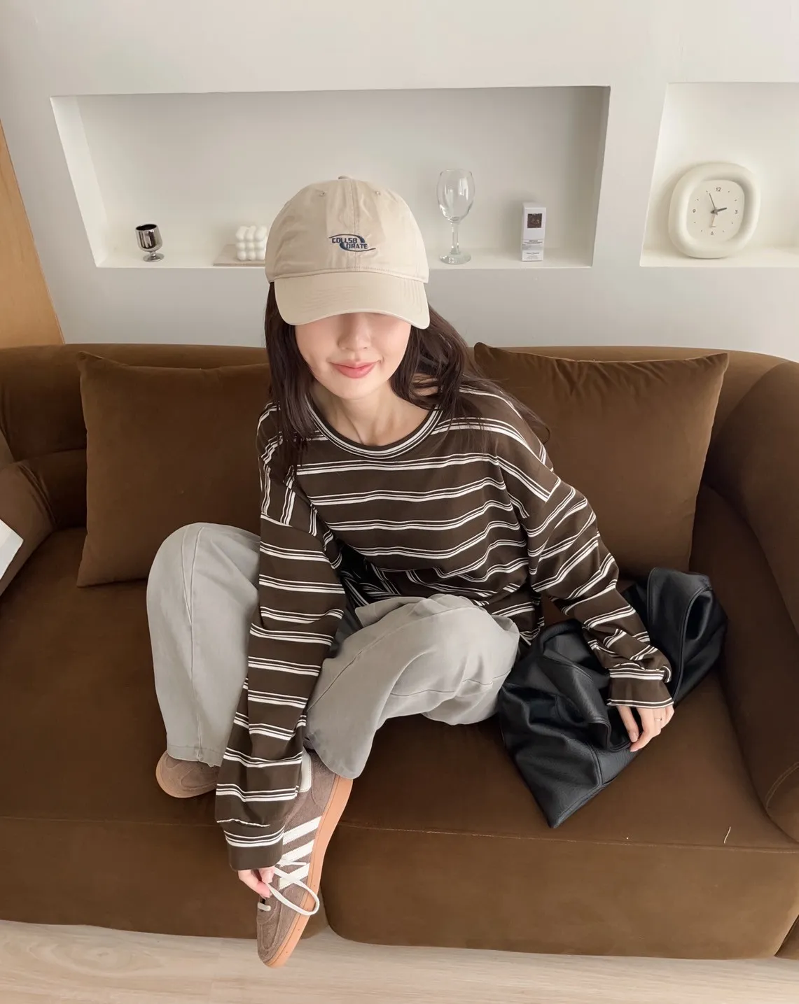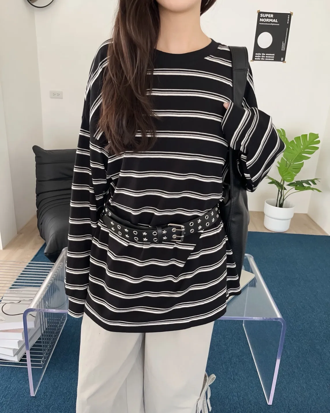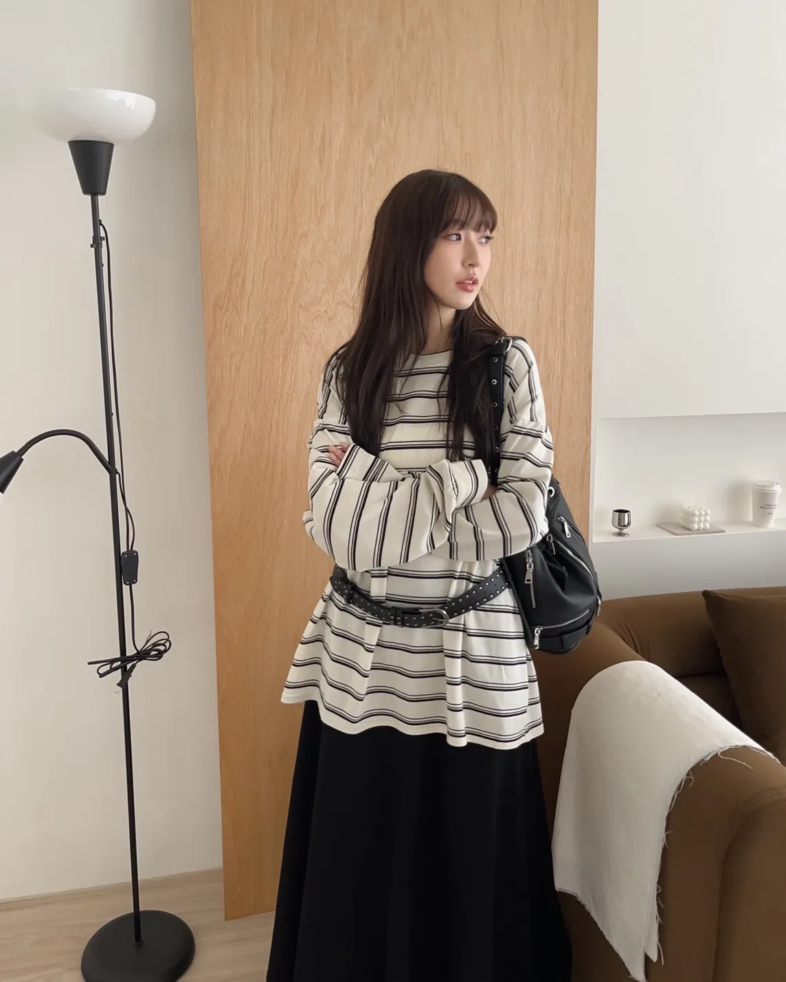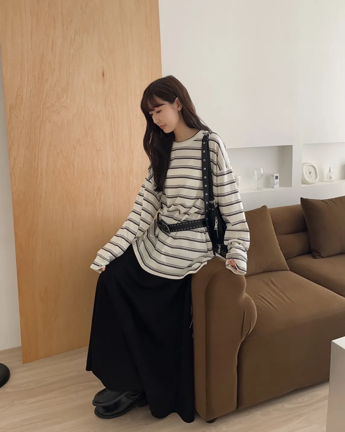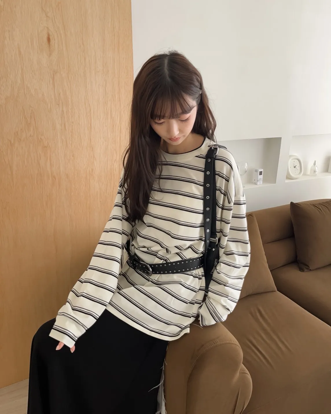 U0004早秋版_寬鬆橫條紋軟棉上衣(米/咖啡/黑)(米售完不補)