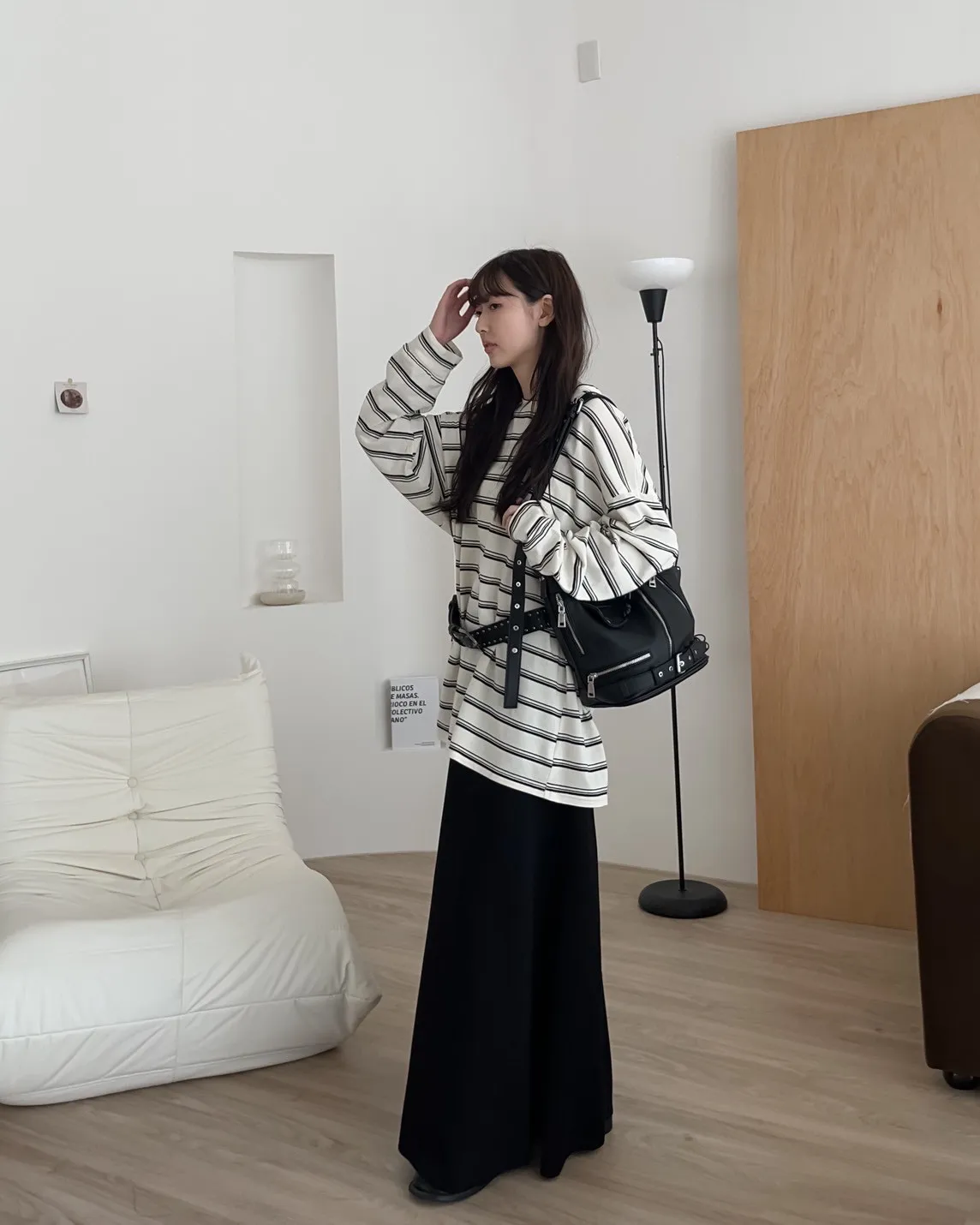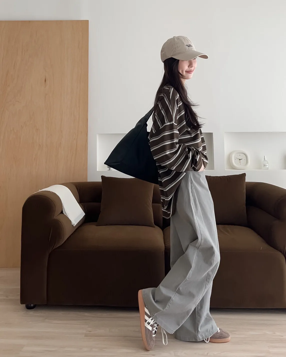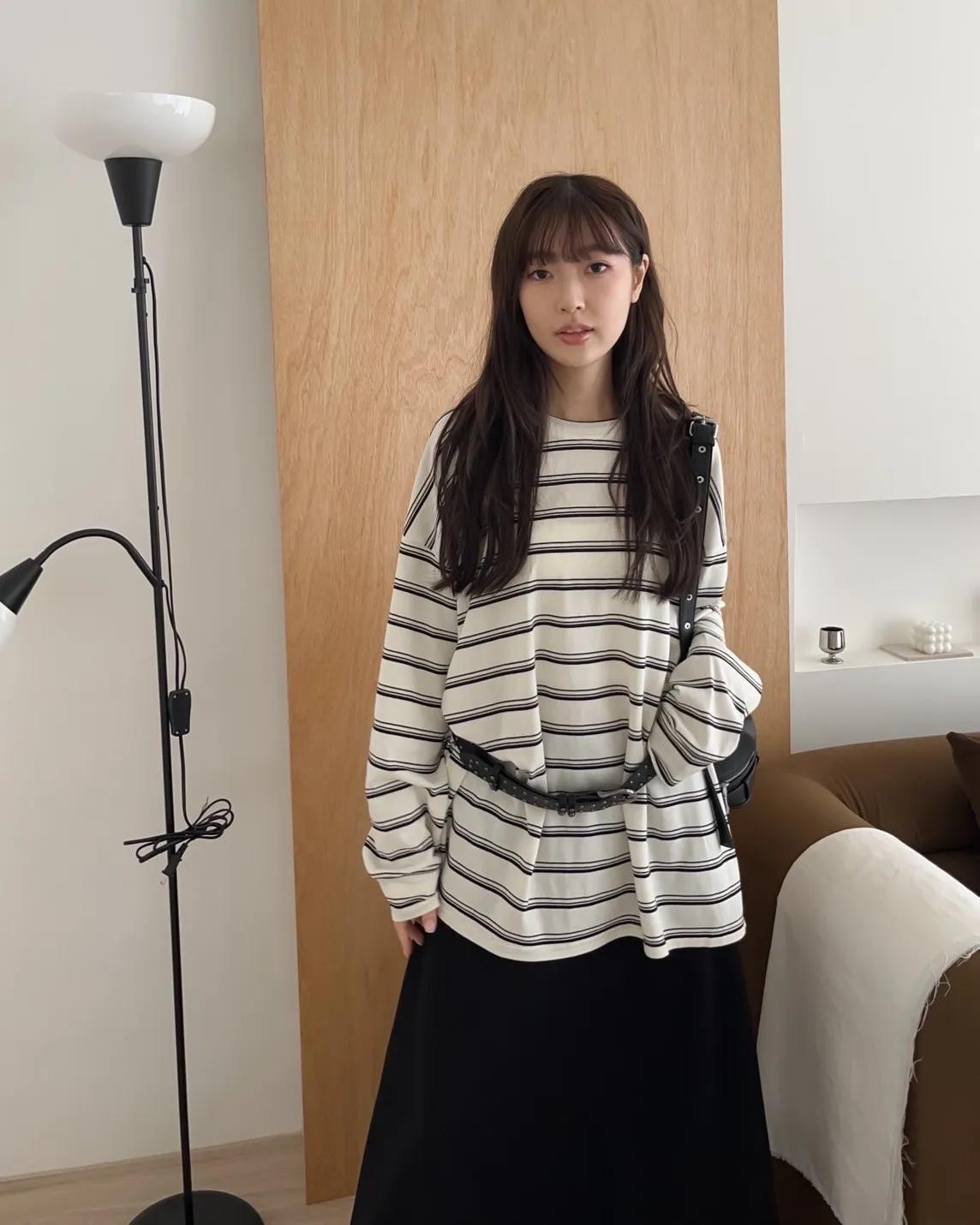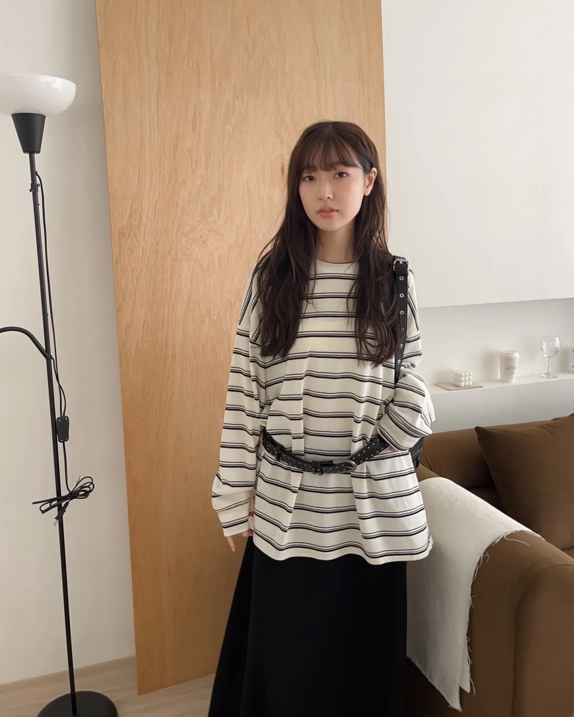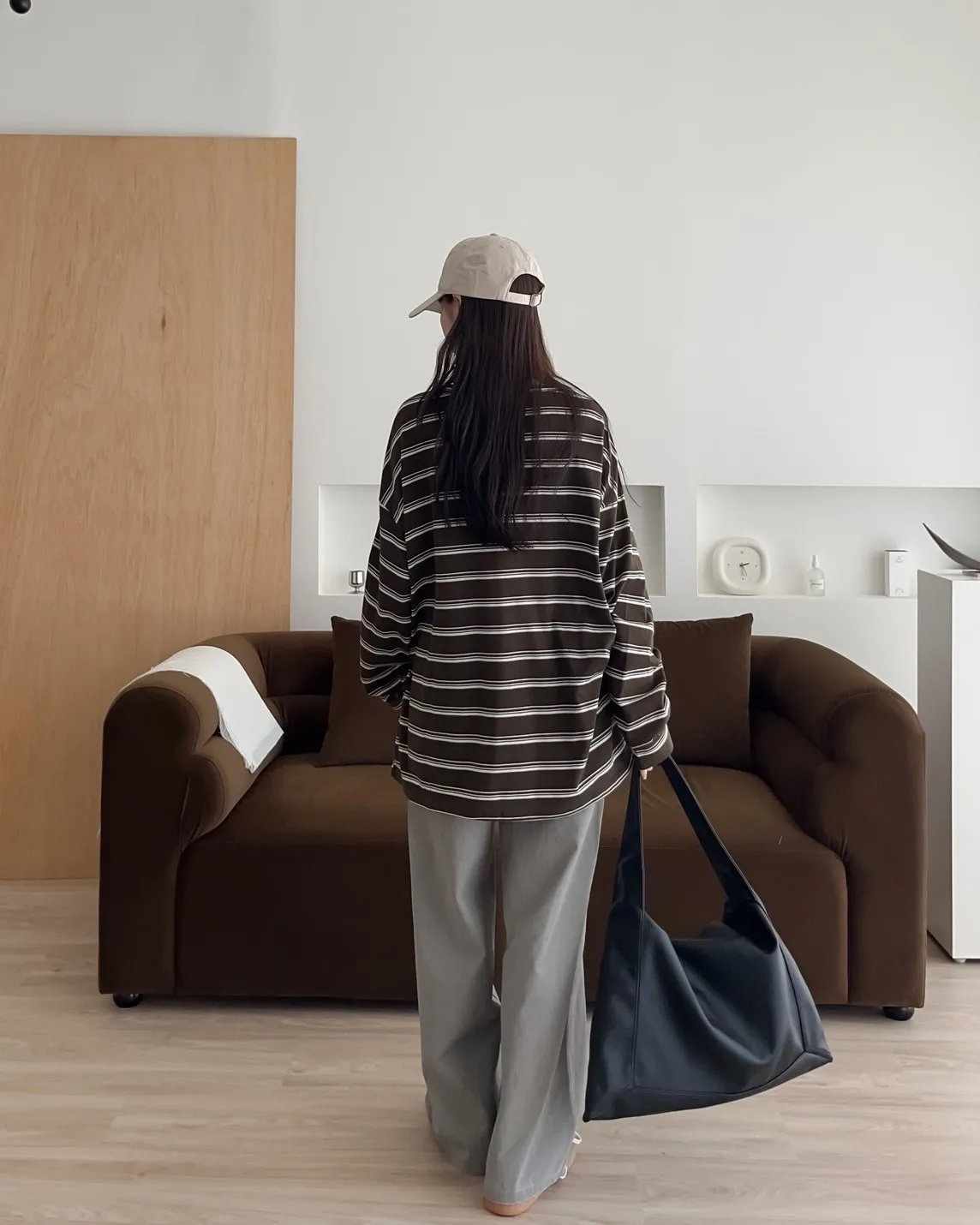 U0004早秋版_寬鬆橫條紋軟棉上衣(米/咖啡/黑)(米售完不補)