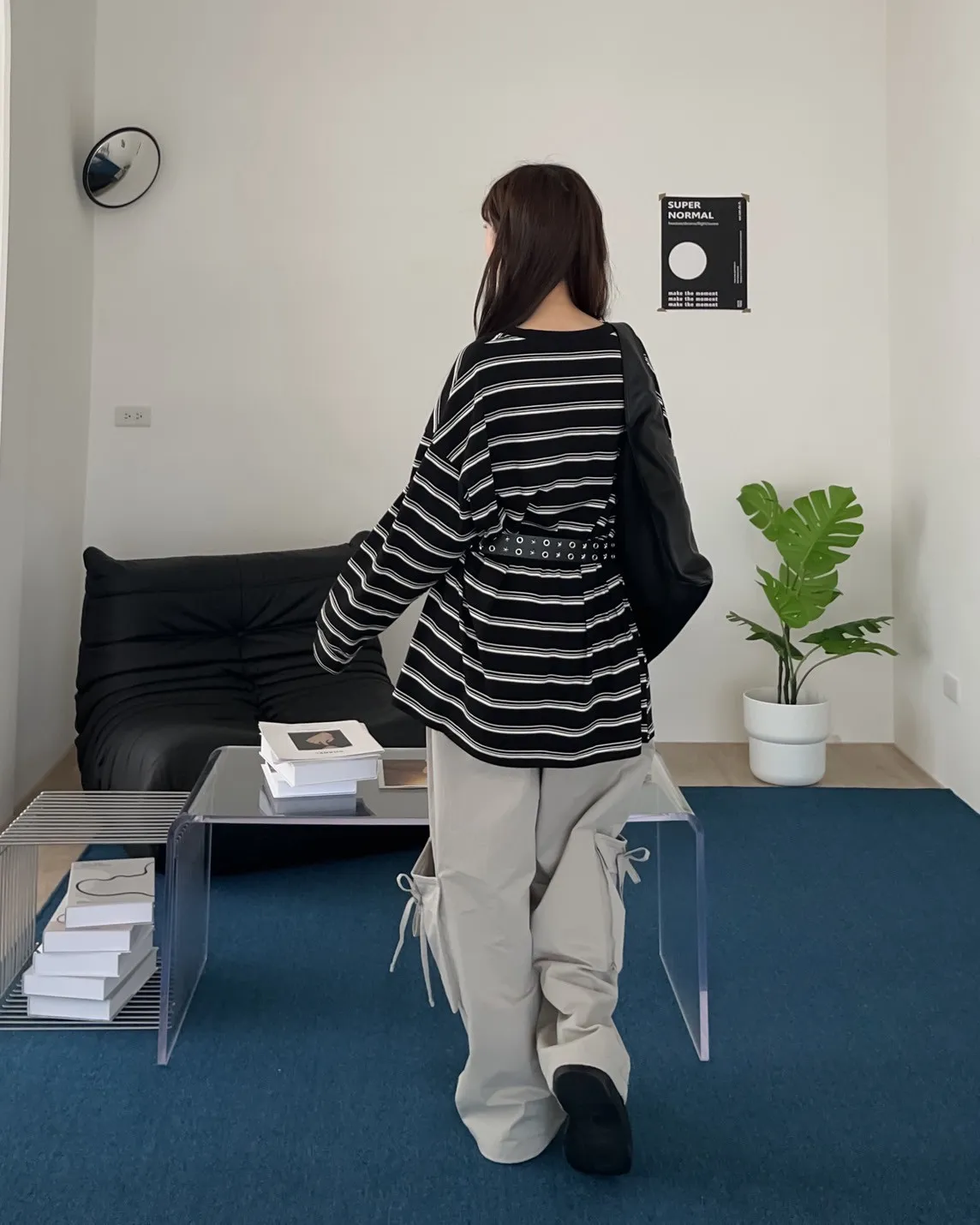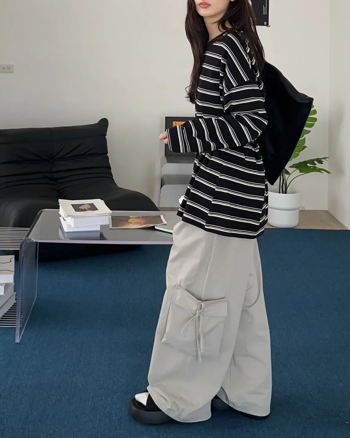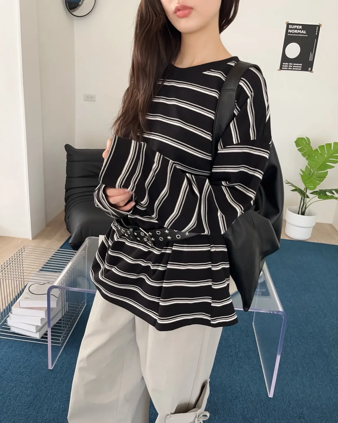 橫條紋 寬鬆落肩 布料偏薄 很軟