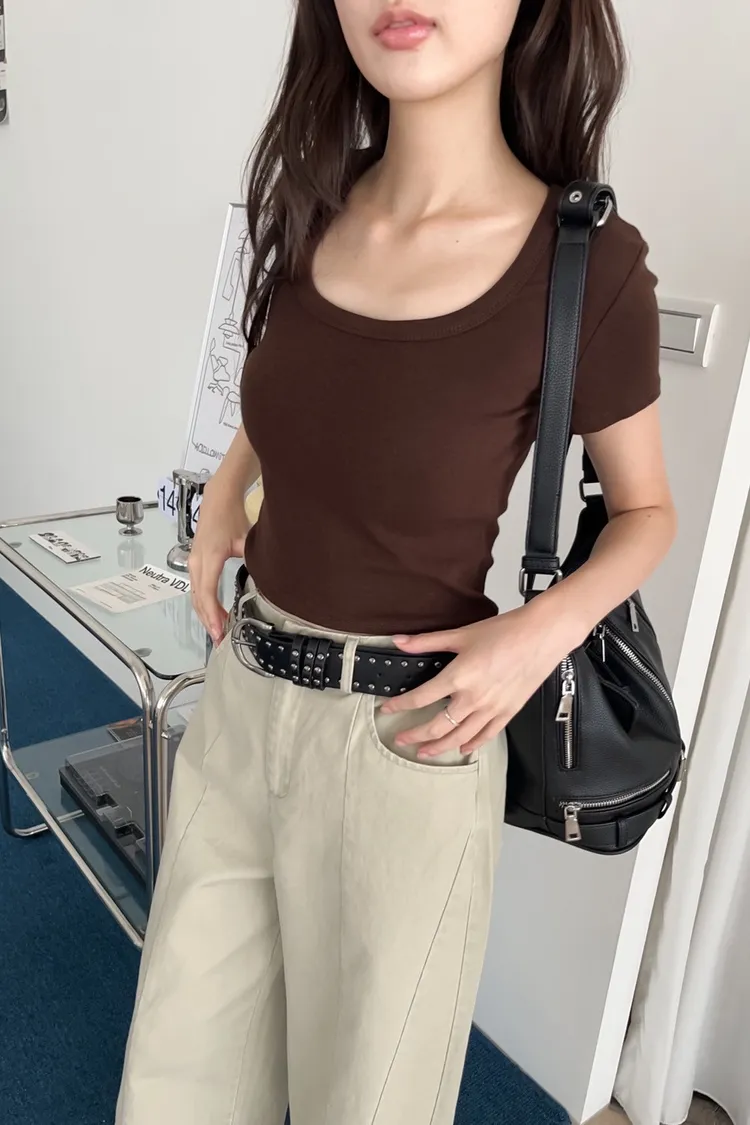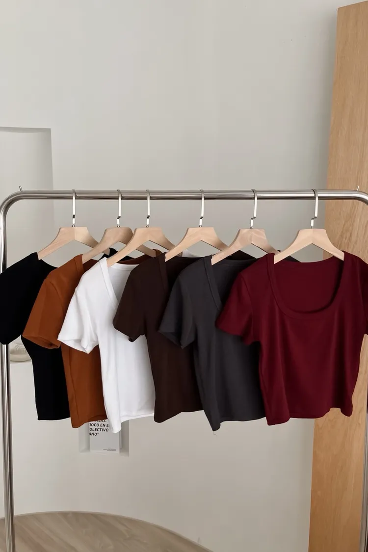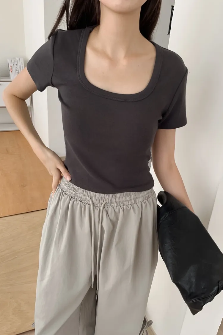 U0024(六色)包色!!顯鎖骨方領小T(白/咖啡/橘/紅/灰/黑)(橘售完不補)