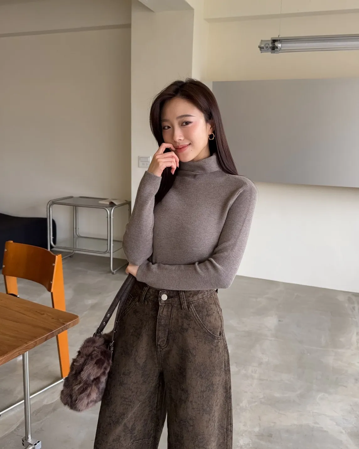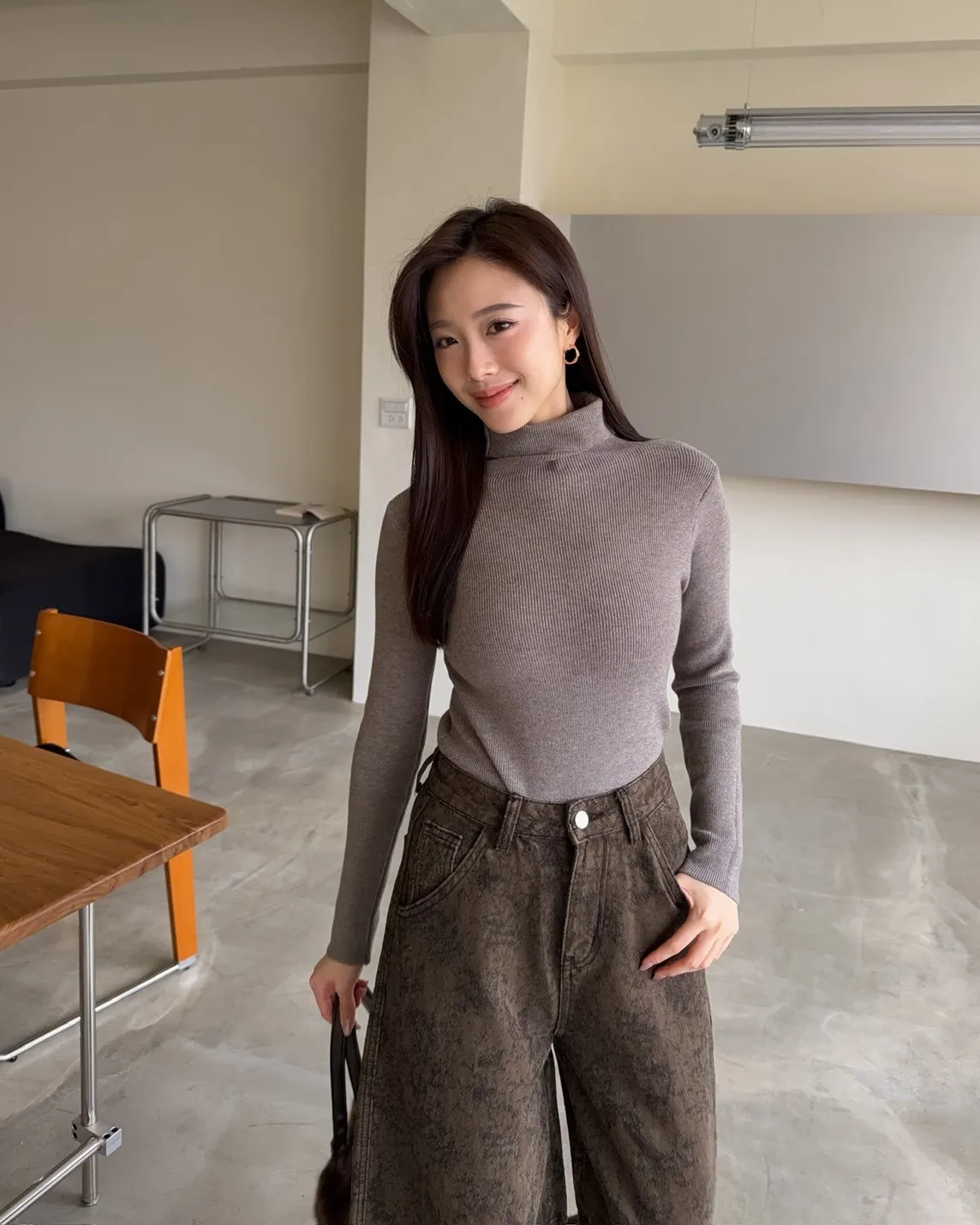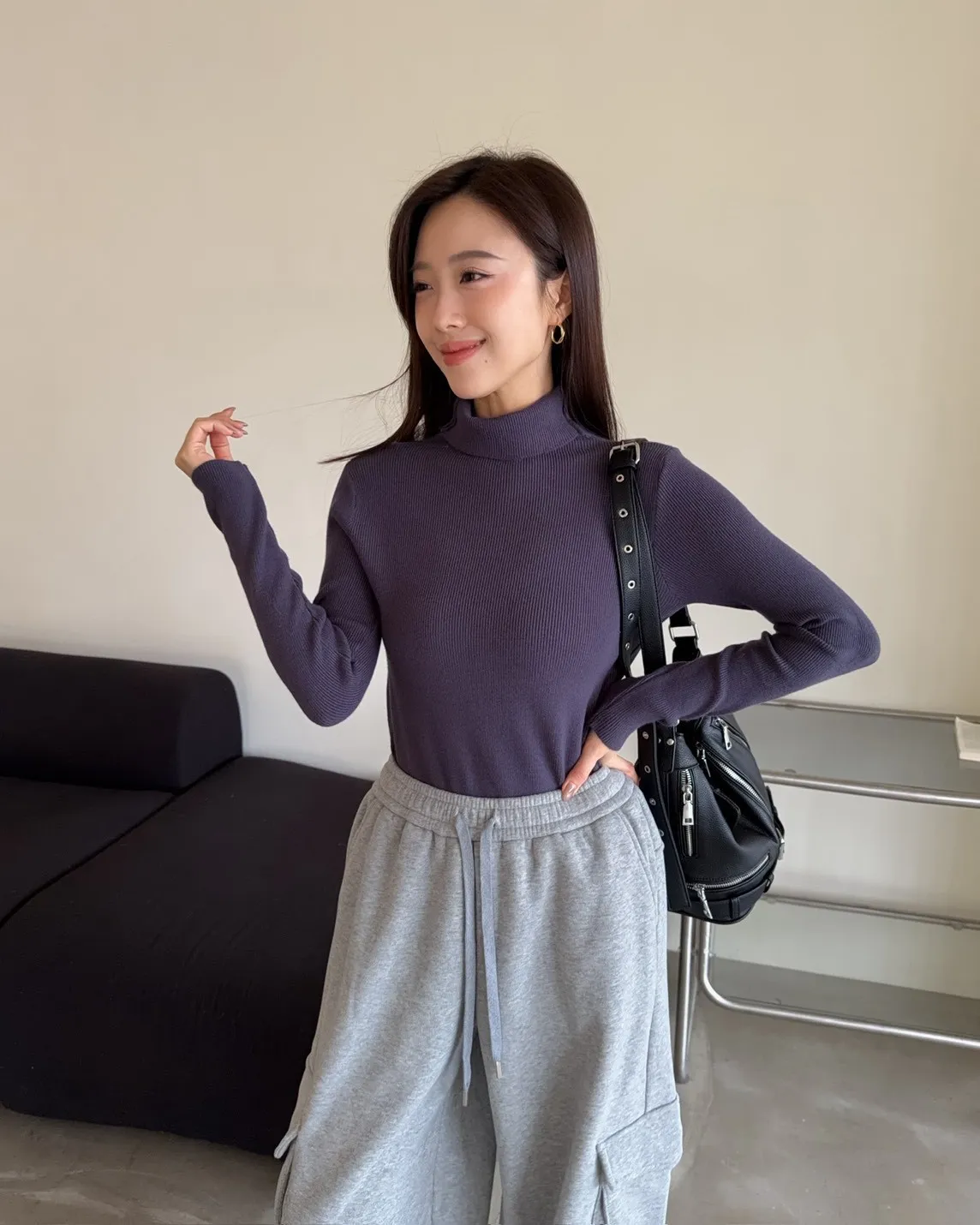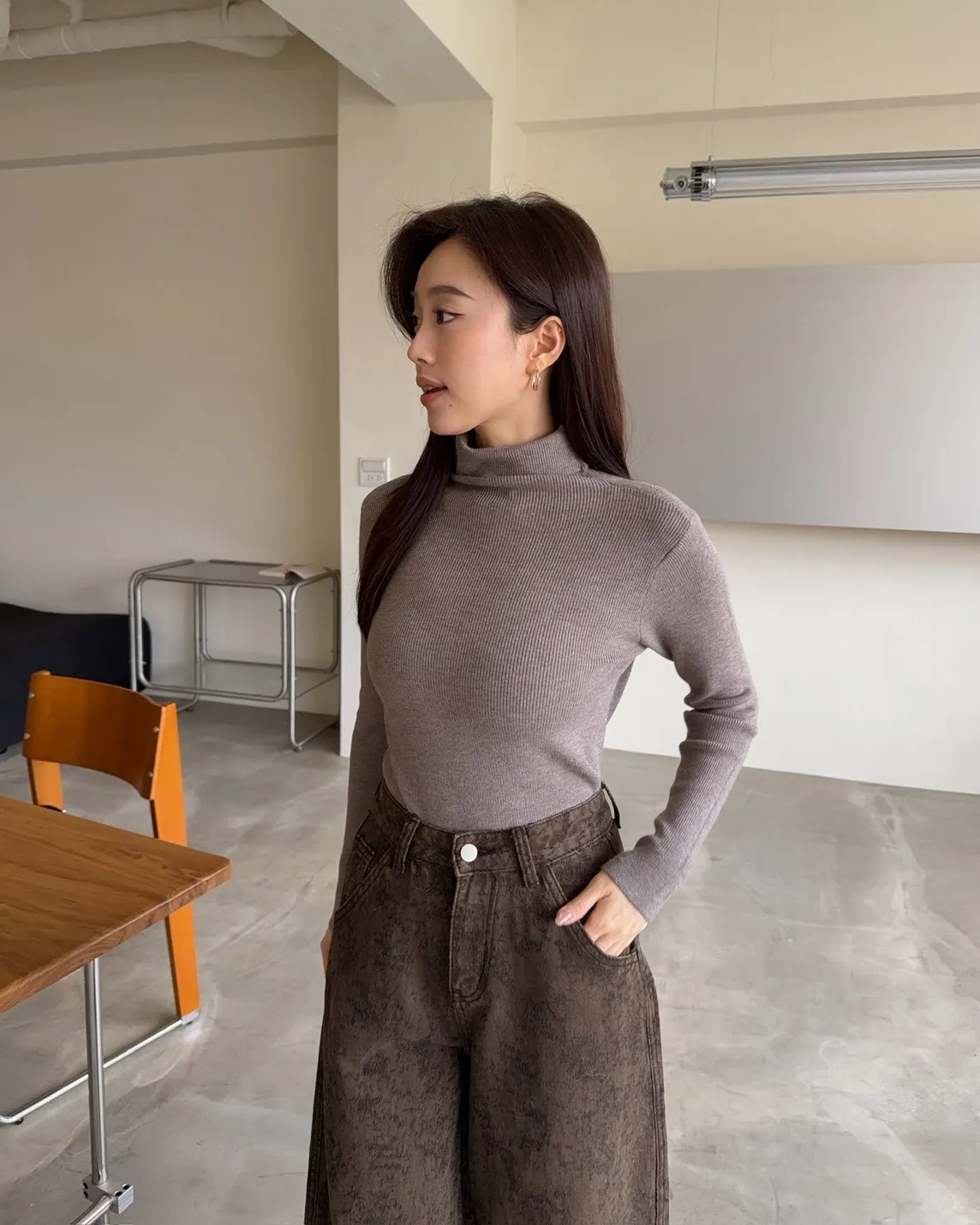X0046(五色)冬日暖脖高領打底衣(米白/咖啡/可可/灰/深藍)