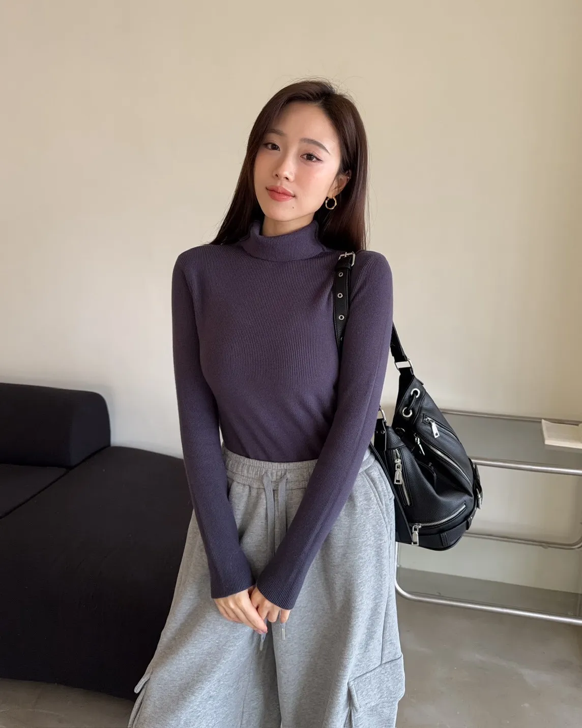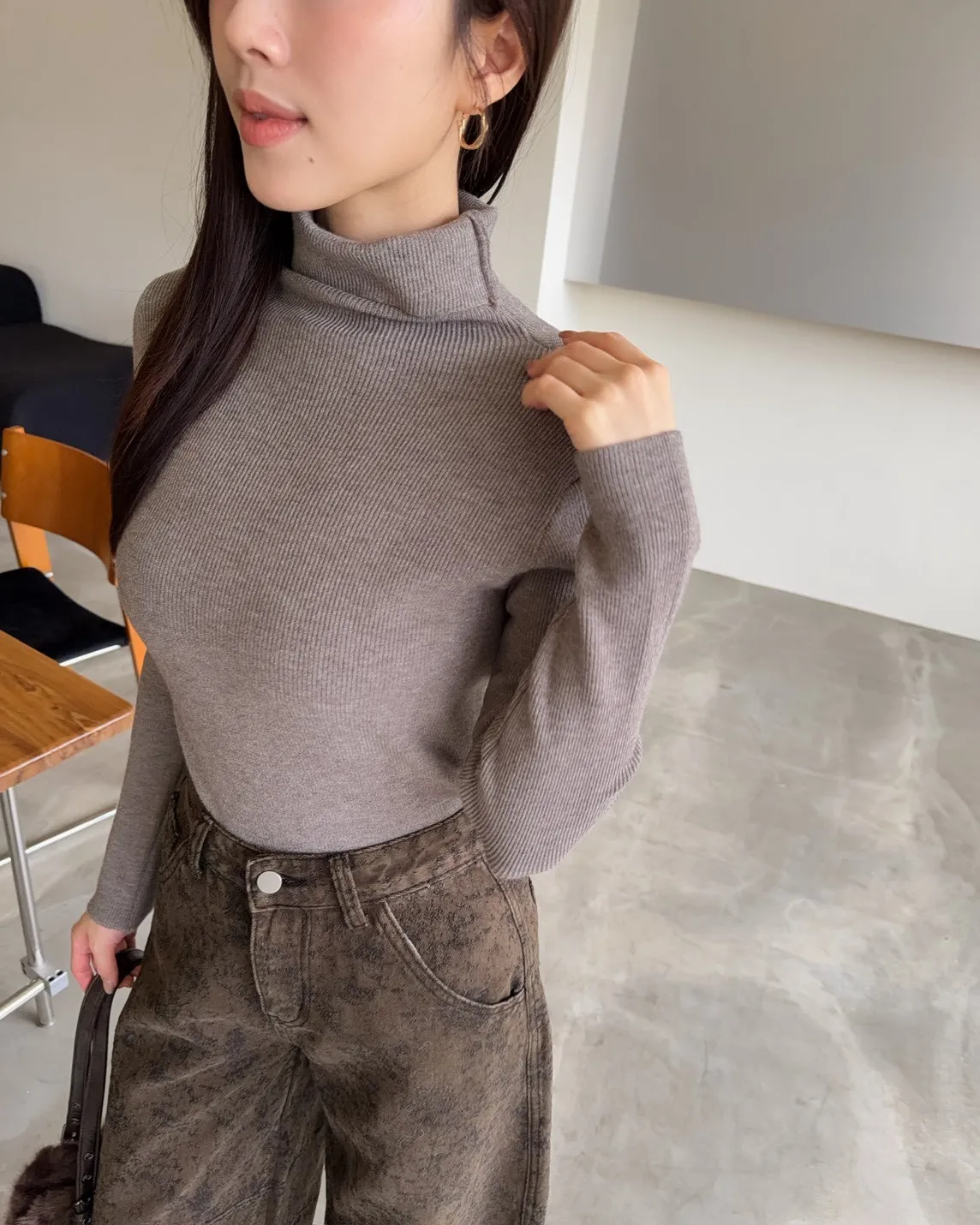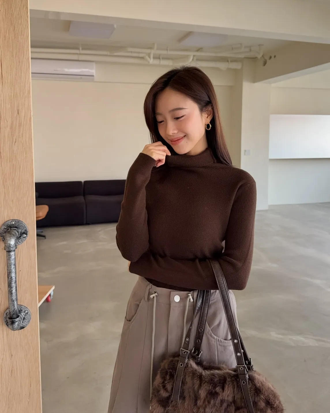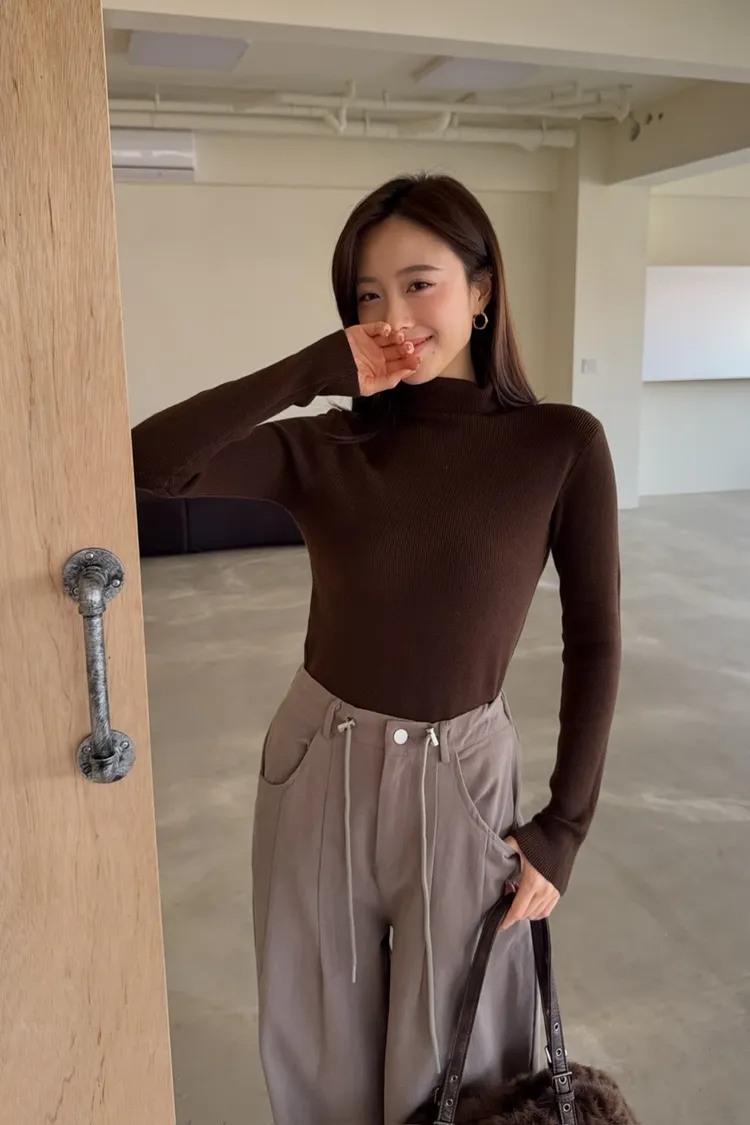 X0046(五色)冬日暖脖高領打底衣(米白/咖啡/可可/灰/深藍)