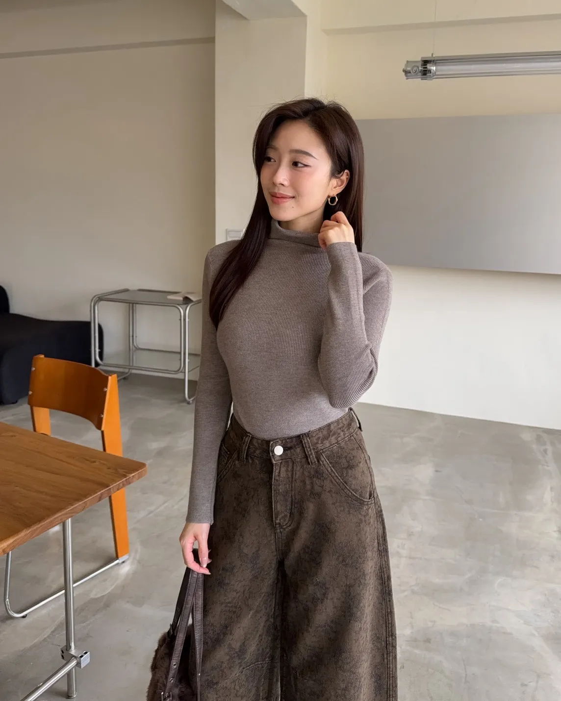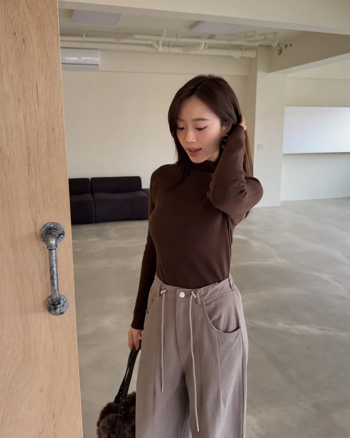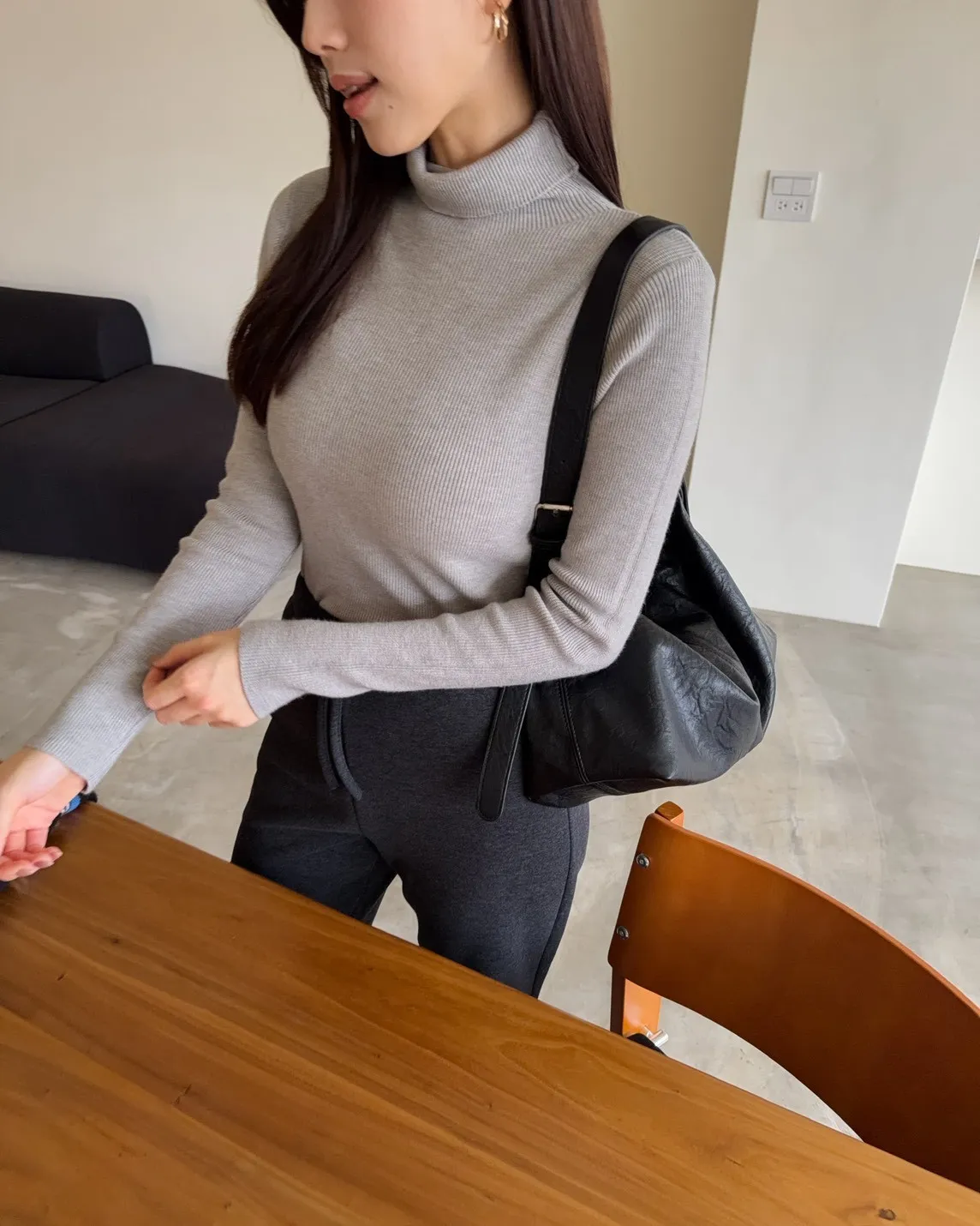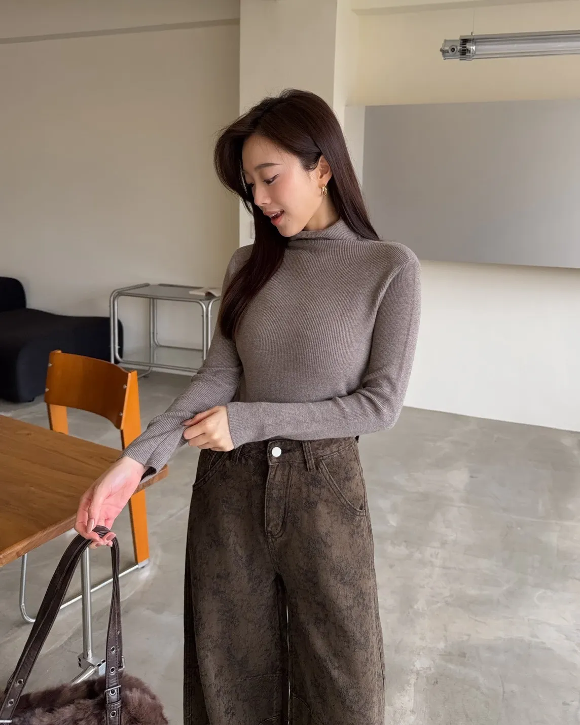 X0046(五色)冬日暖脖高領打底衣(米白/咖啡/可可/灰/深藍)
