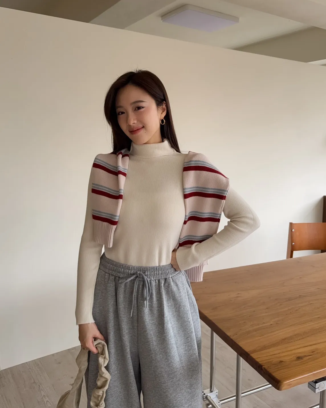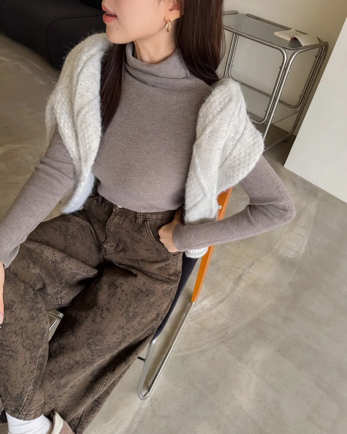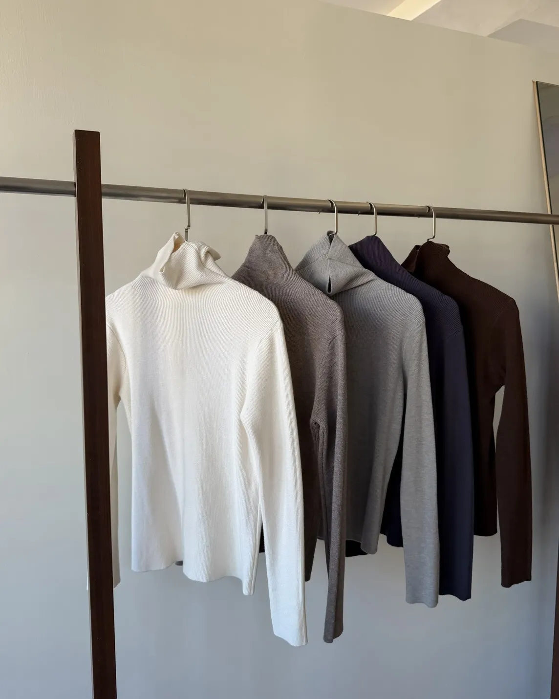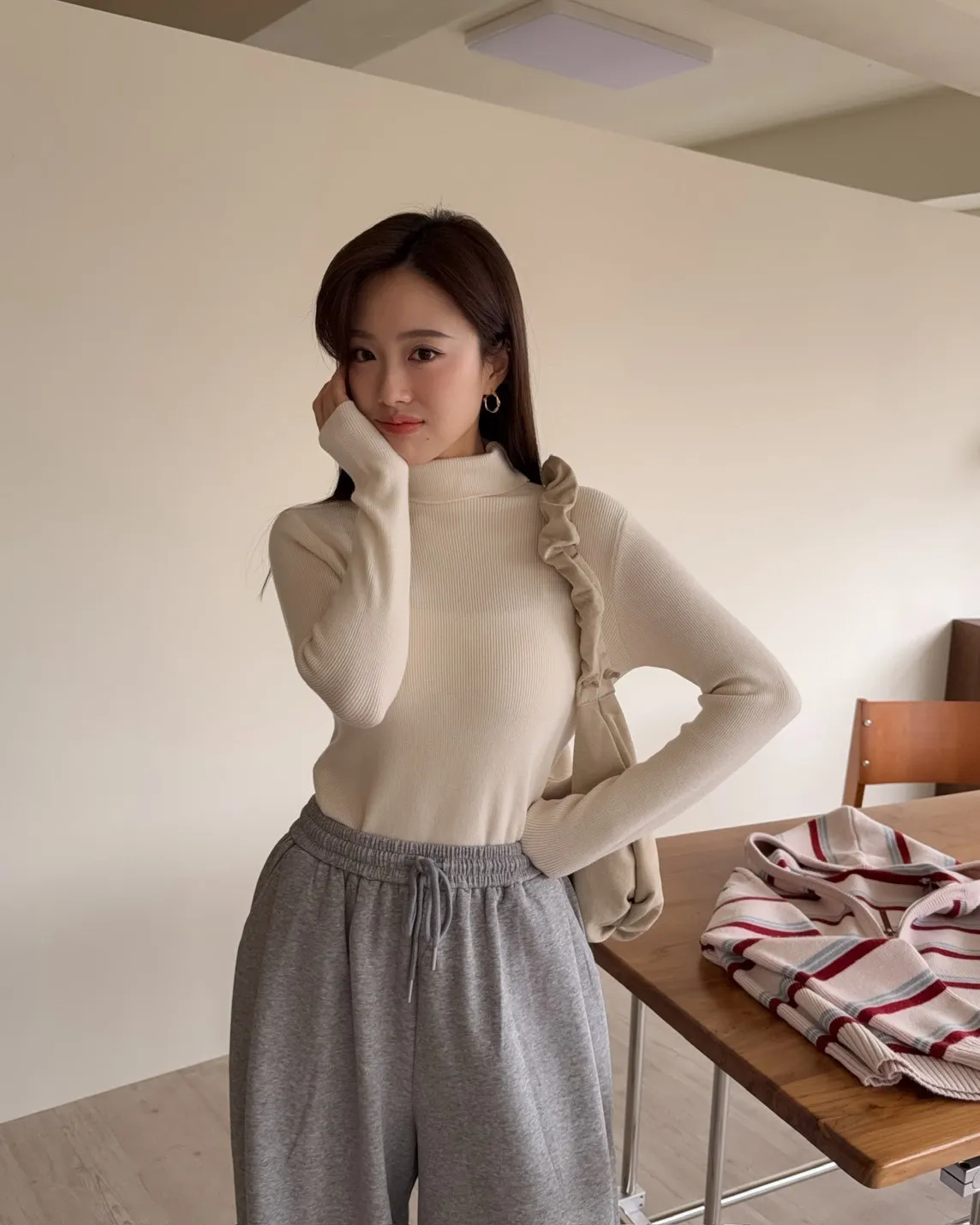 X0046(五色)冬日暖脖高領打底衣(米白/咖啡/可可/灰/深藍)