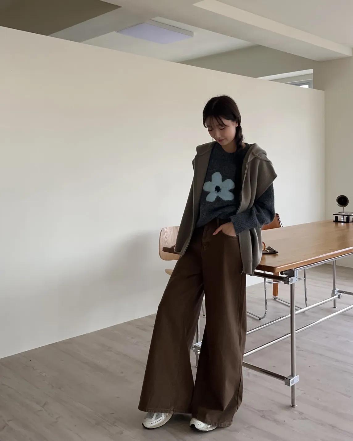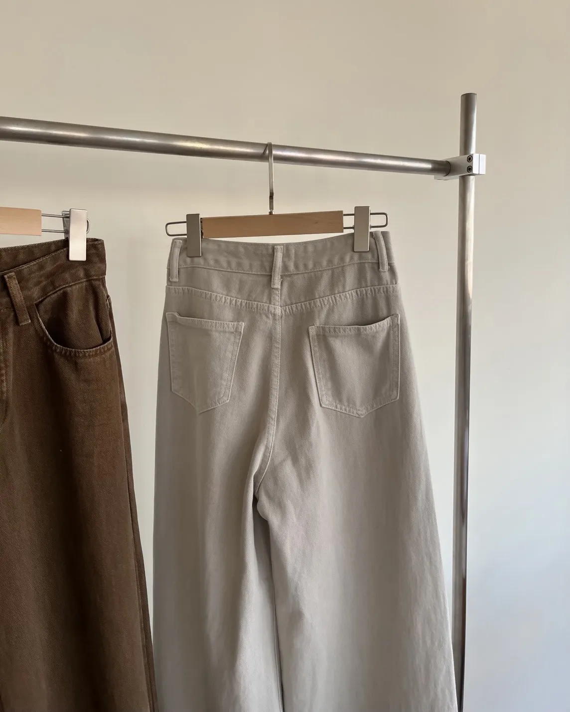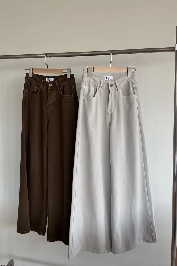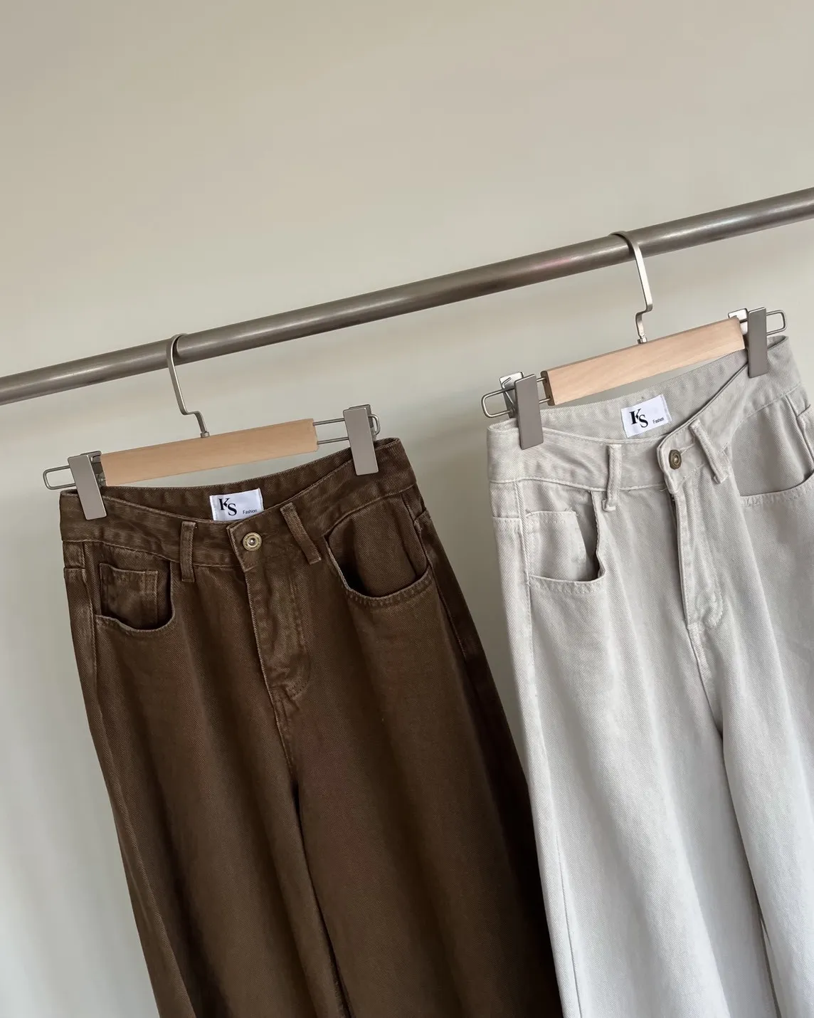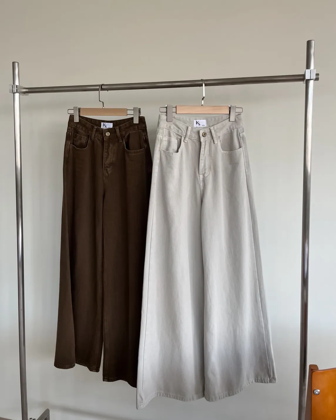 W0017奶咖色系水洗寬管落地長褲(杏/咖啡)