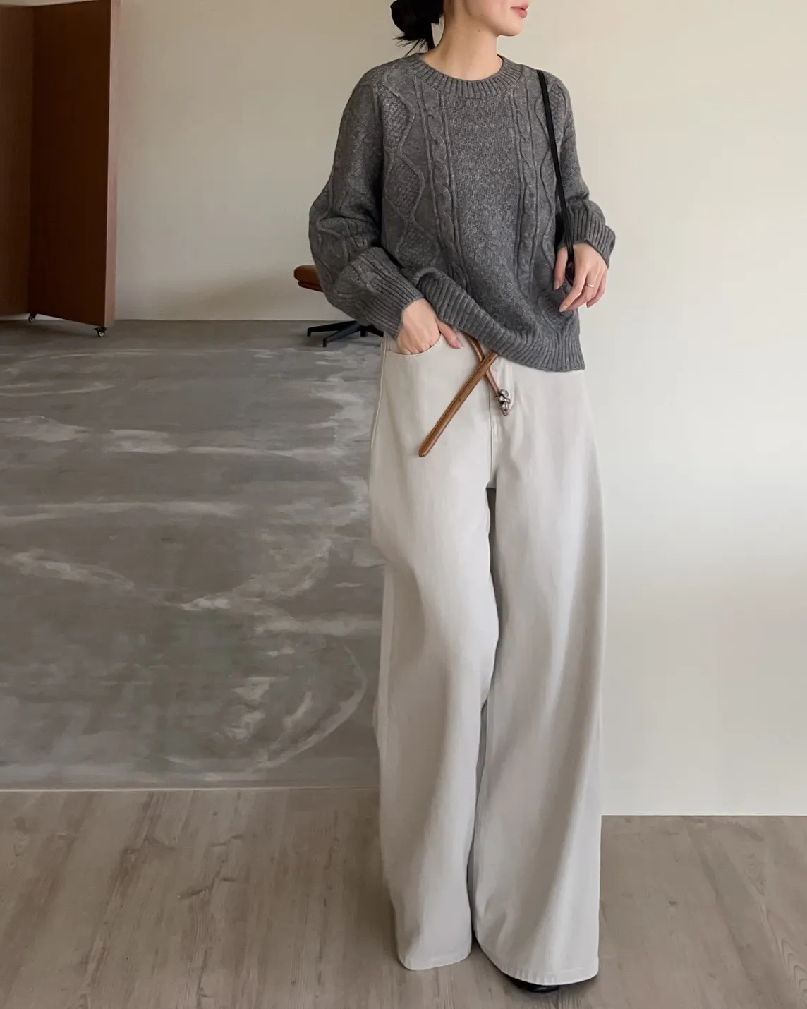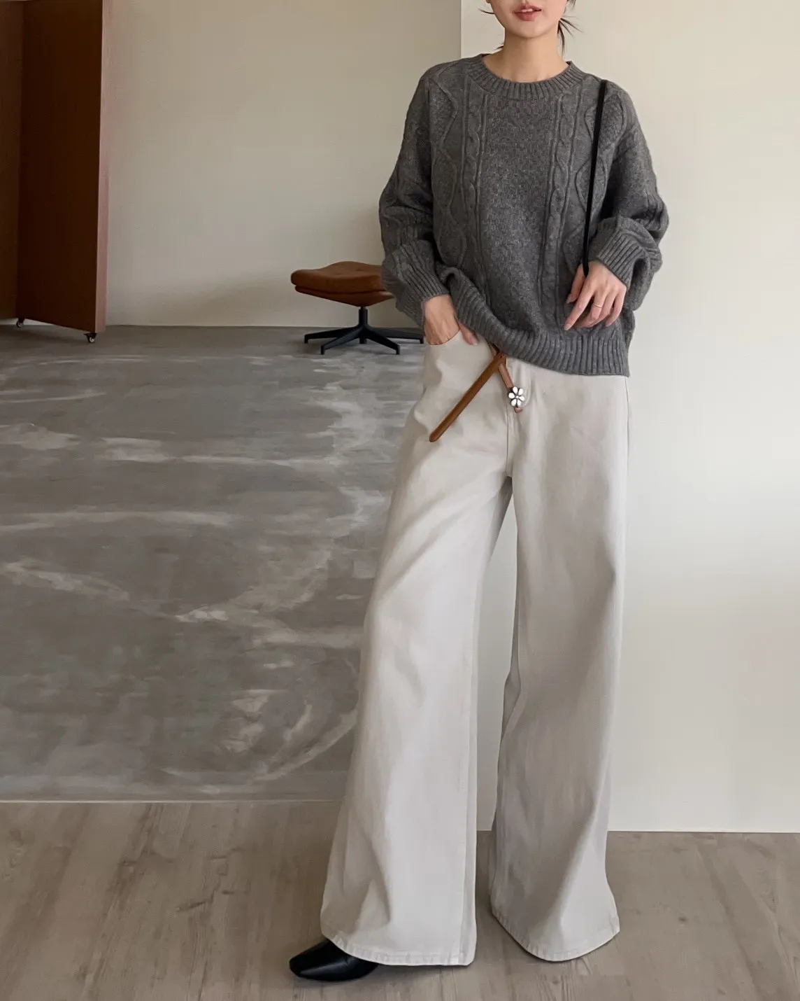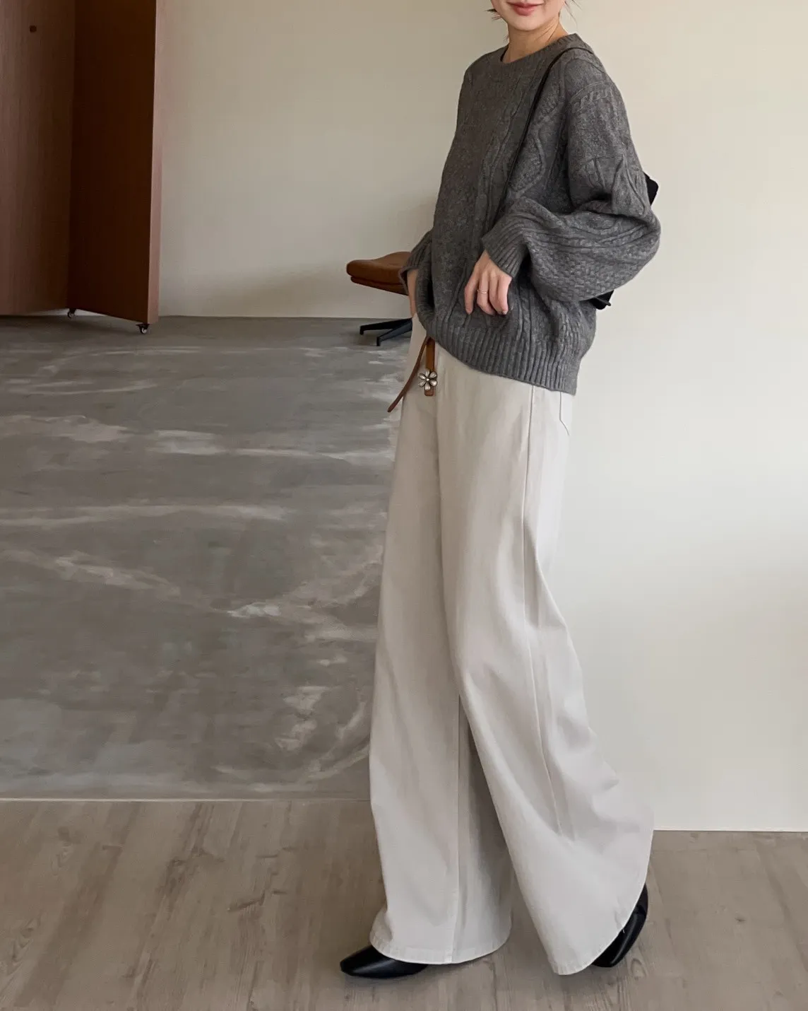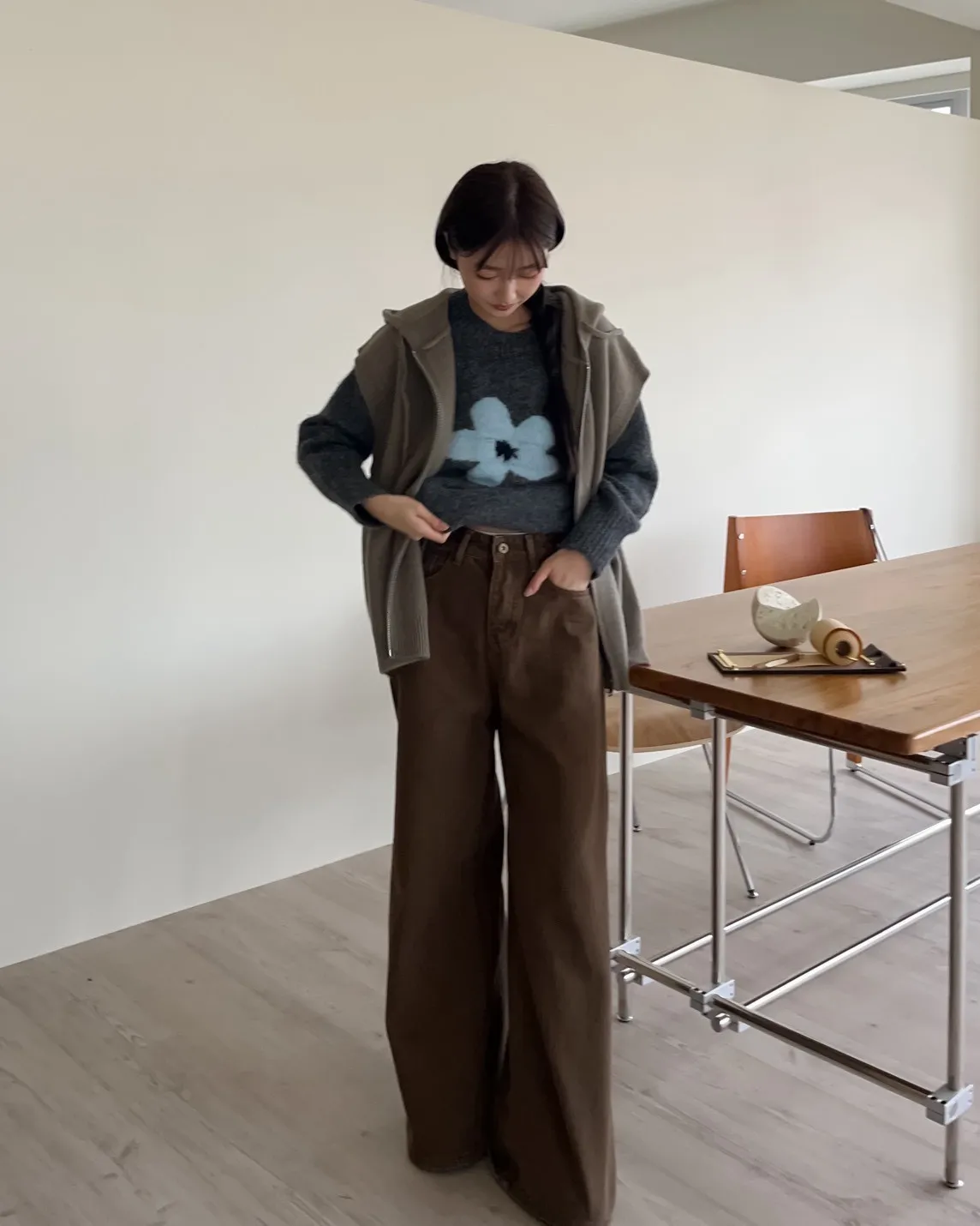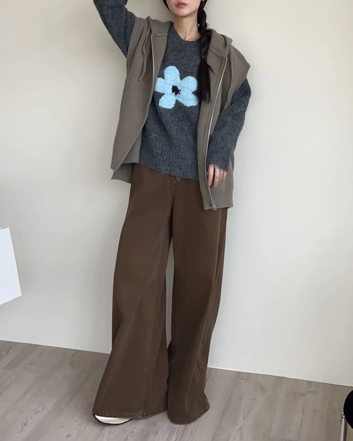 W0017奶咖色系水洗寬管落地長褲(杏/咖啡)