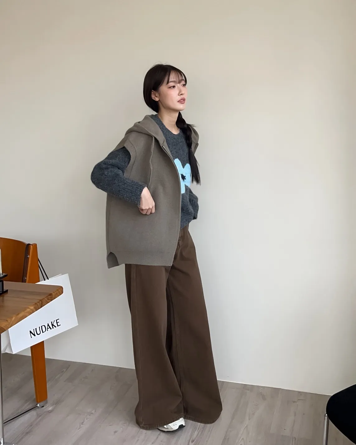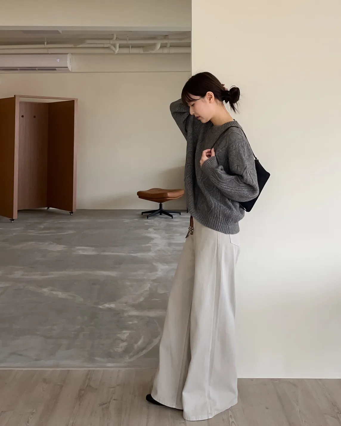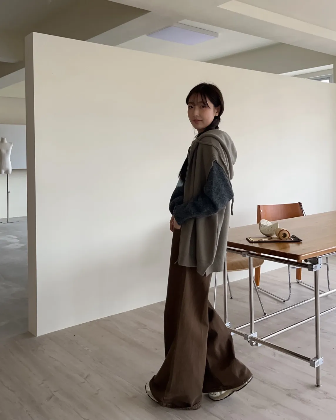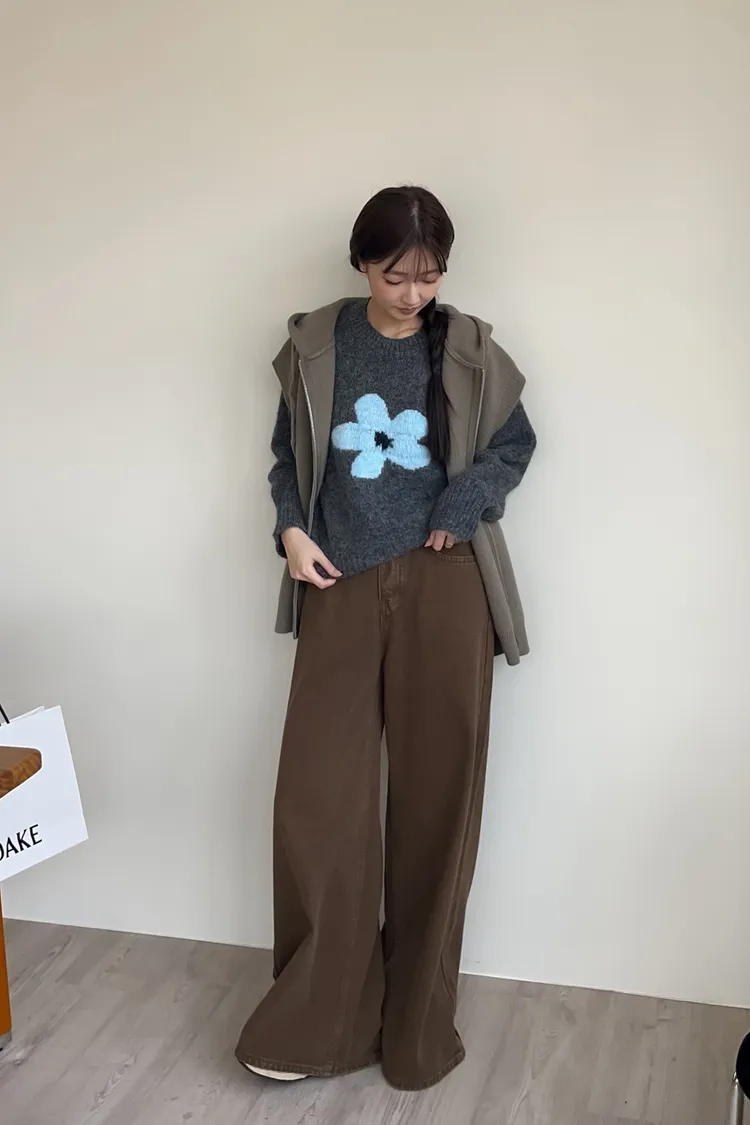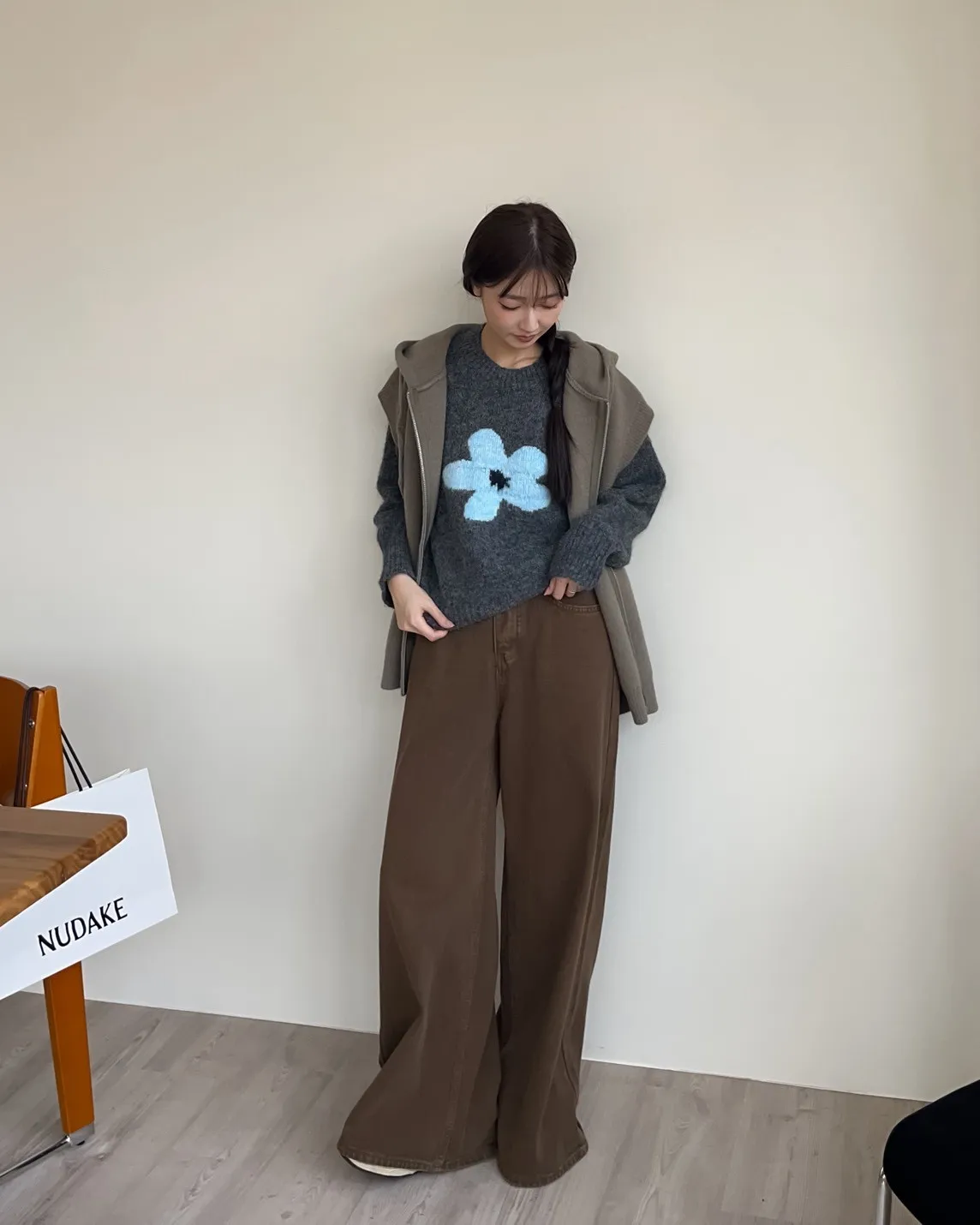 W0017奶咖色系水洗寬管落地長褲(杏/咖啡)