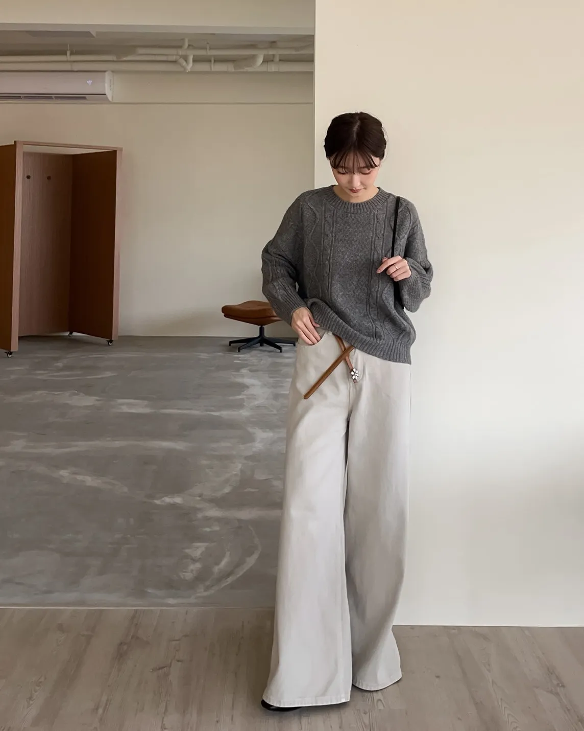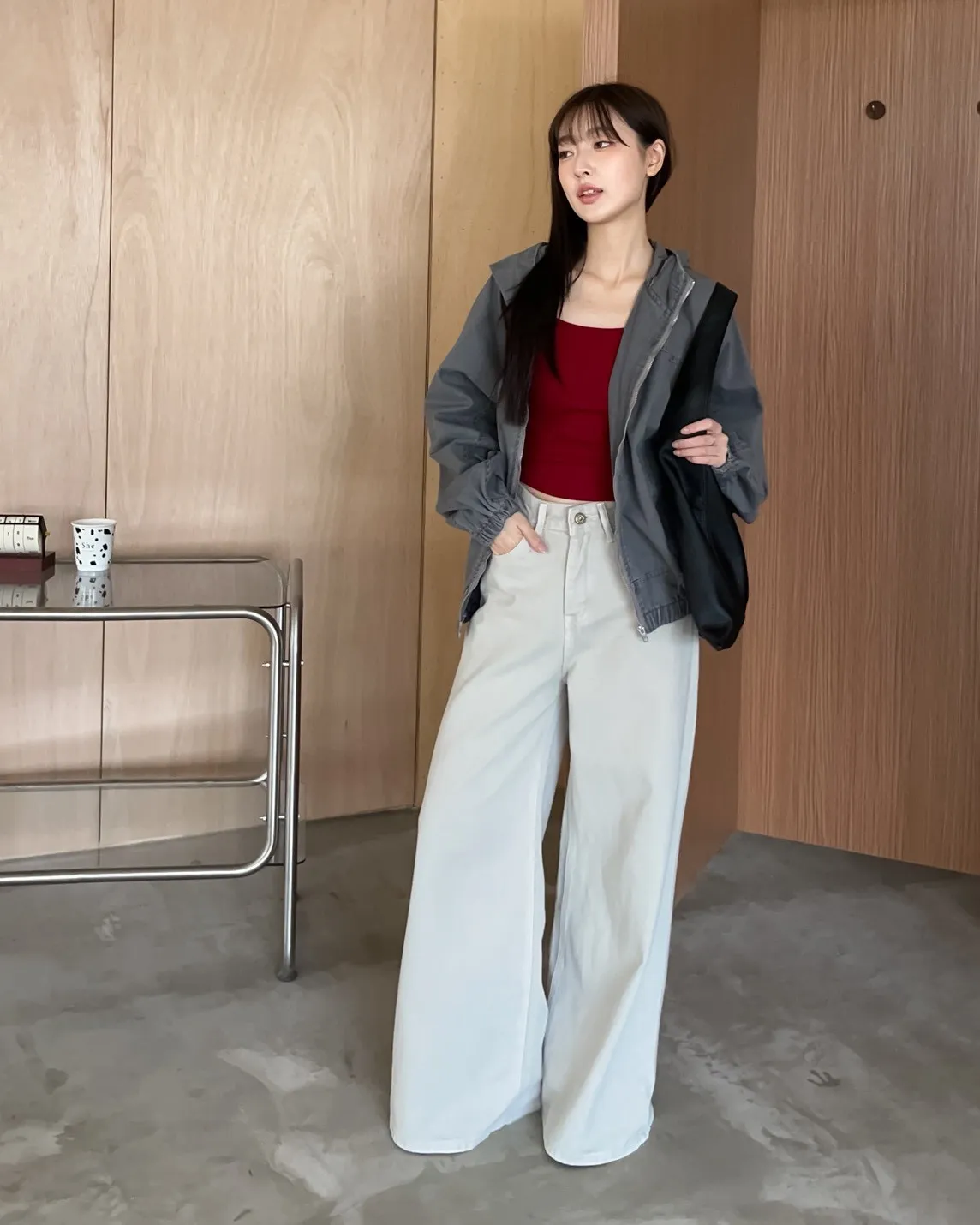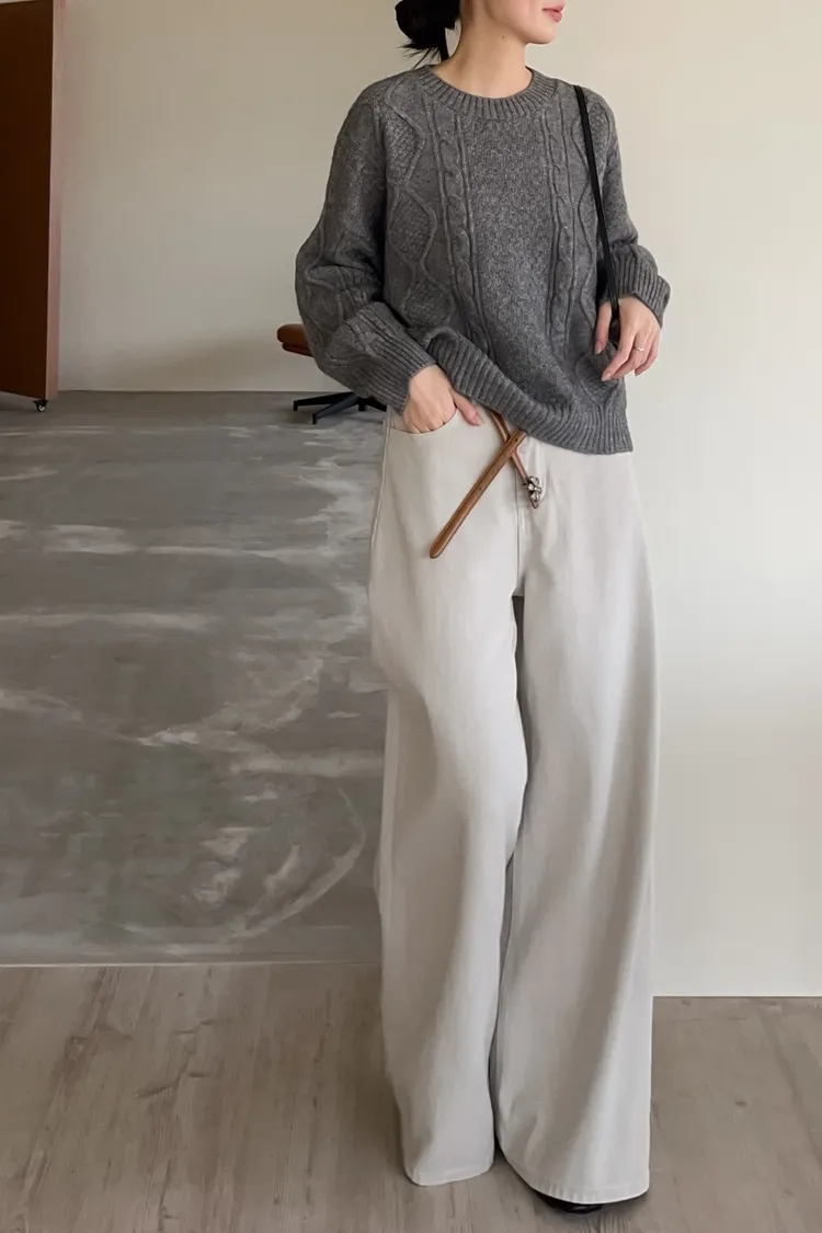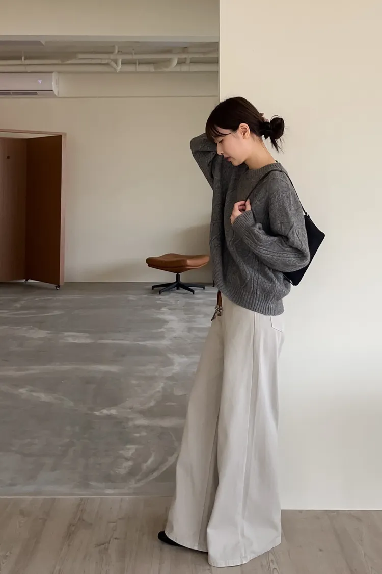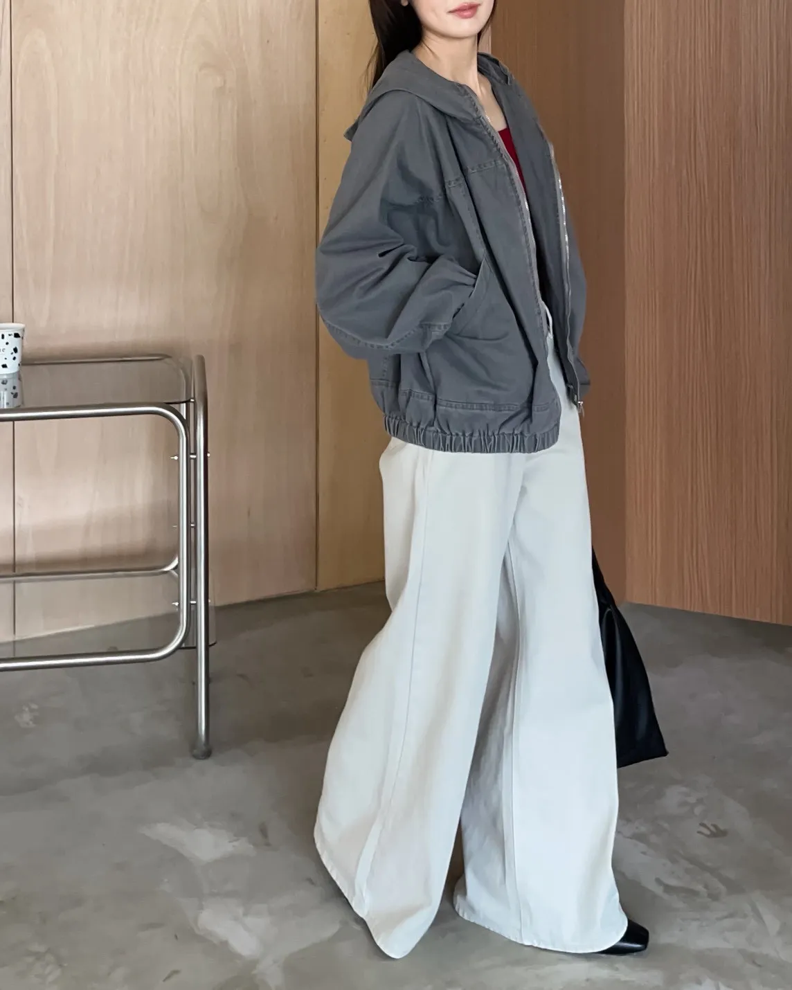 W0017奶咖色系水洗寬管落地長褲(杏/咖啡)