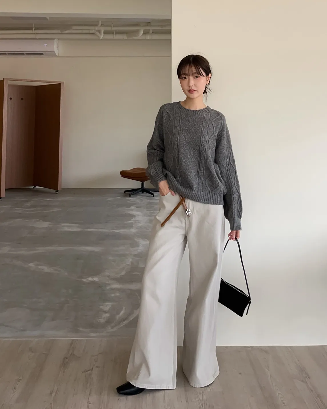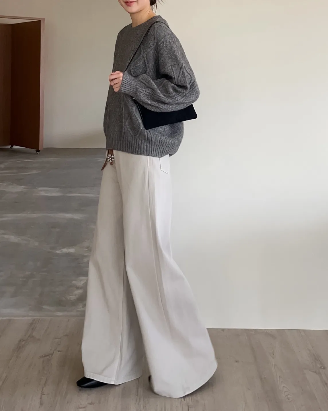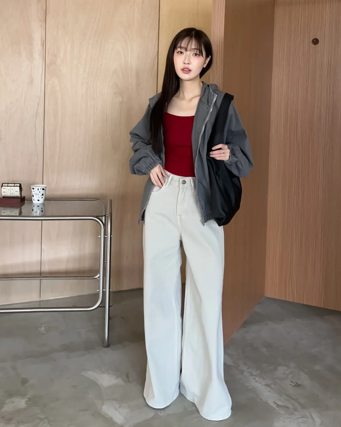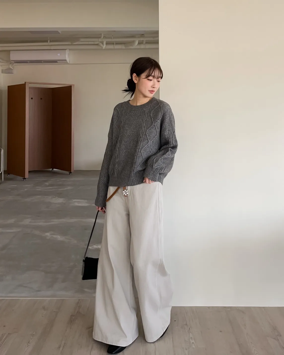W0017奶咖色系水洗寬管落地長褲(杏/咖啡)