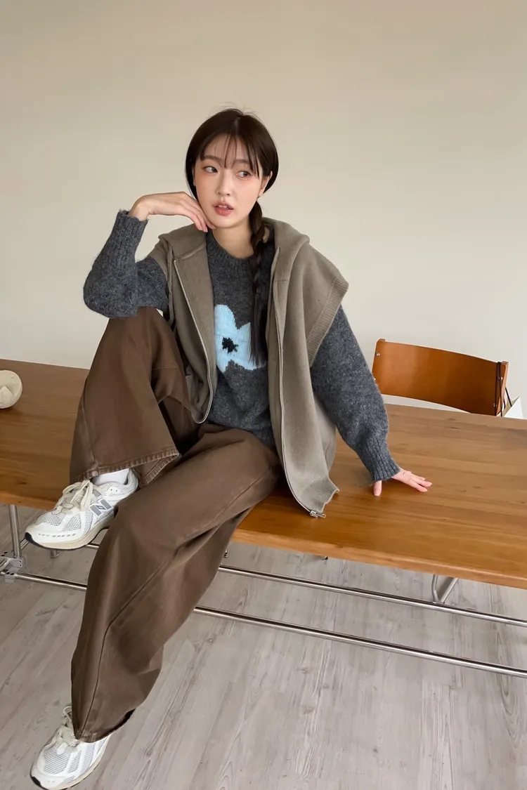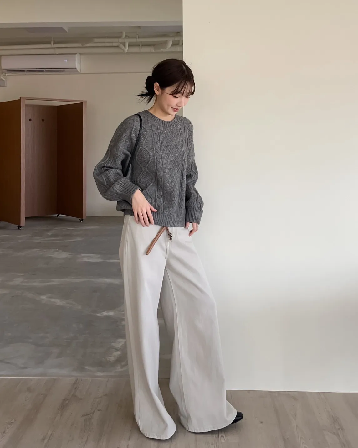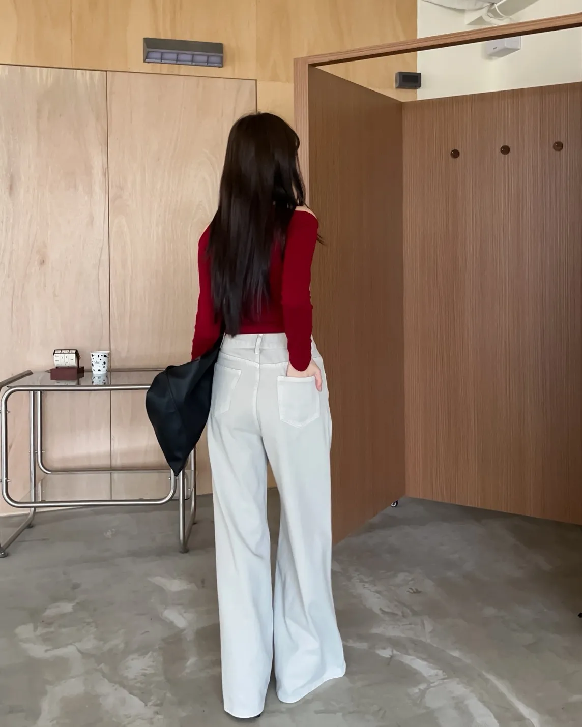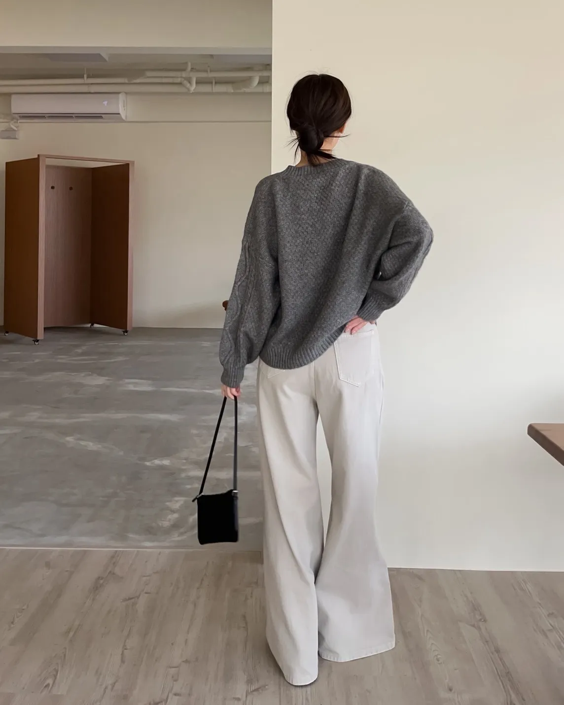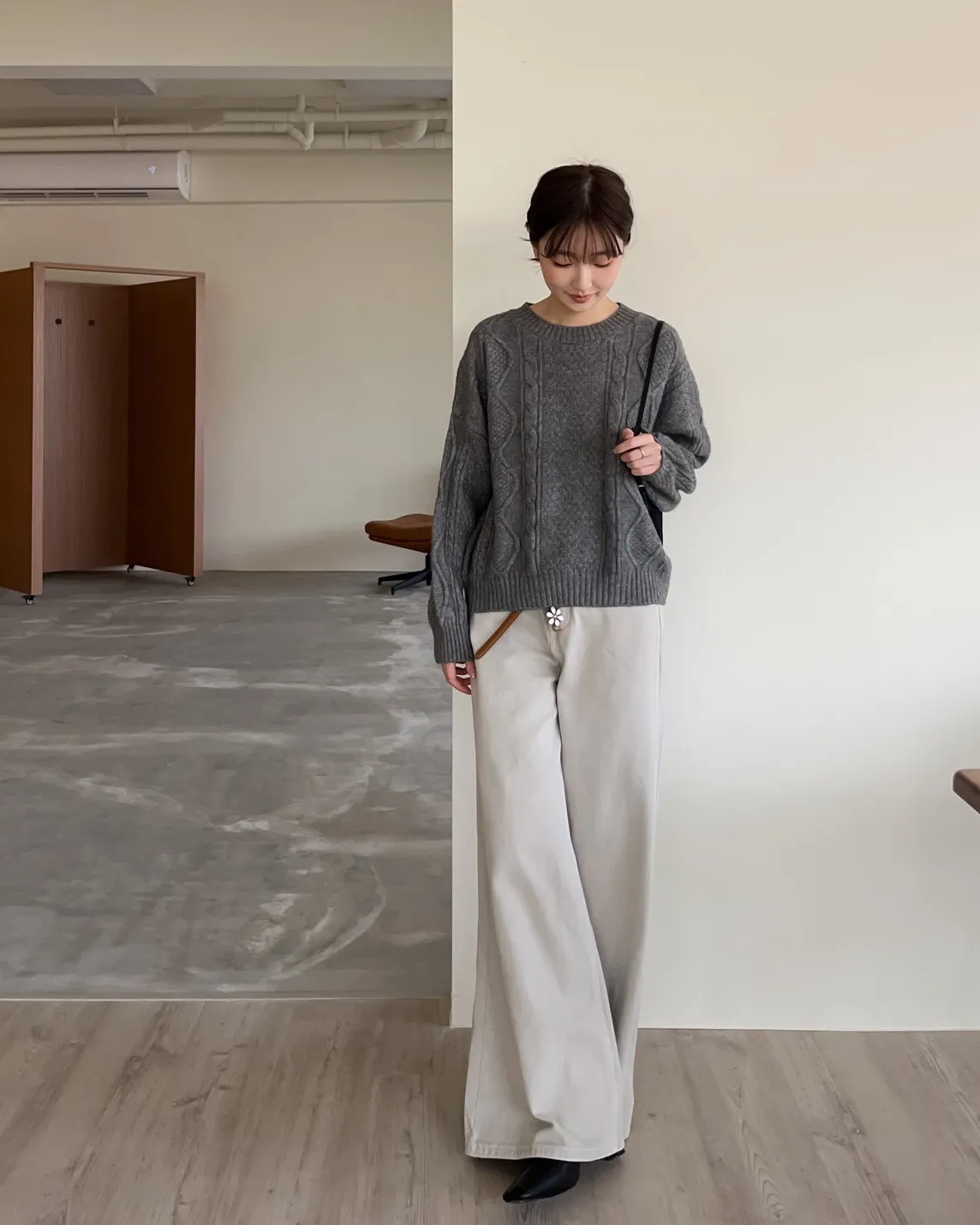 W0017奶咖色系水洗寬管落地長褲(杏/咖啡)