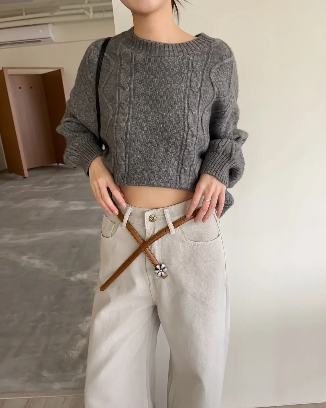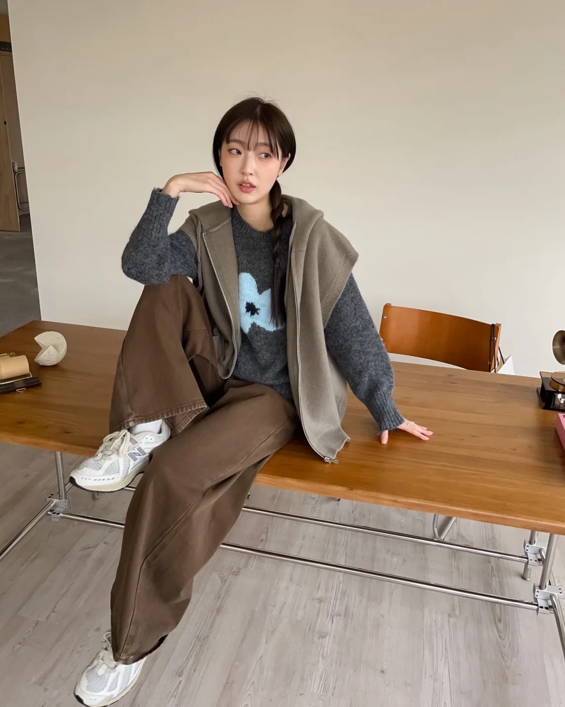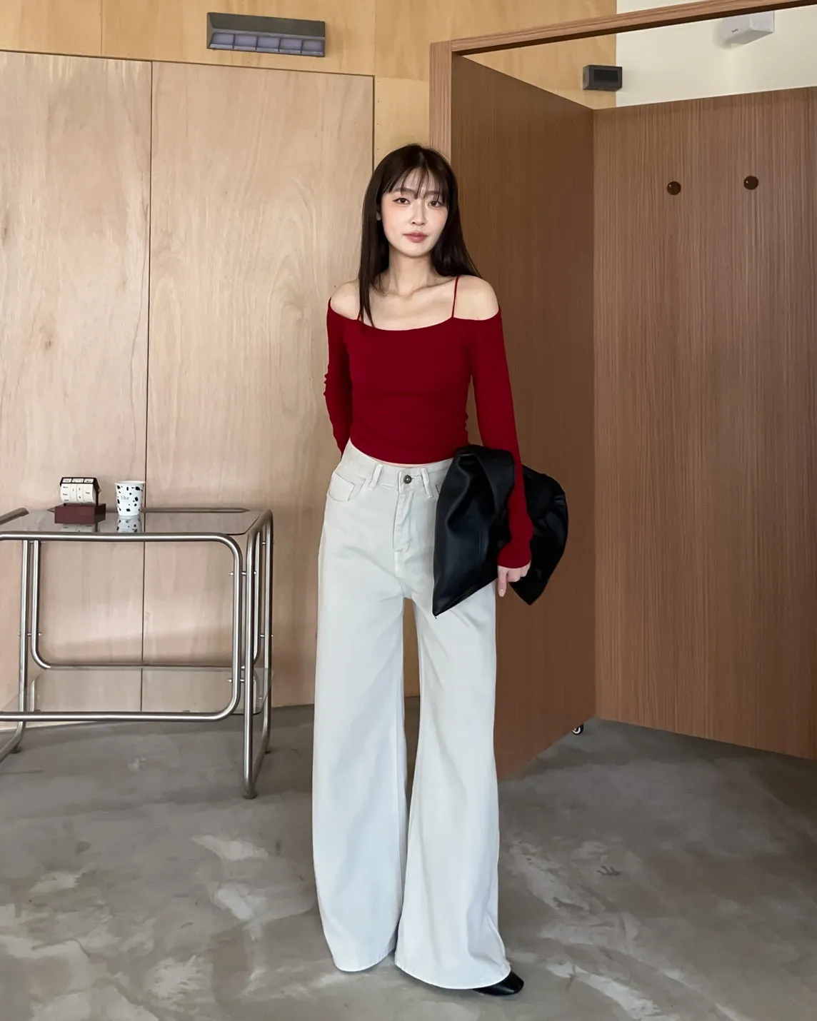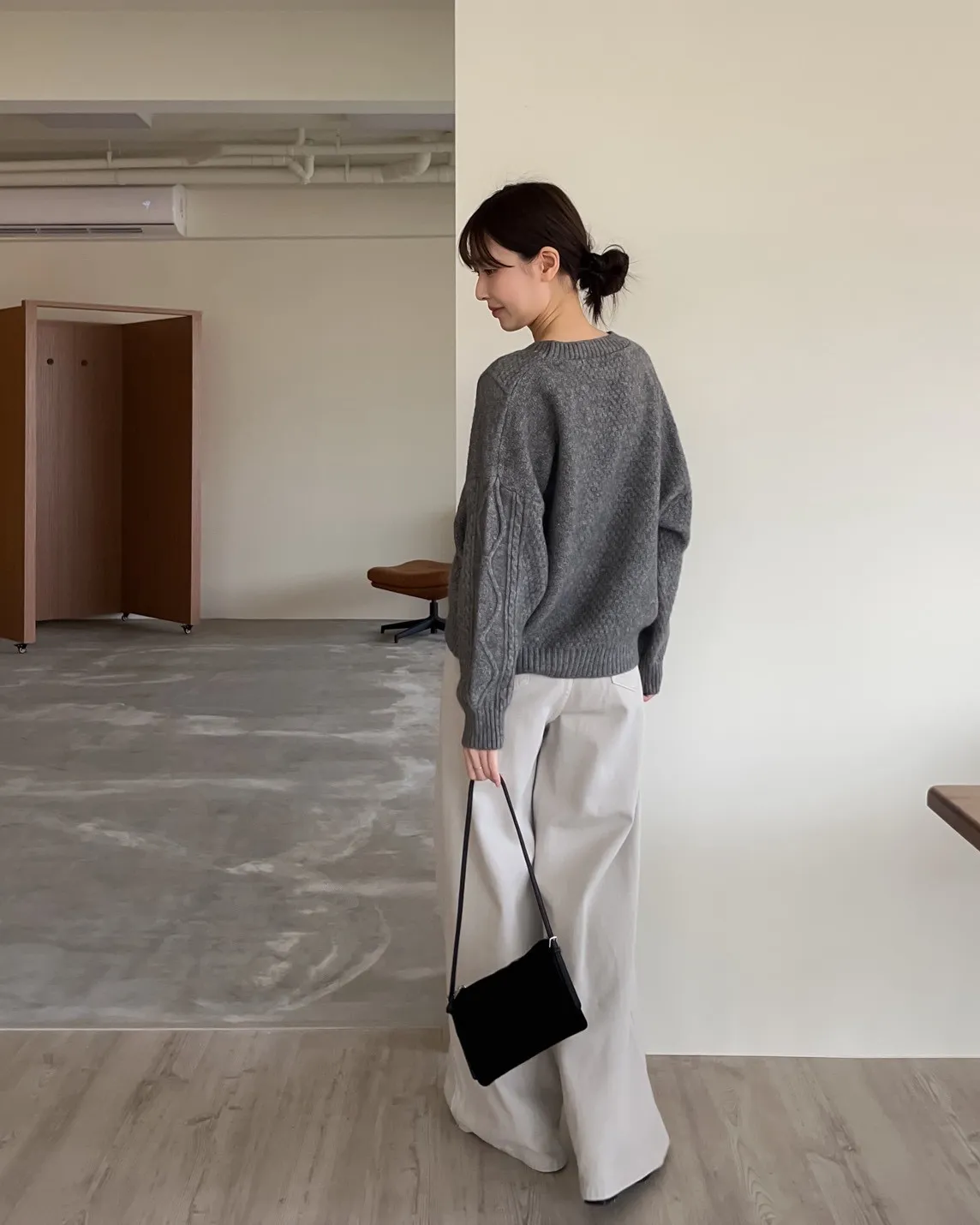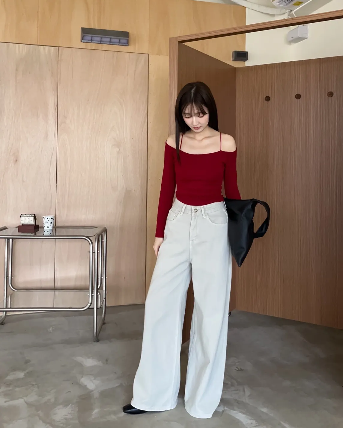 W0017奶咖色系水洗寬管落地長褲(杏/咖啡)