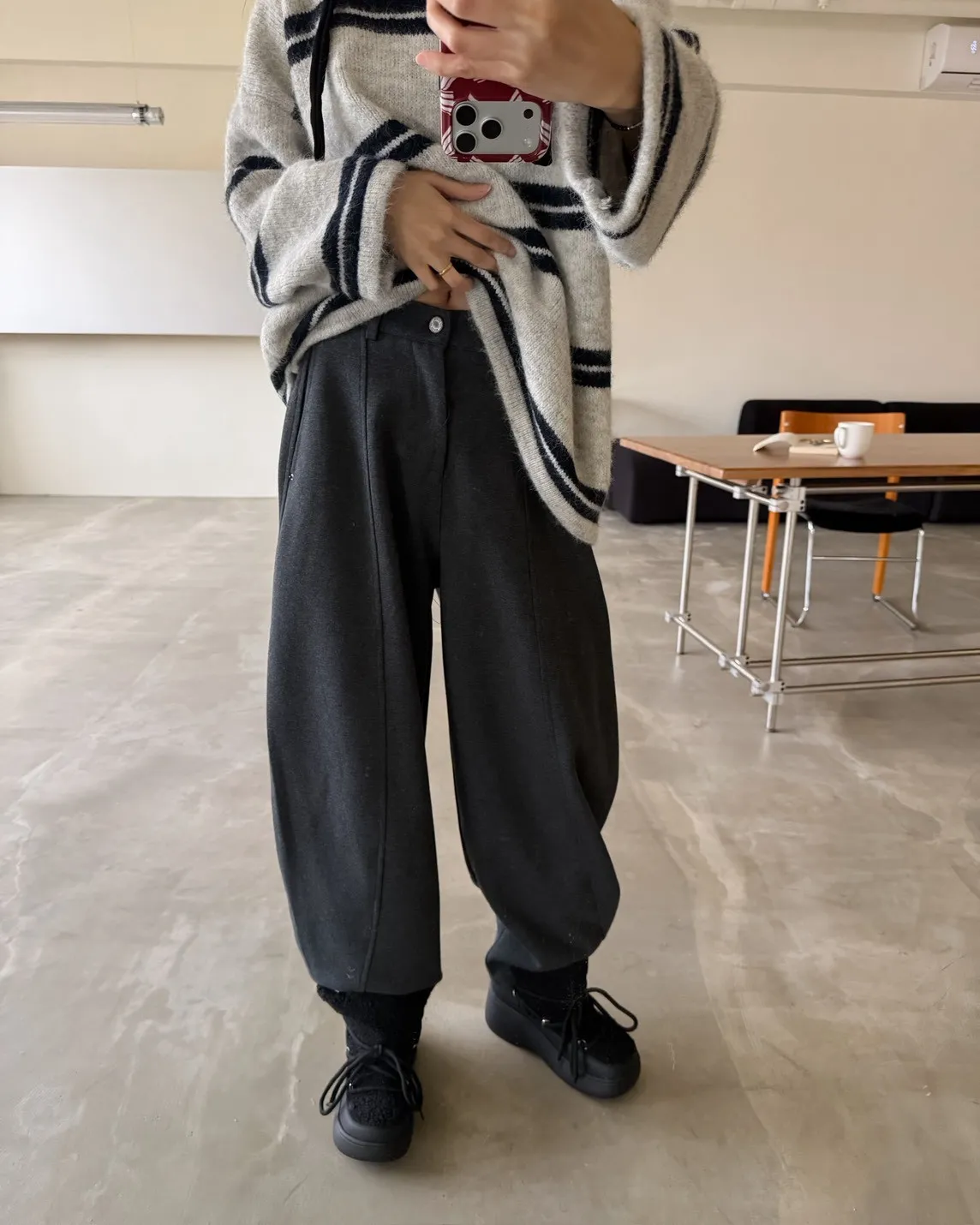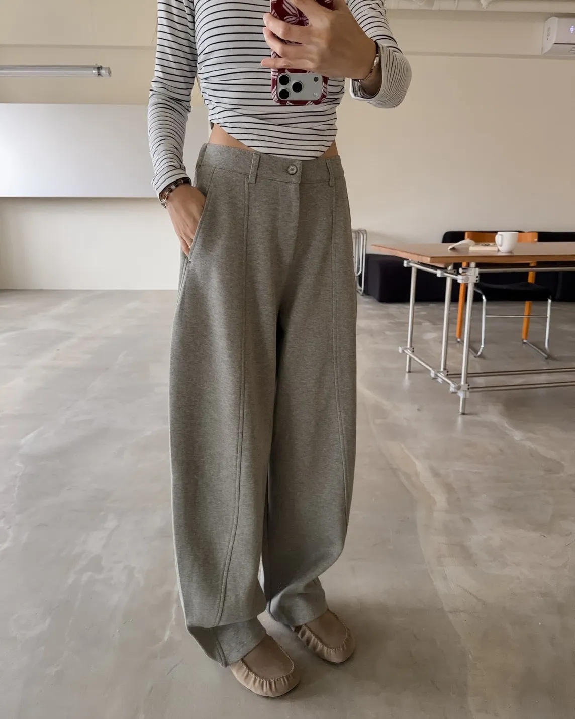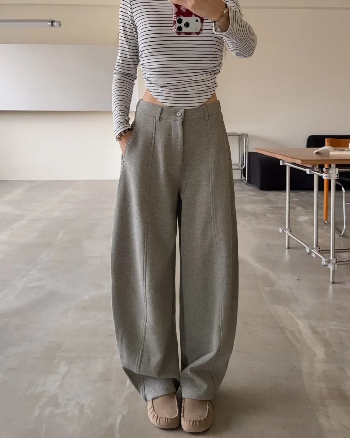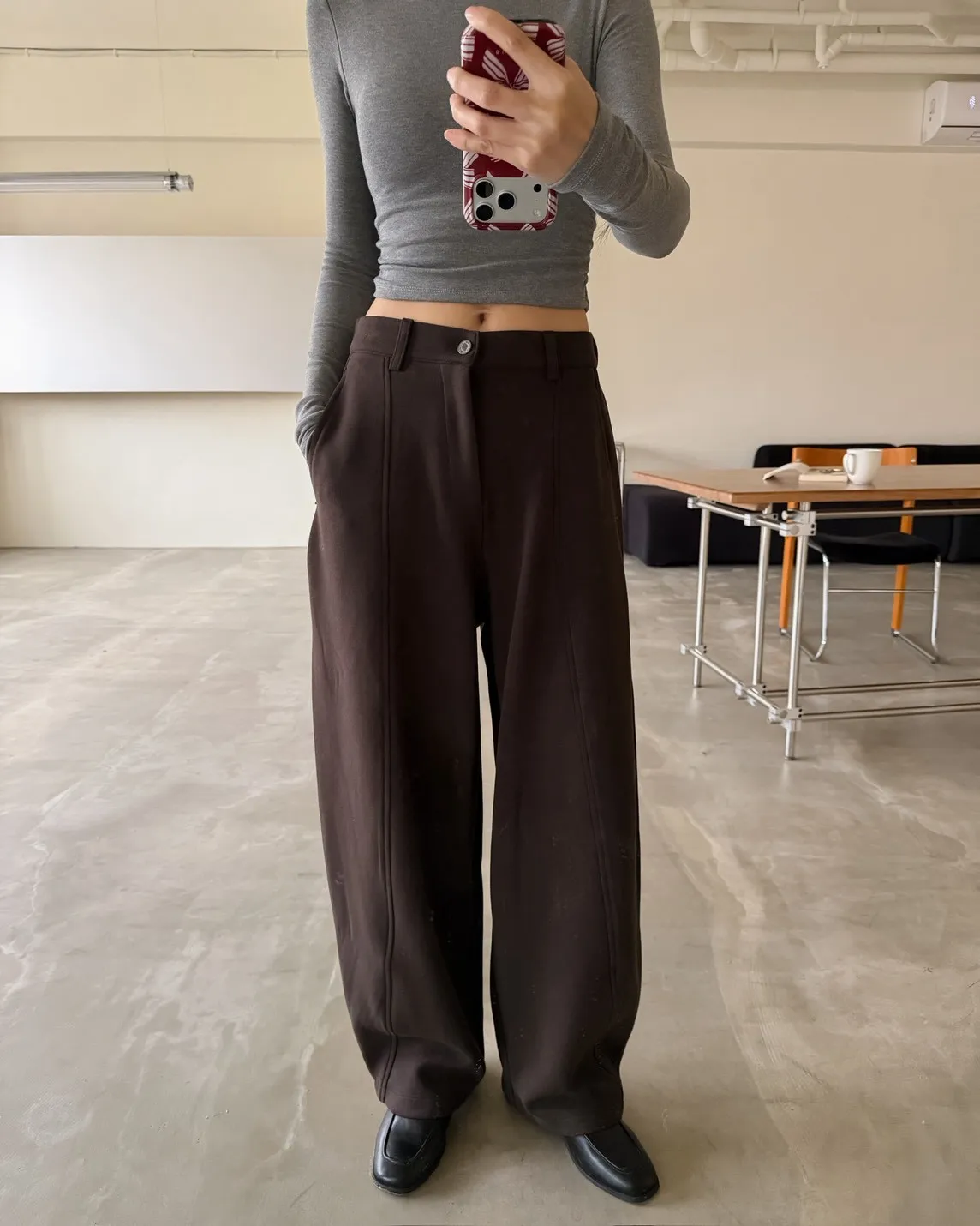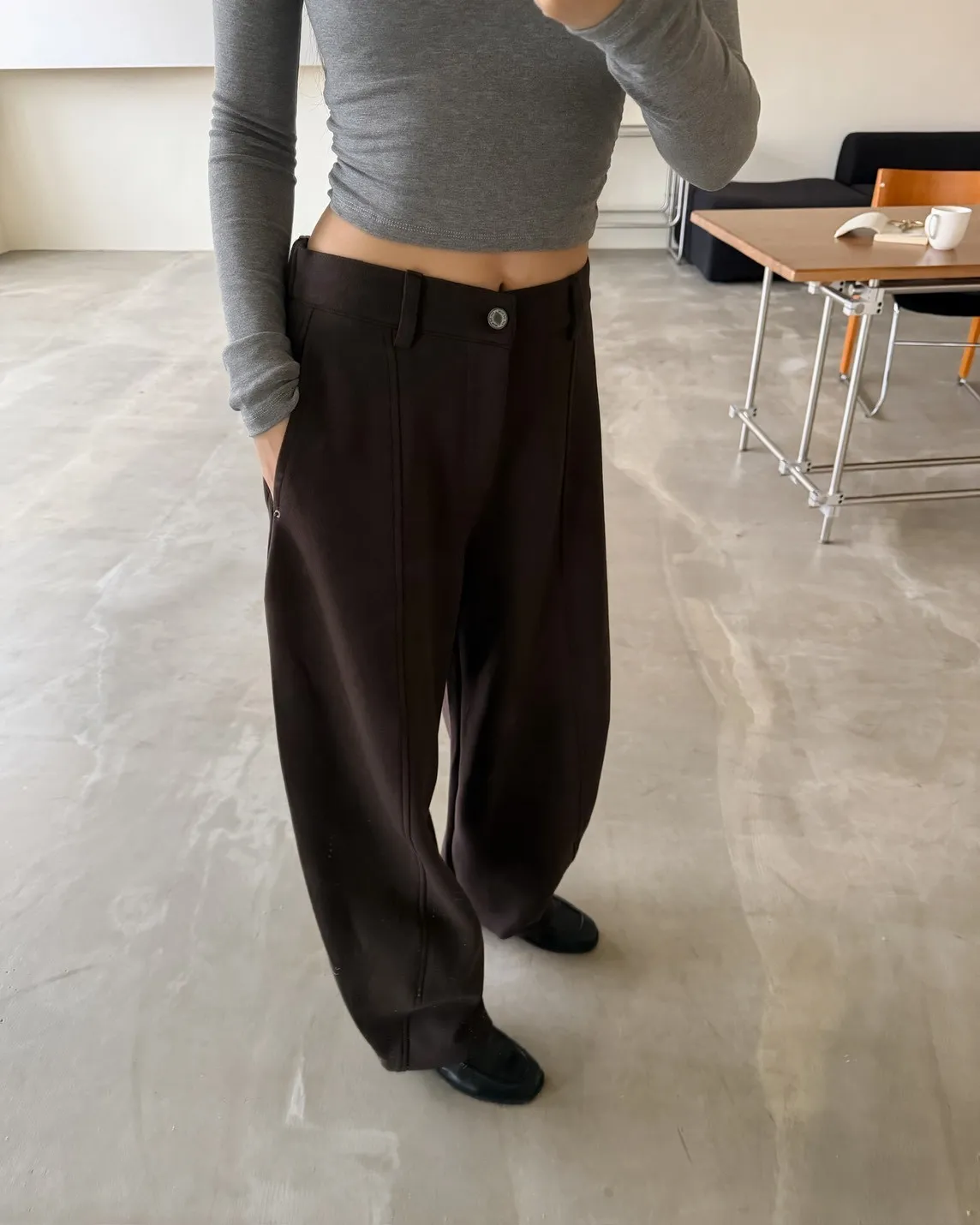 後鬆緊 建議尺寸S-小L 版型很好看的彎刀褲 兩側口袋 鐵扣 微厚度棉料