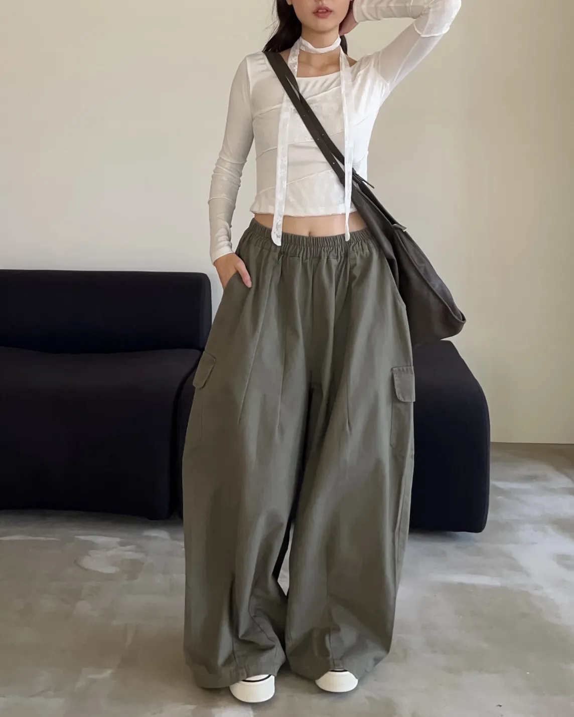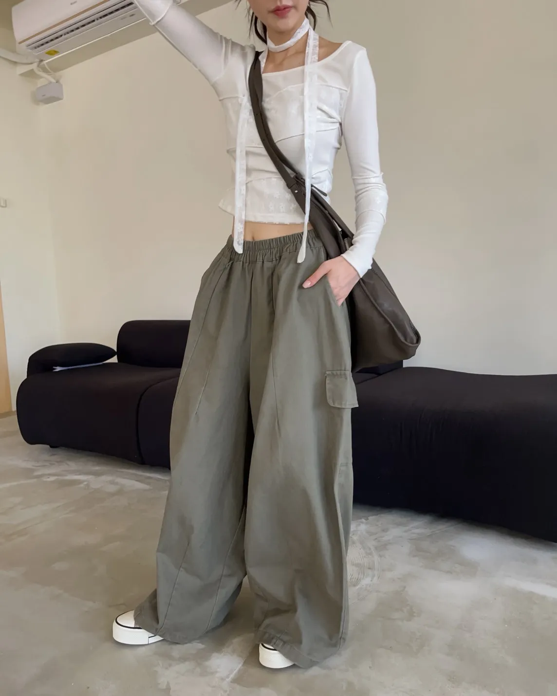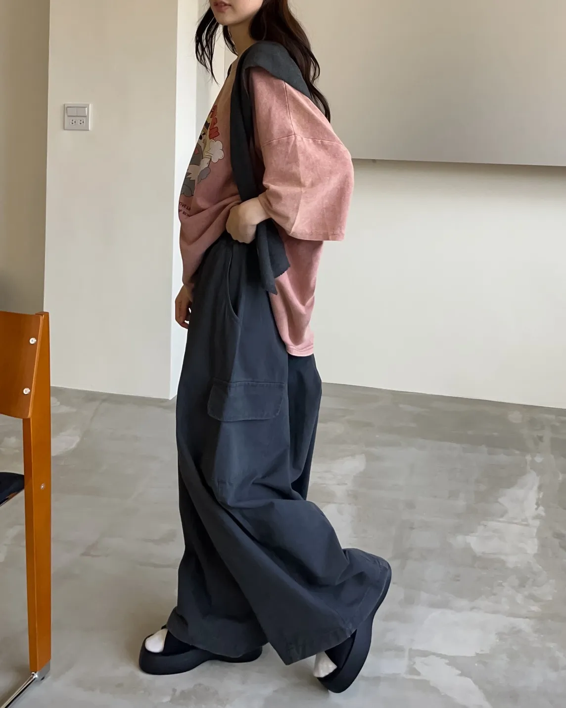 全鬆緊 建議尺寸S-XL 兩側口袋 兩邊翻蓋口袋 壓線造型 褲腳內縮微繭型 很寬很挺 布料本身無彈性