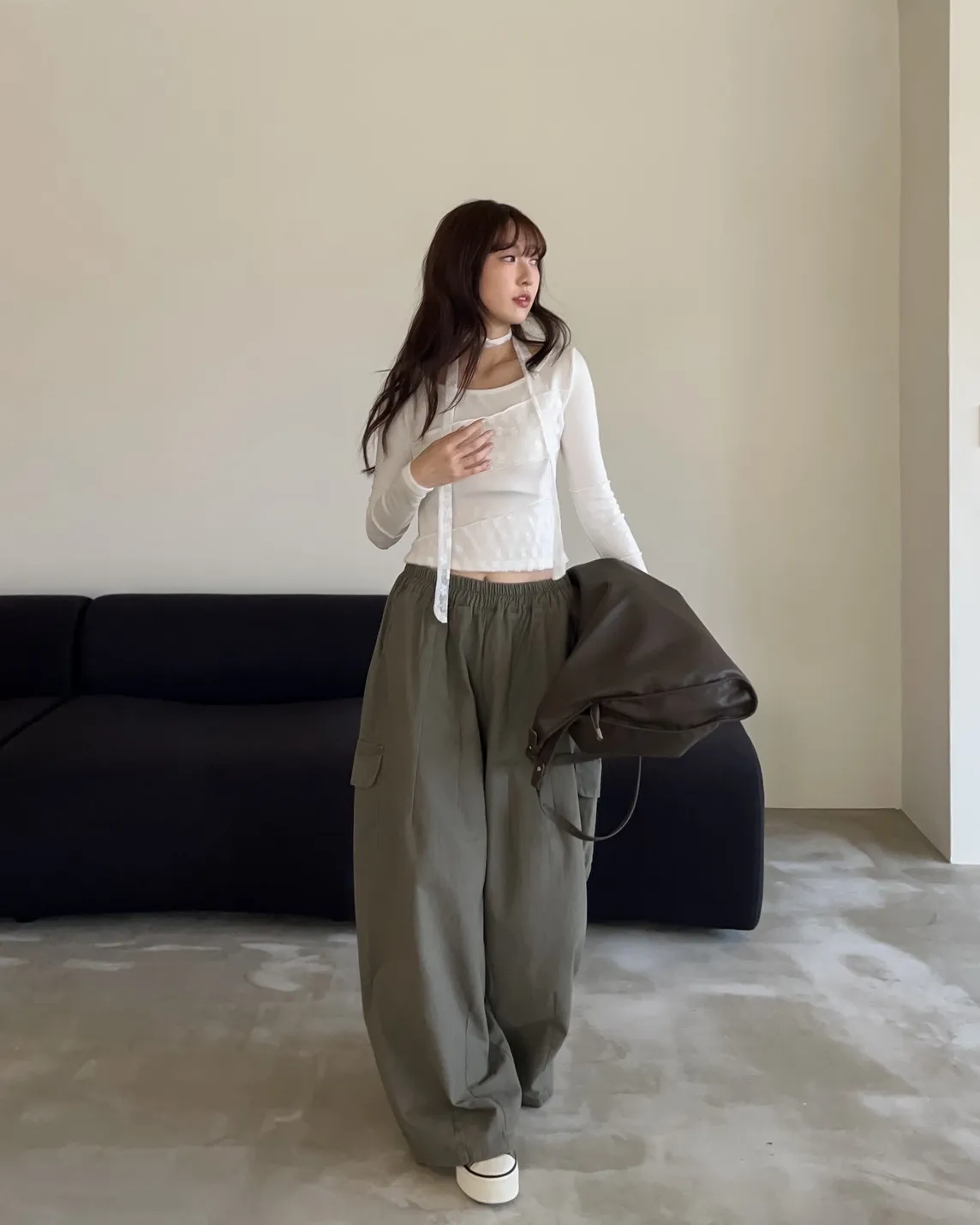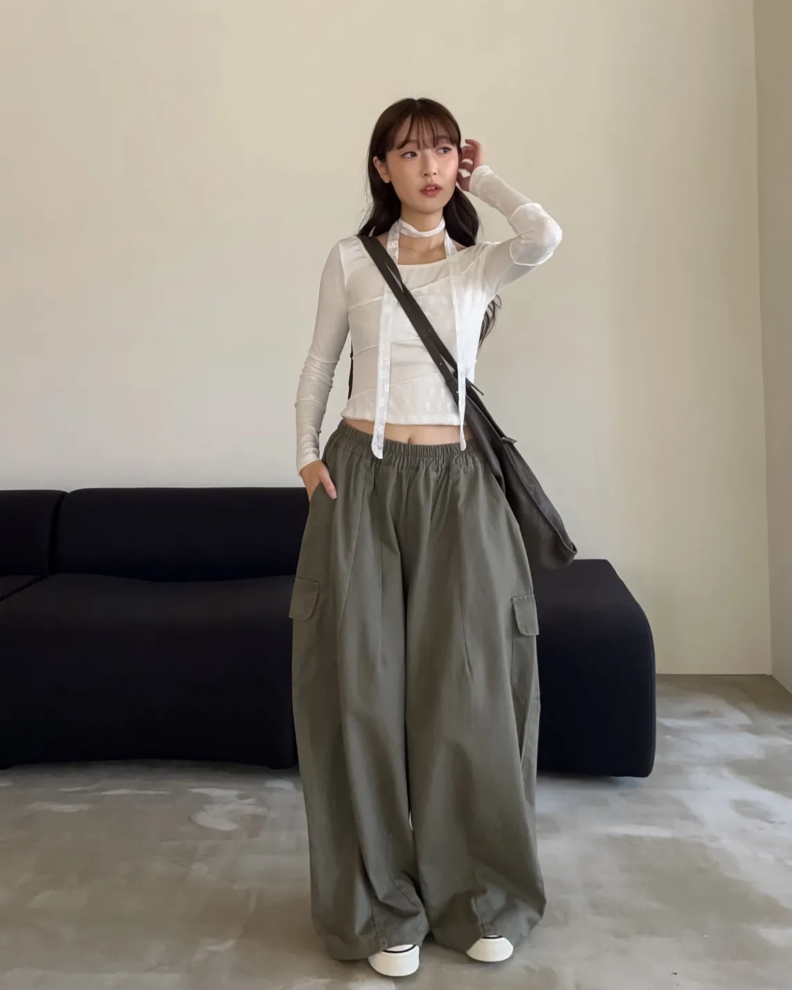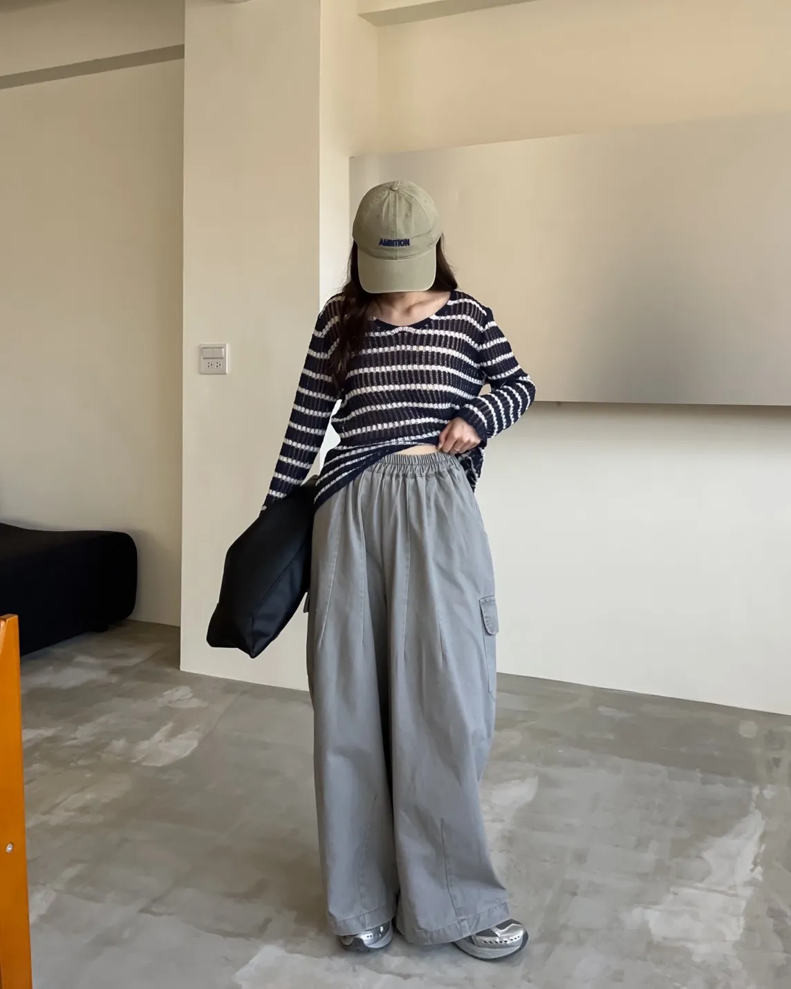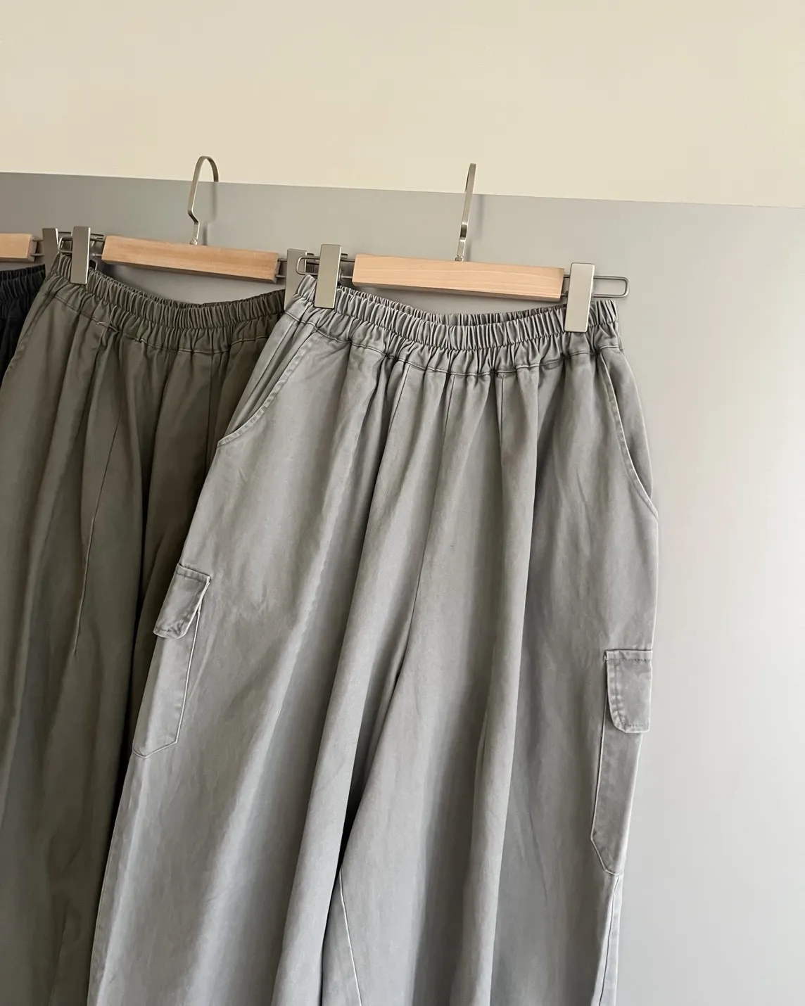 V0028夠寬夠挺!!車線繭型褲(綠/淺灰/深灰)
