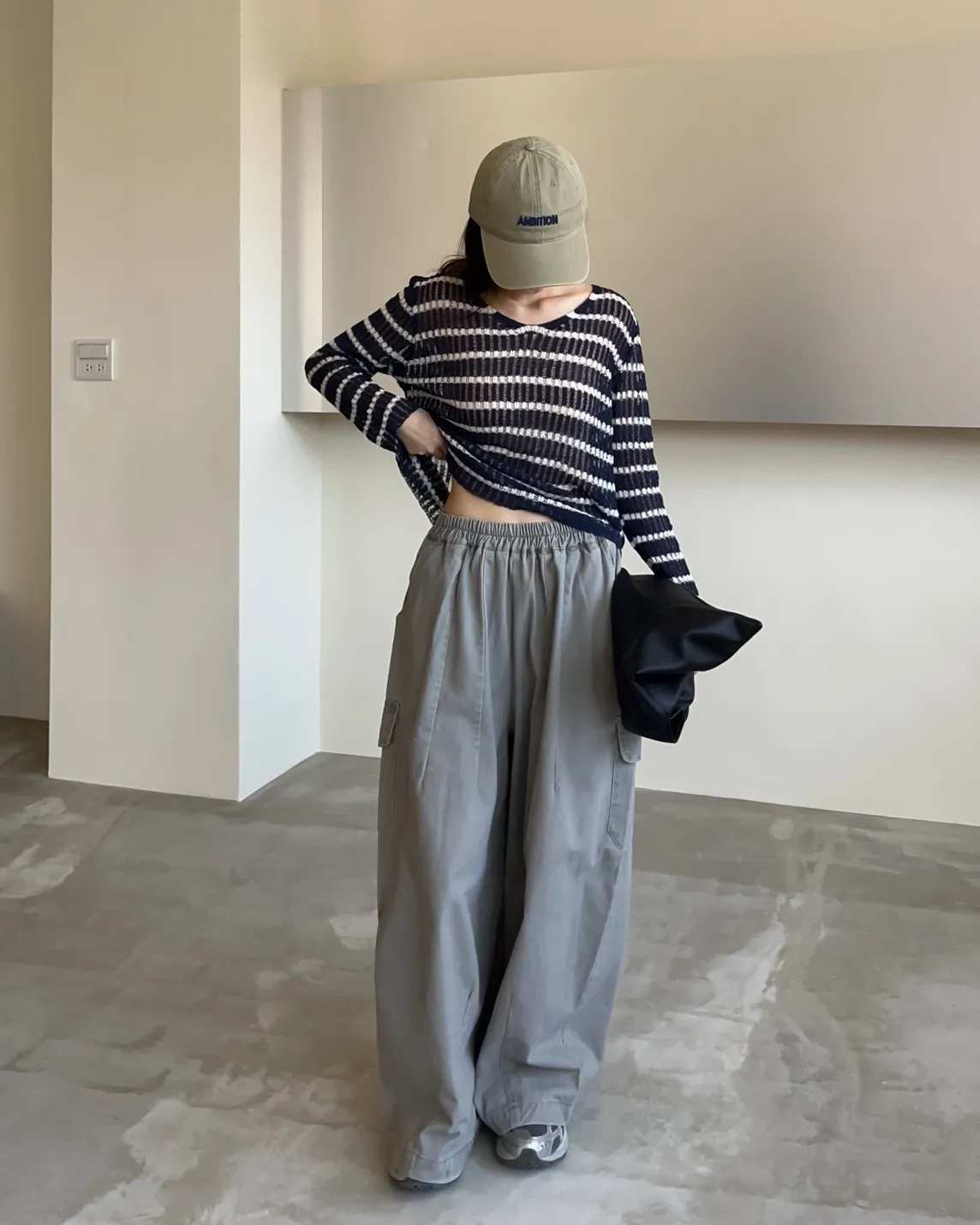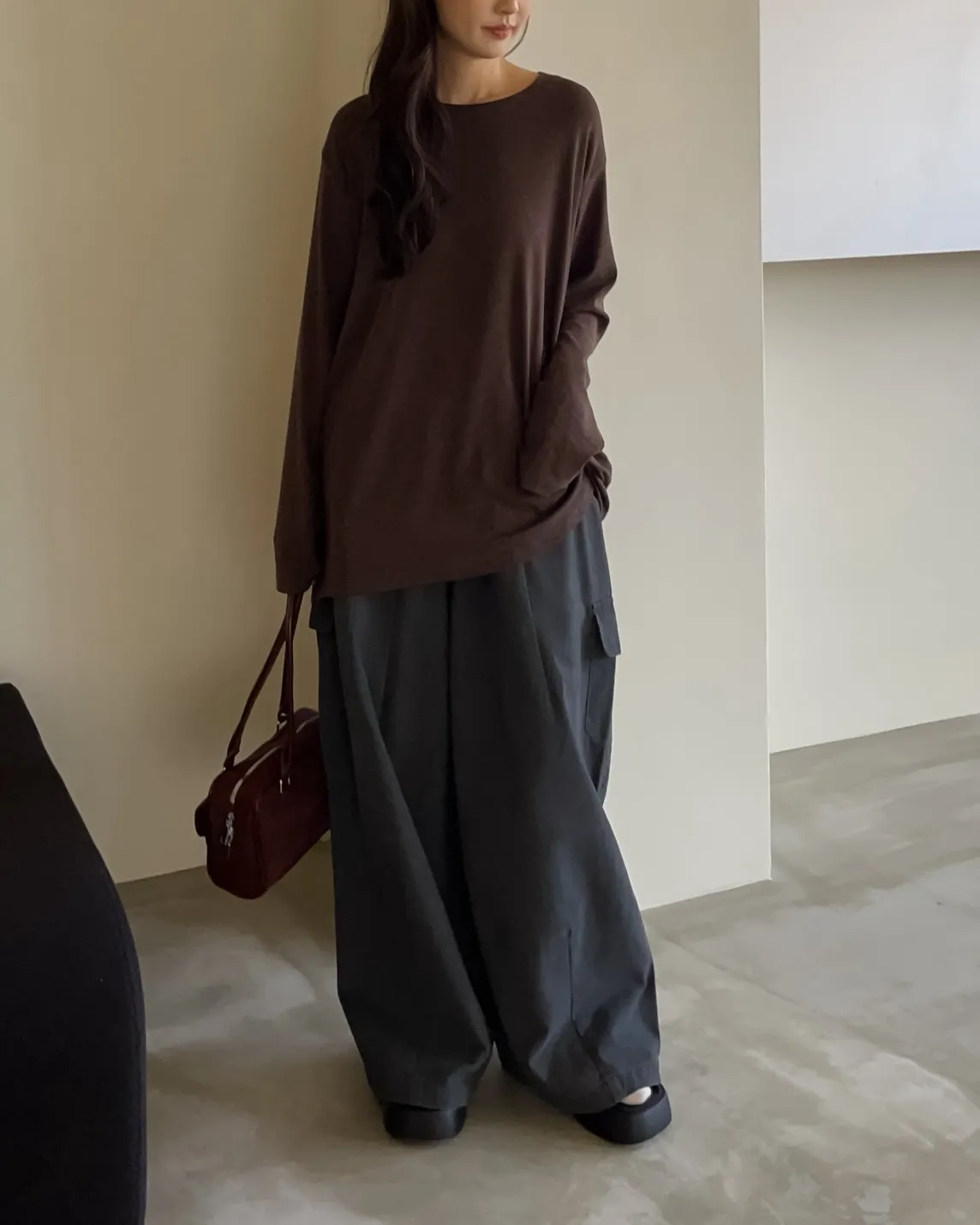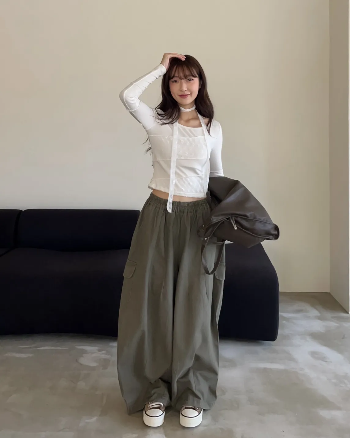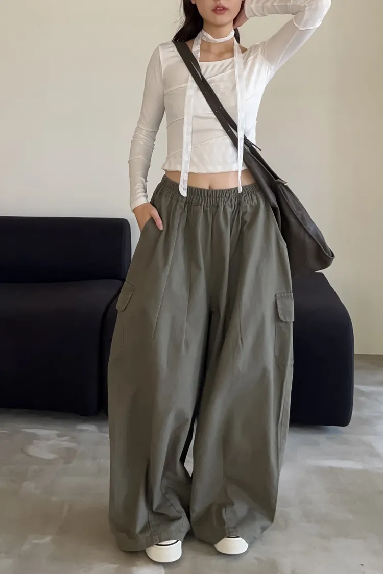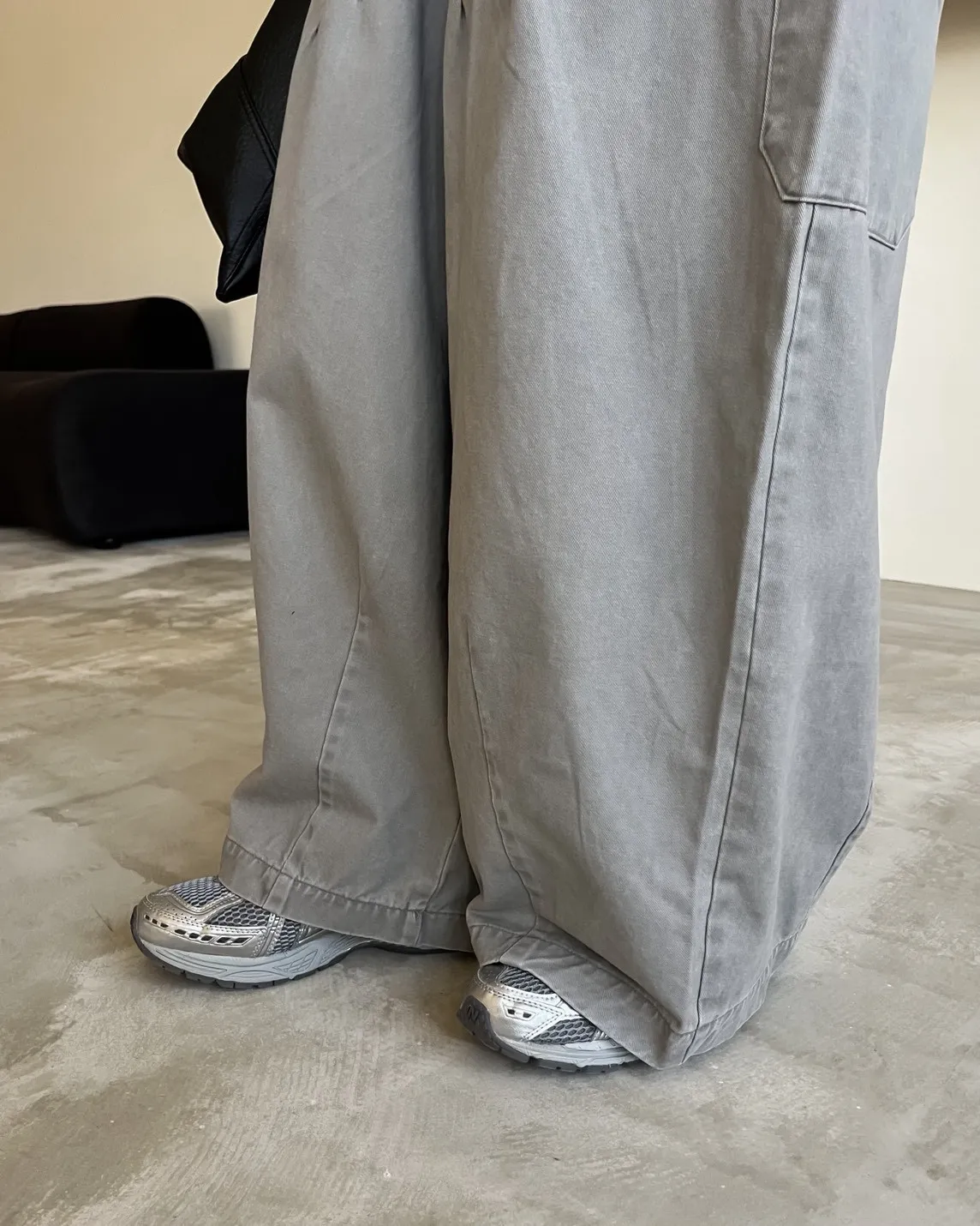 V0028夠寬夠挺!!車線繭型褲(綠/淺灰/深灰)