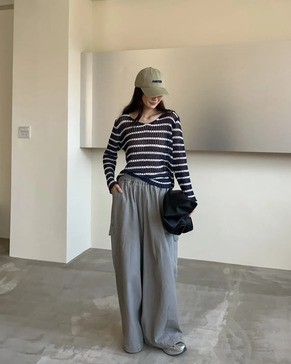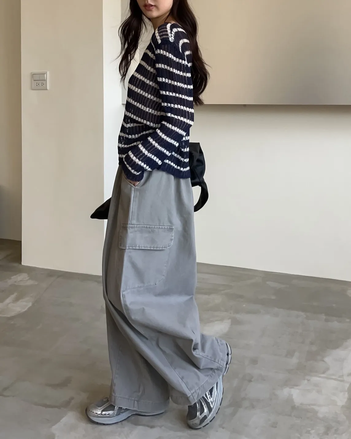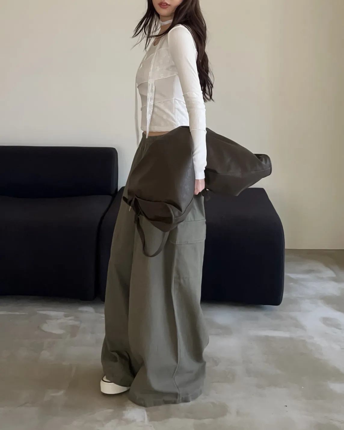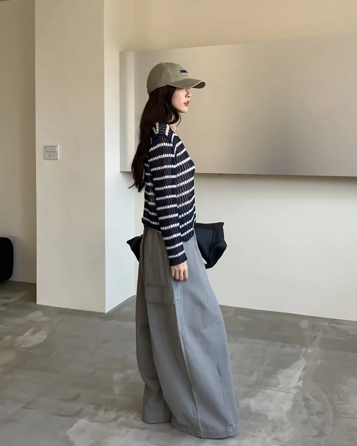 V0028夠寬夠挺!!車線繭型褲(綠/淺灰/深灰)