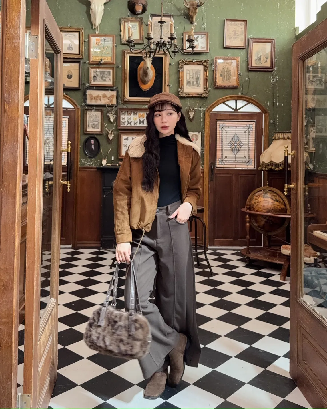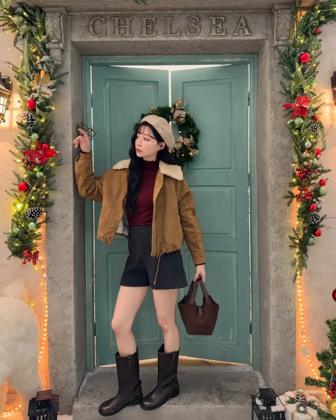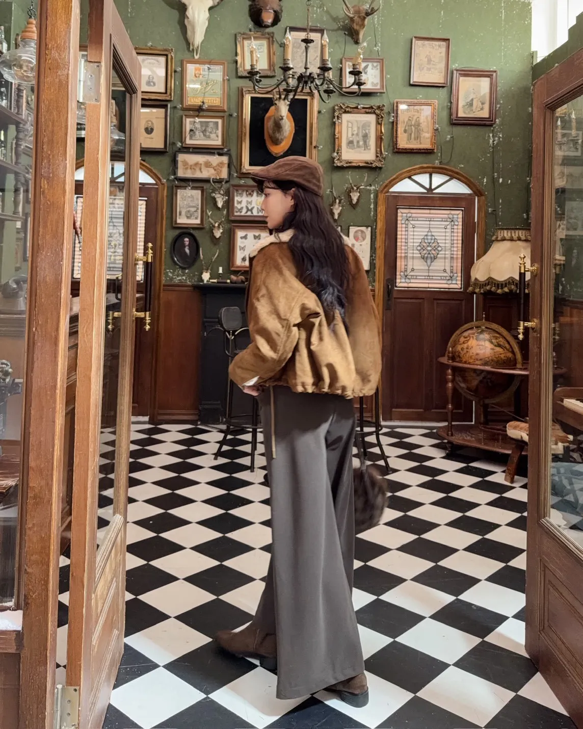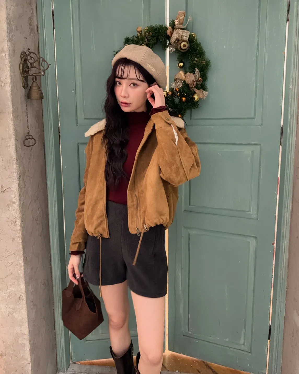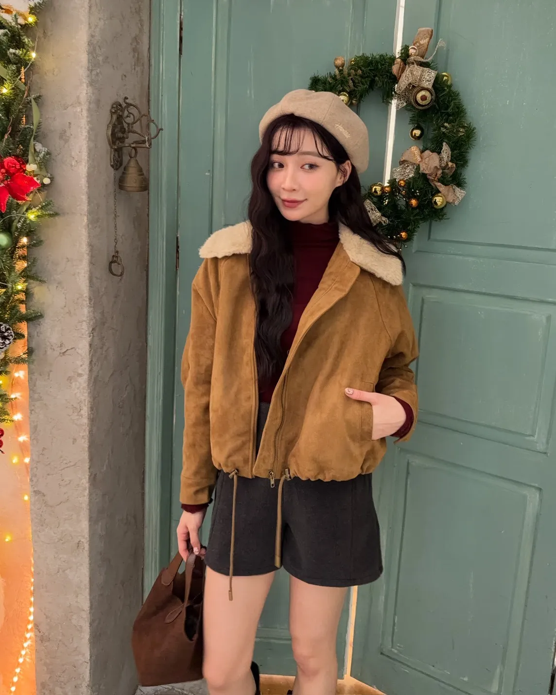 X0054首爾街頭_鋪毛翻領麂皮外套(卡其/咖啡)