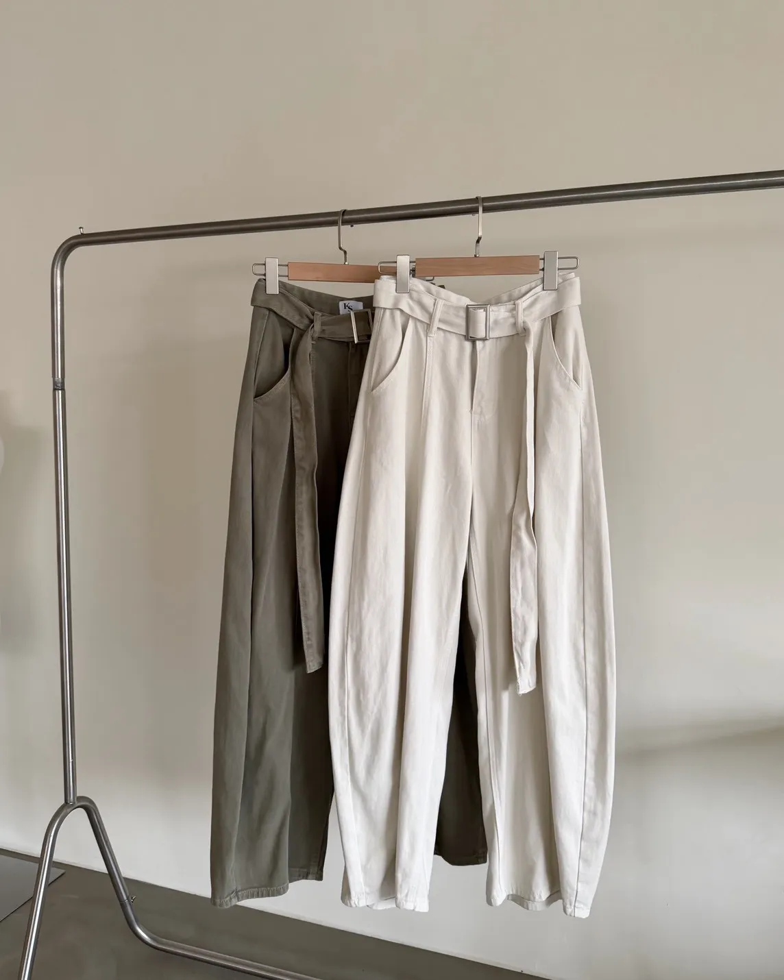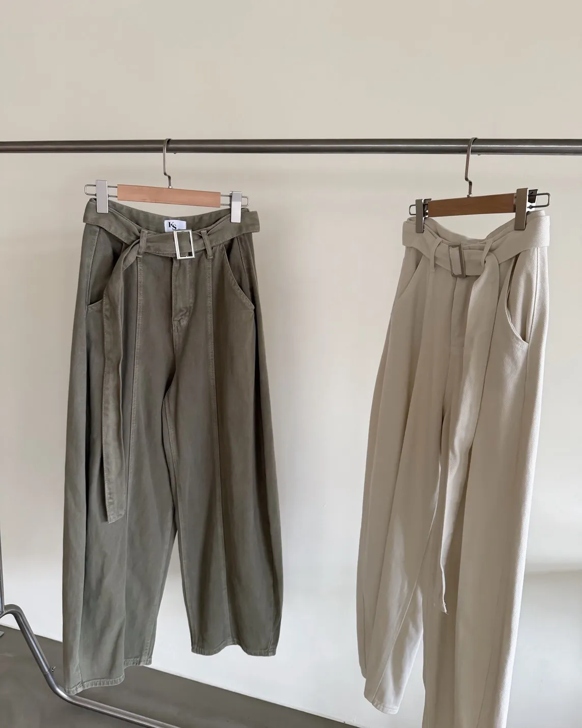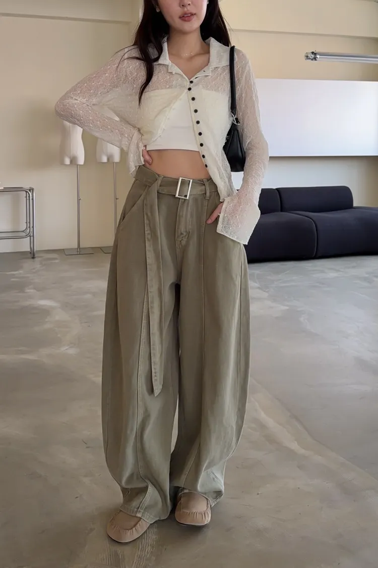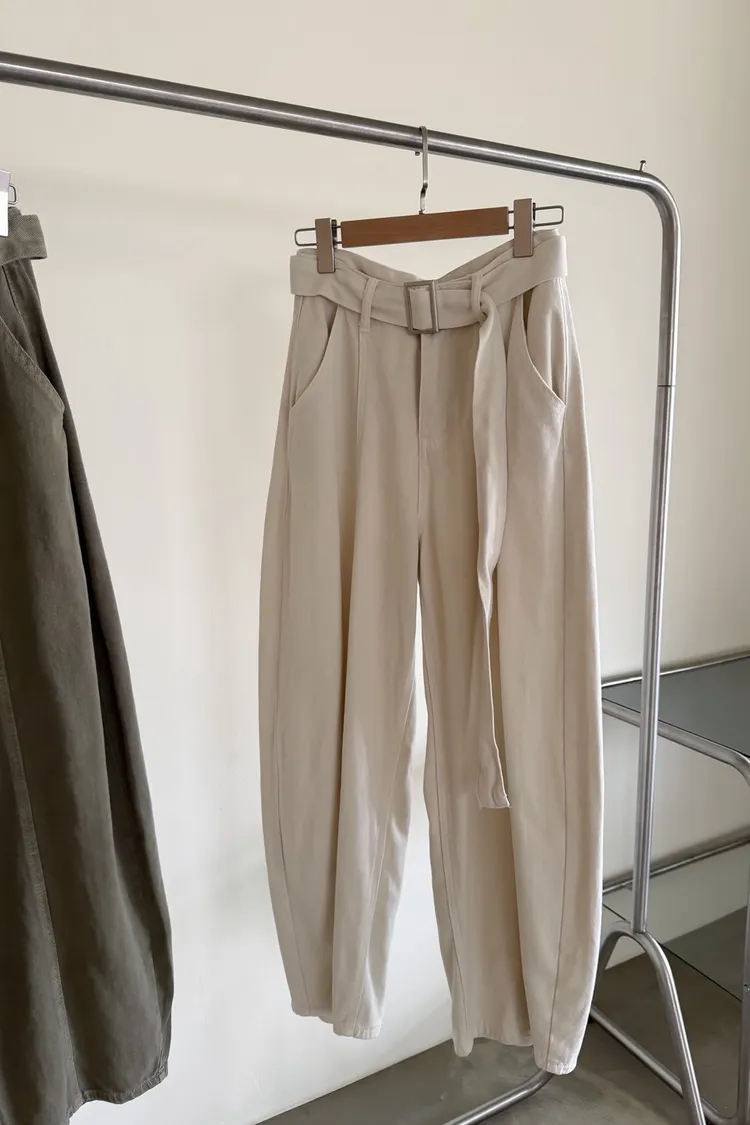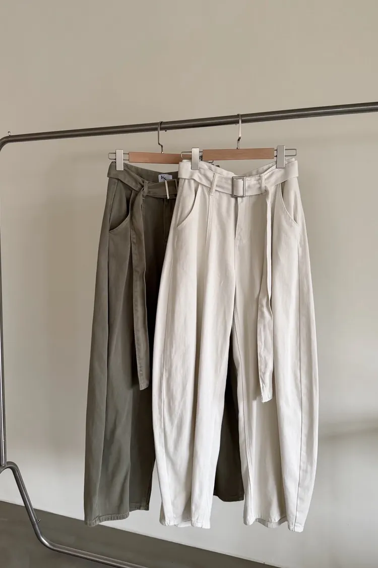 B0054(附繫帶)抹茶牛奶中線繭型褲(杏/綠)