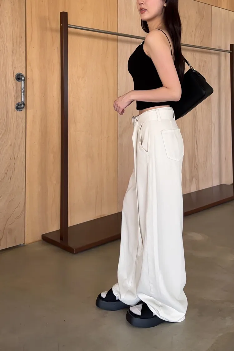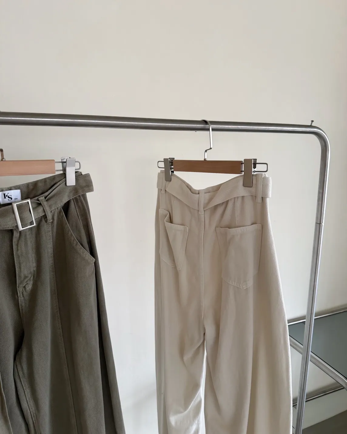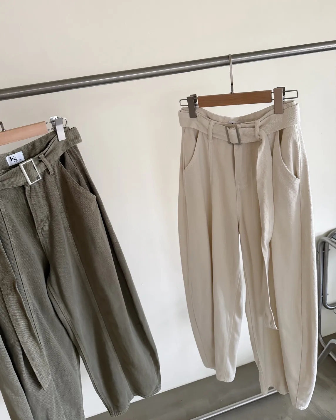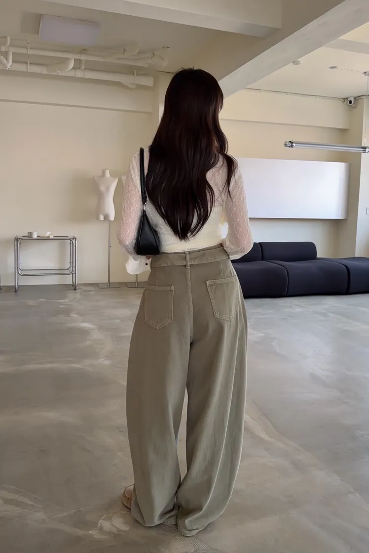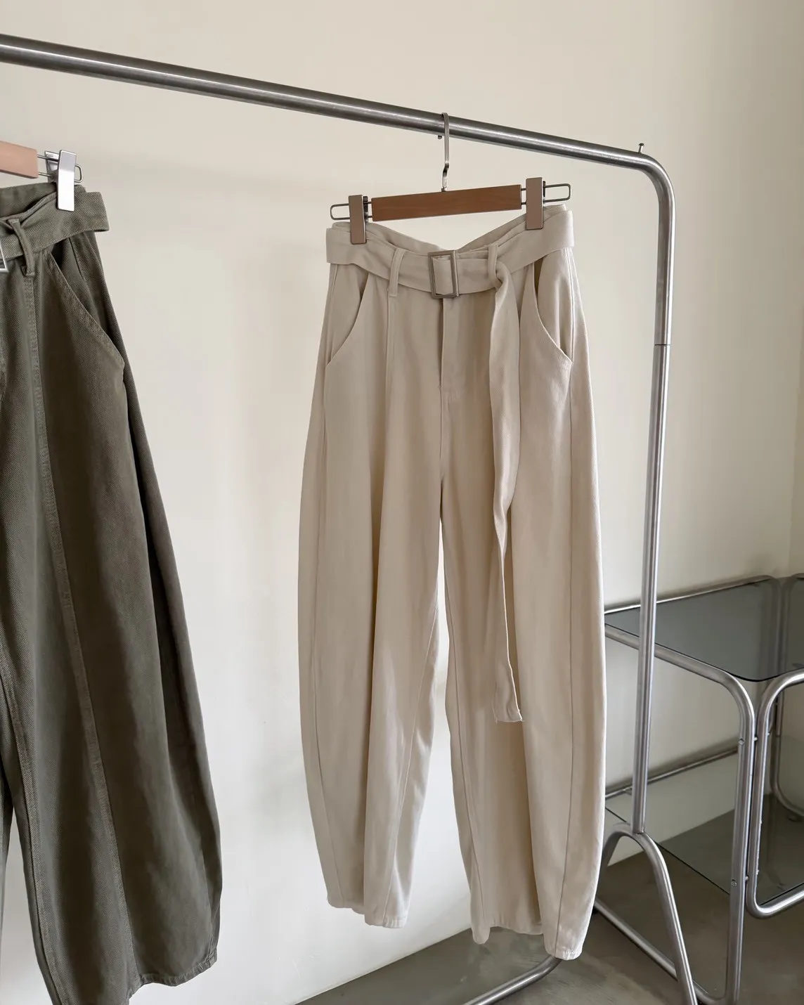 B0054(附繫帶)抹茶牛奶中線繭型褲(杏/綠)