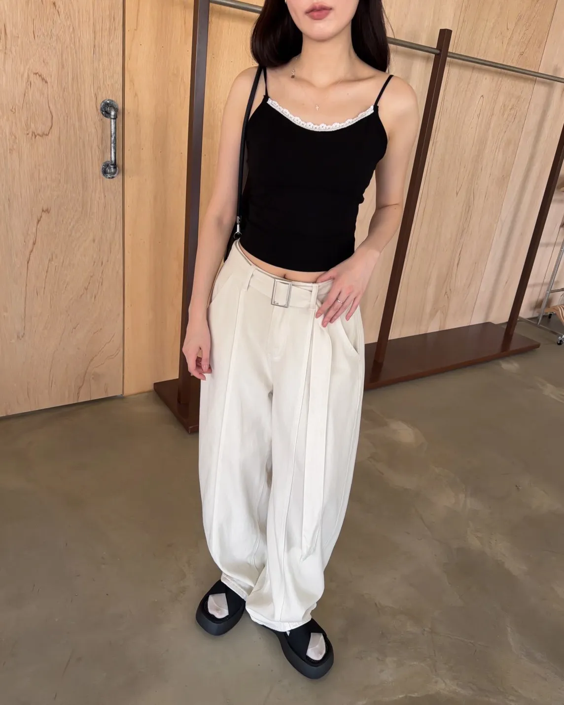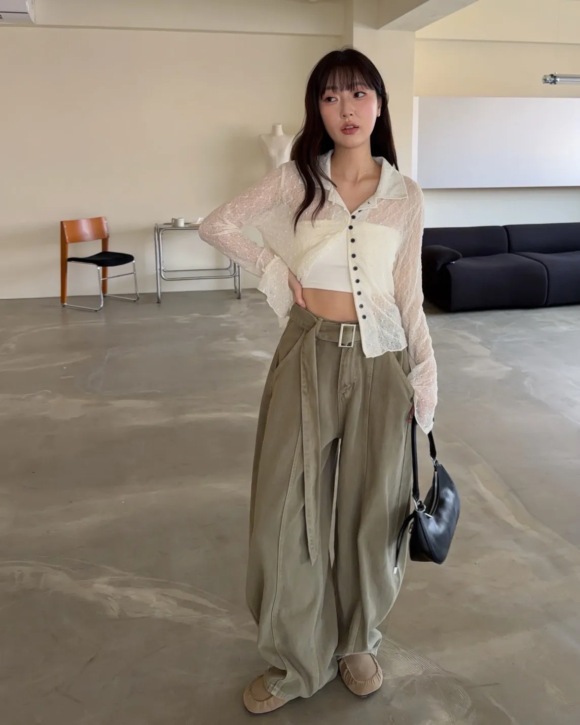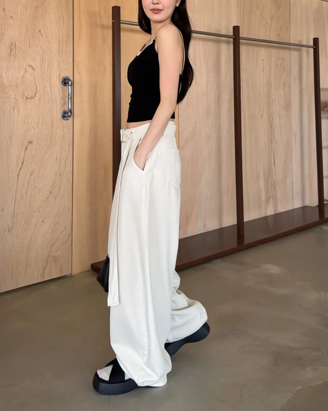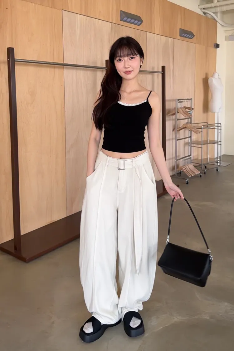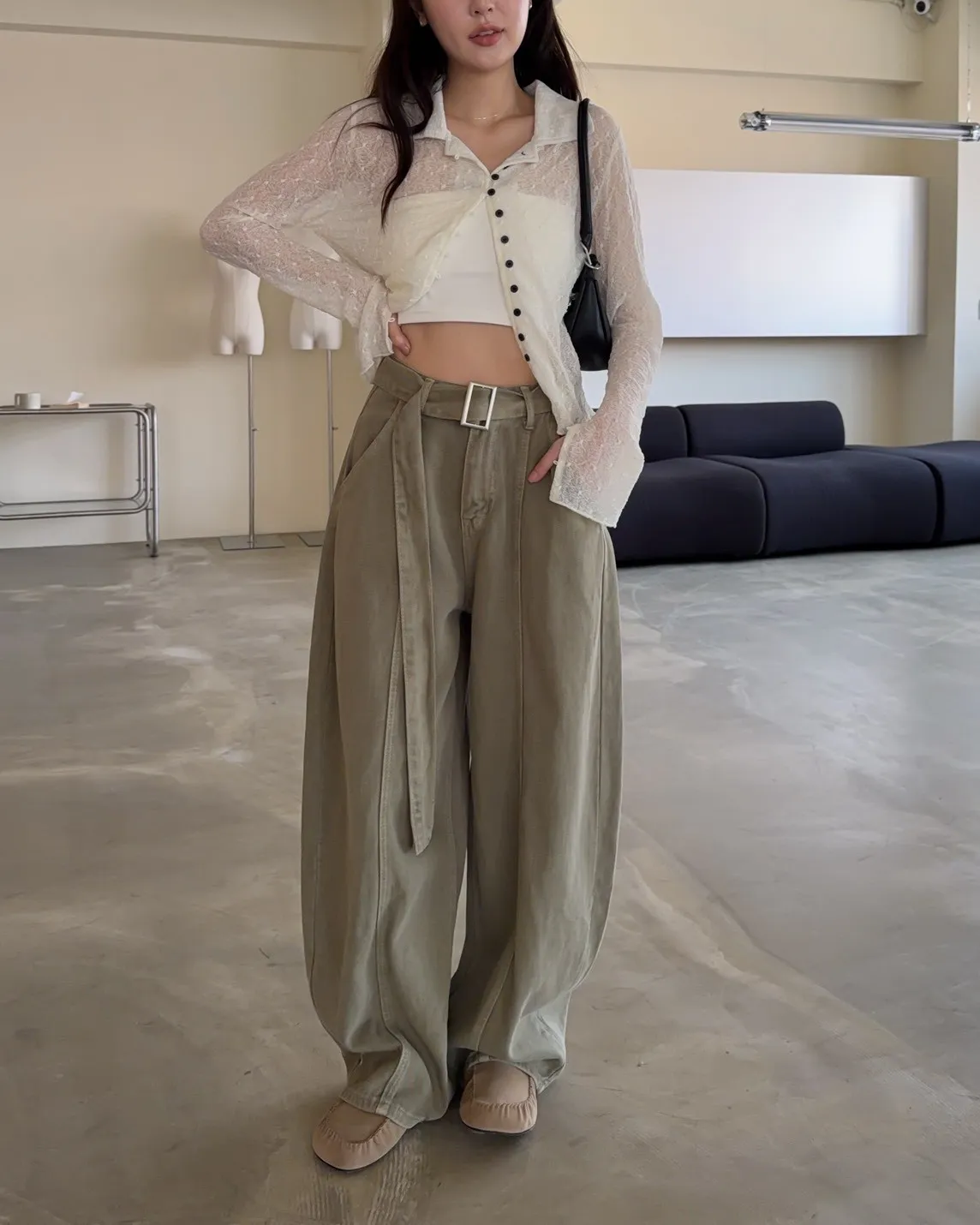 B0054(附繫帶)抹茶牛奶中線繭型褲(杏/綠)