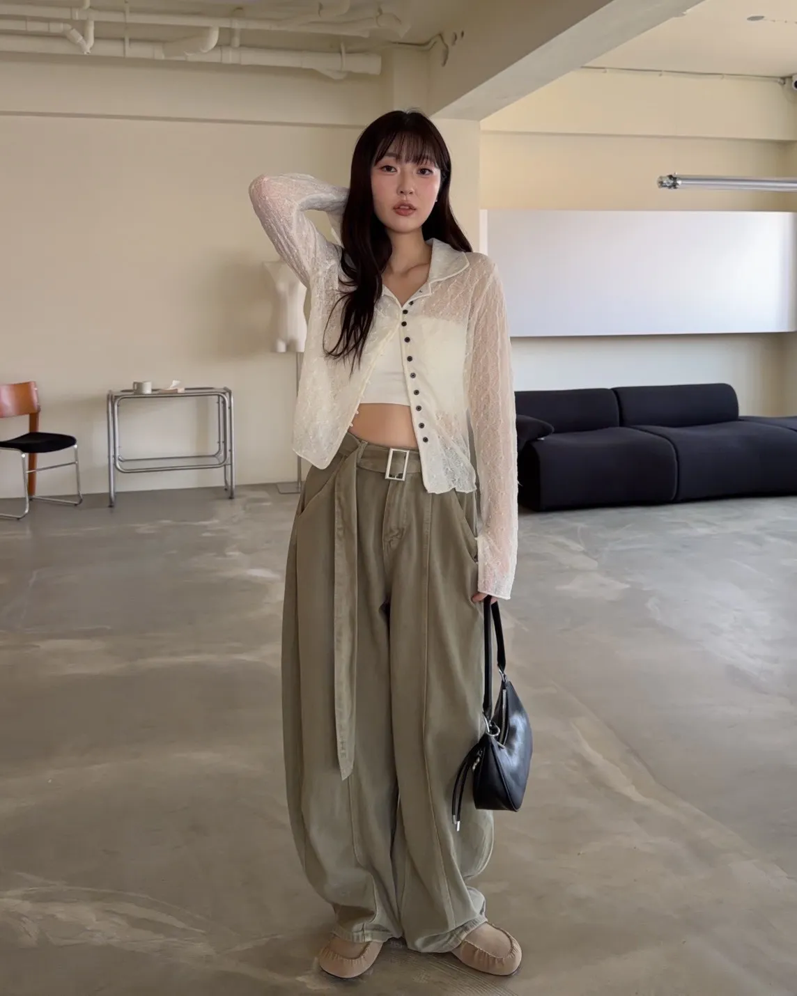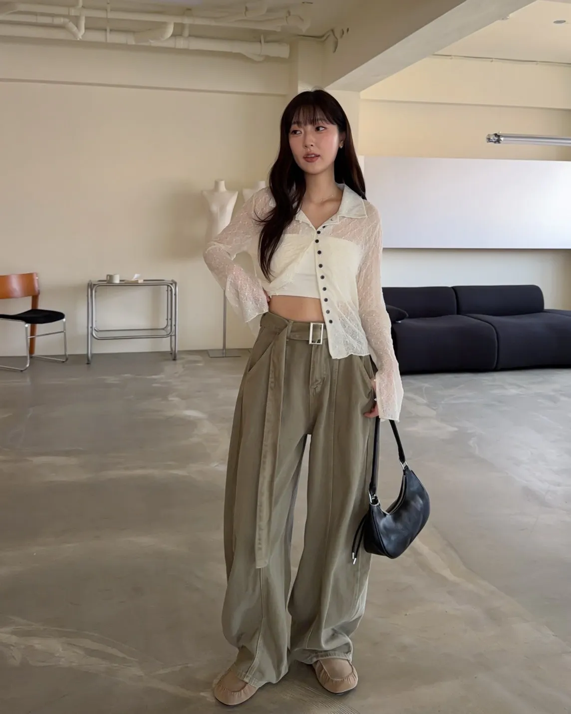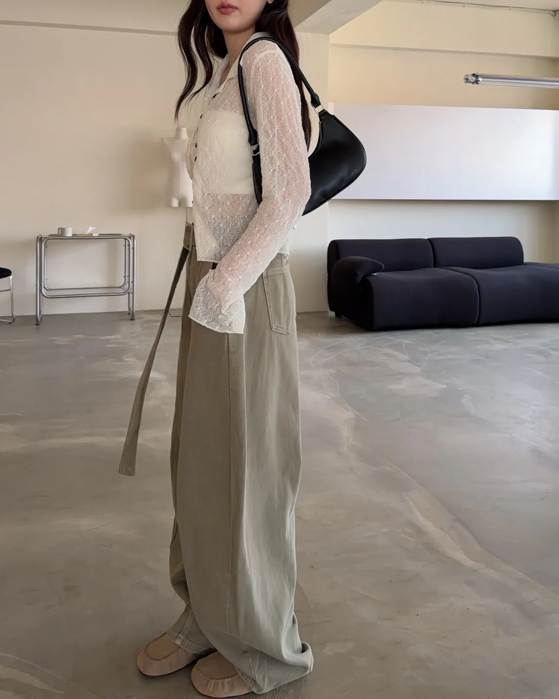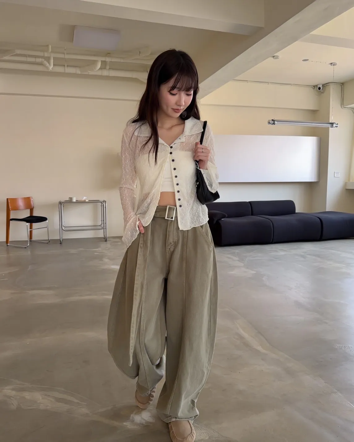B0054(附繫帶)抹茶牛奶中線繭型褲(杏/綠)