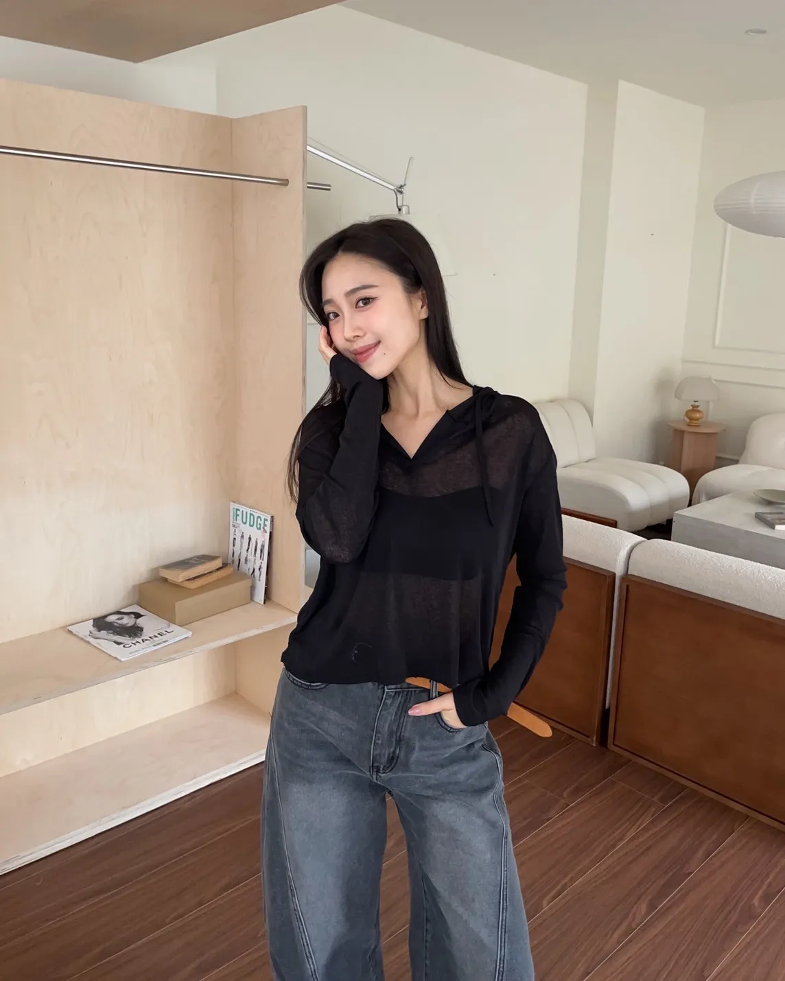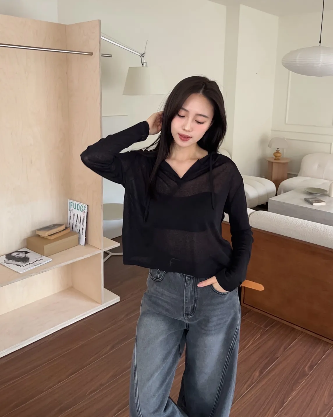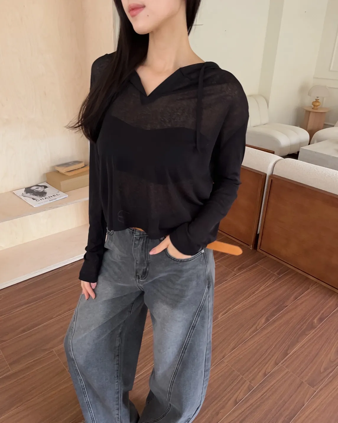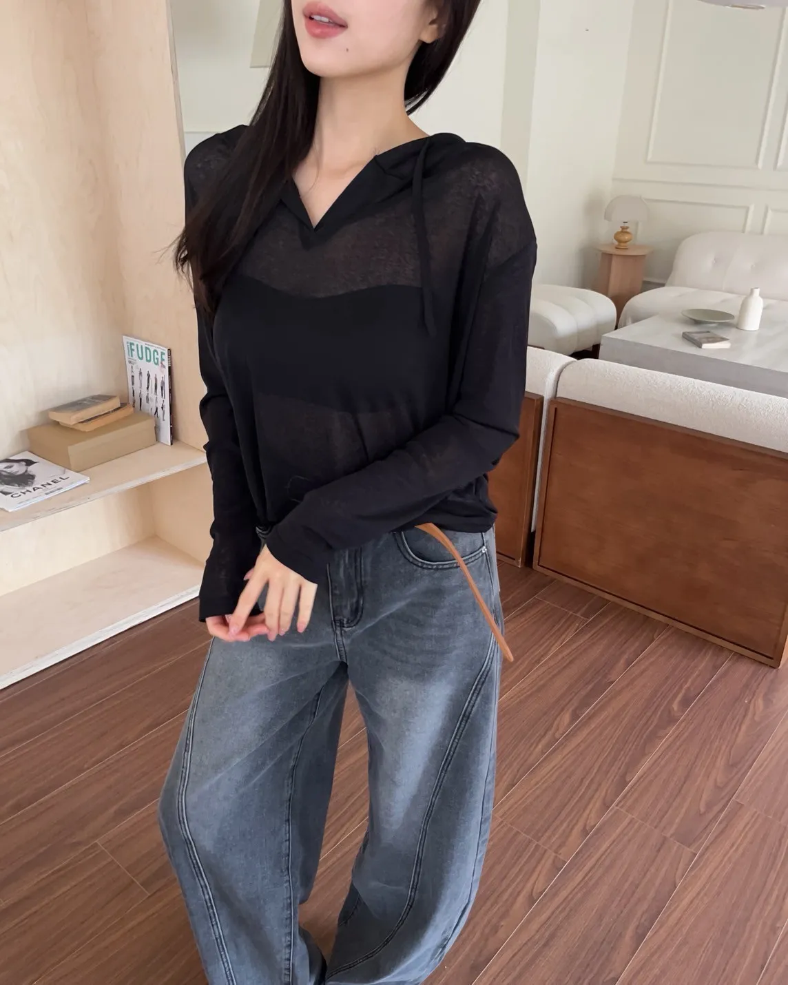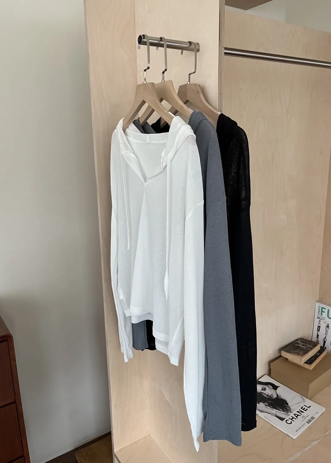 T0045抽繩連帽透膚防曬上衣(白/灰/黑)(售完不補)