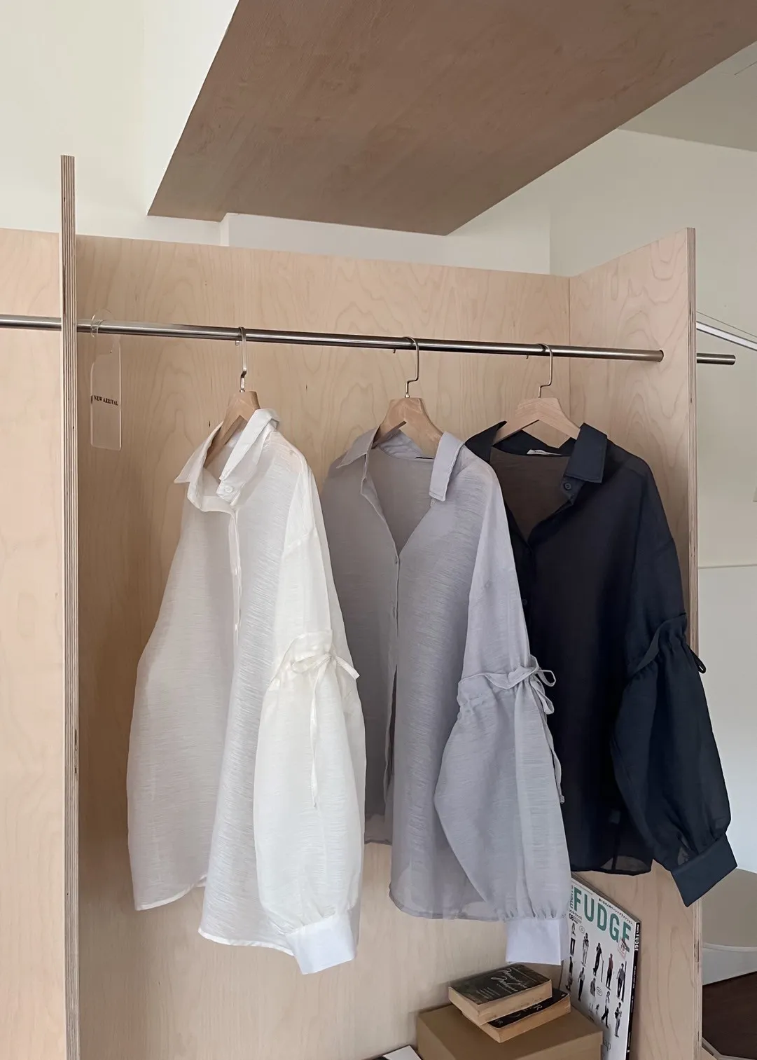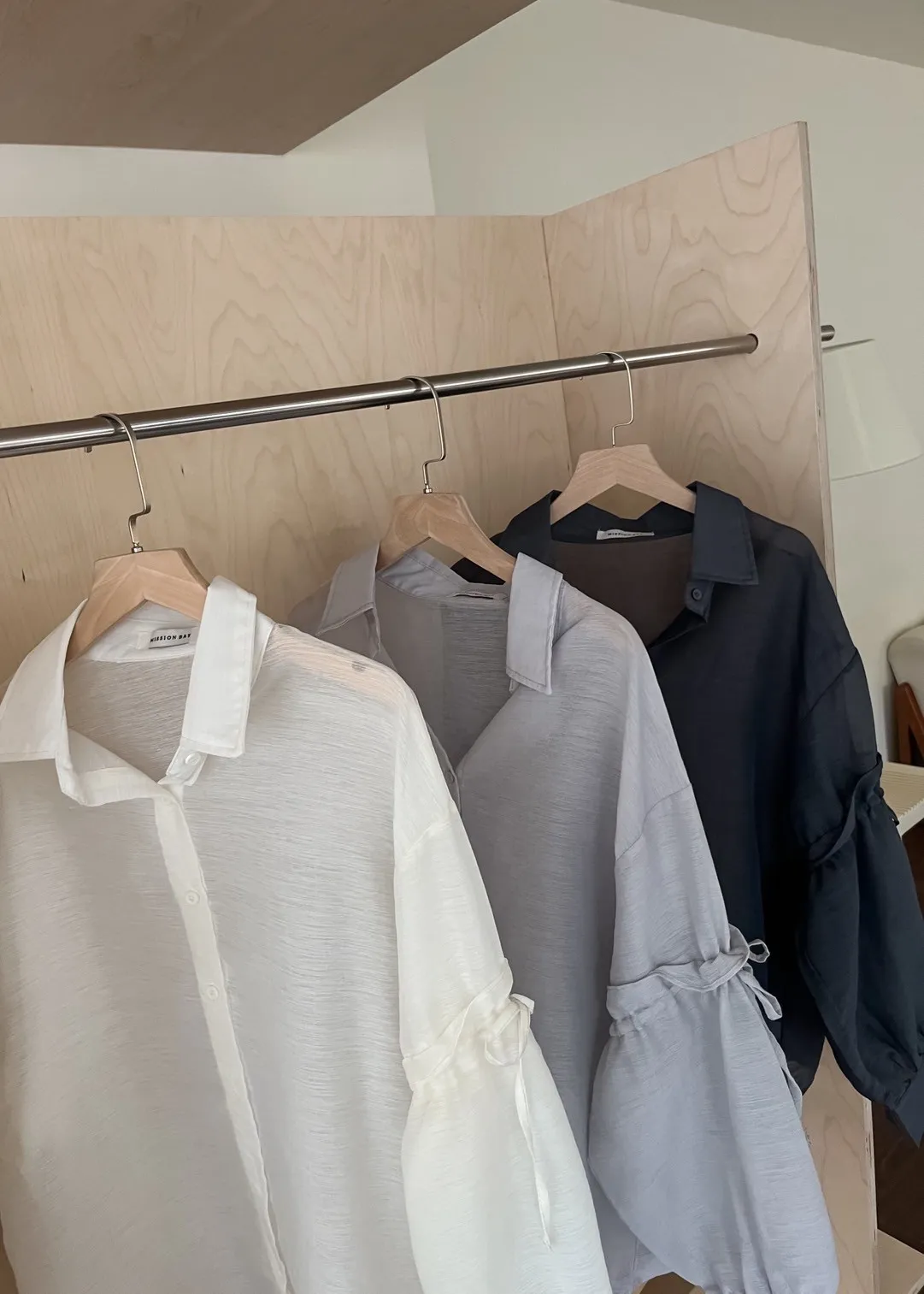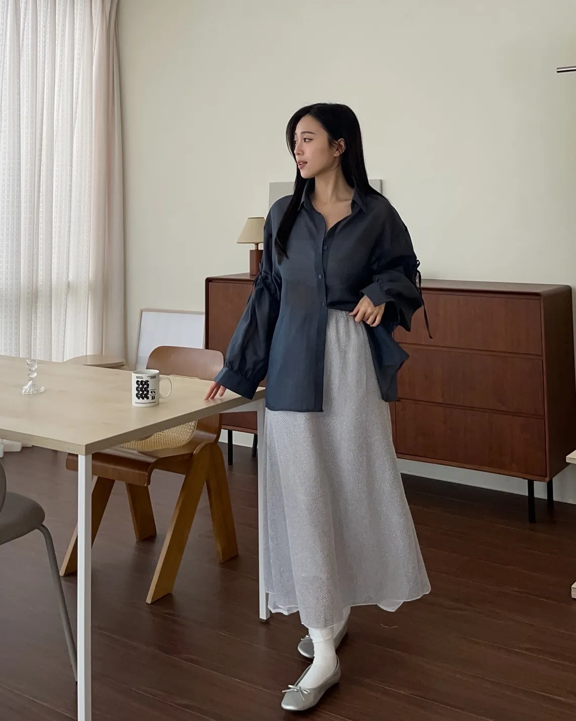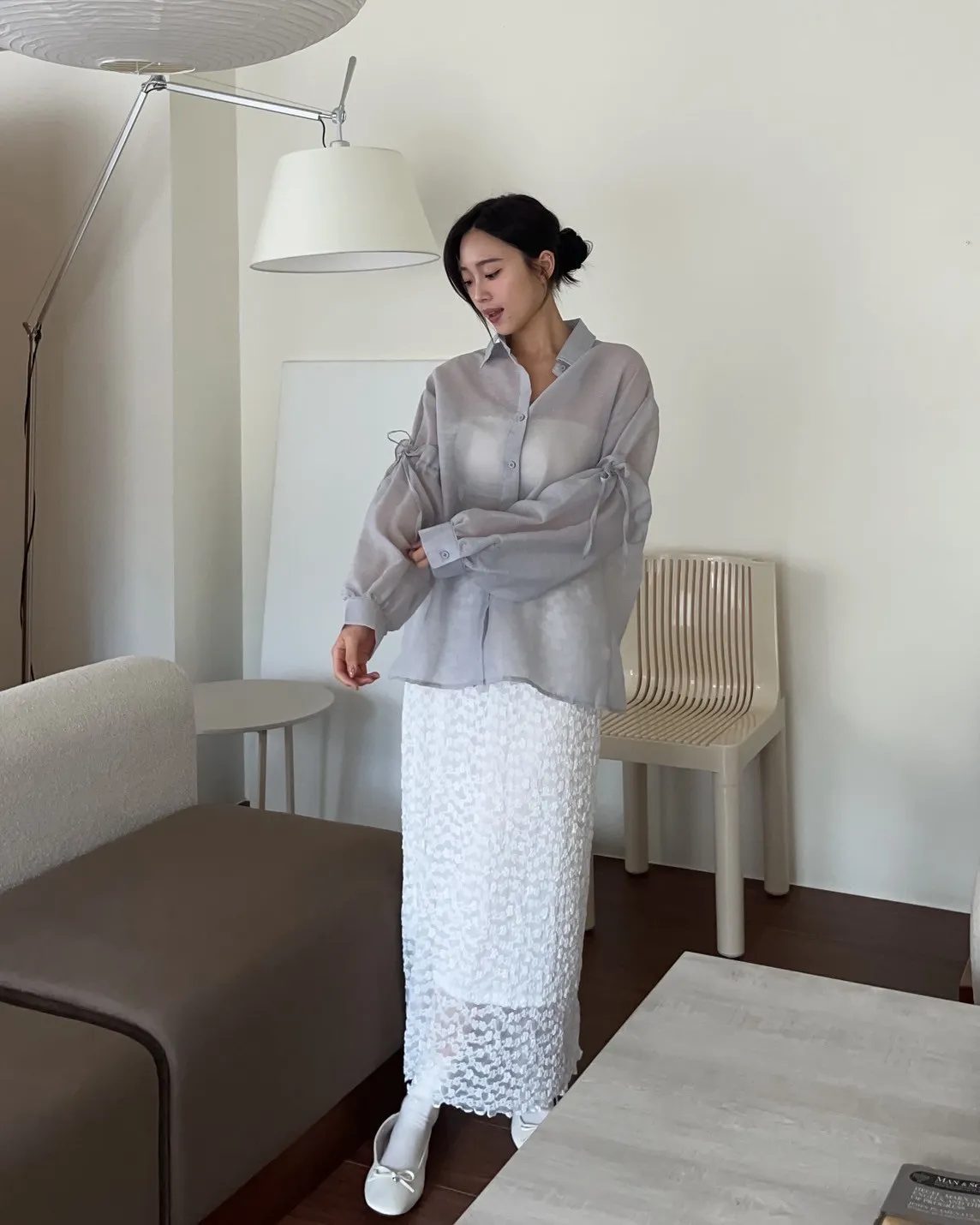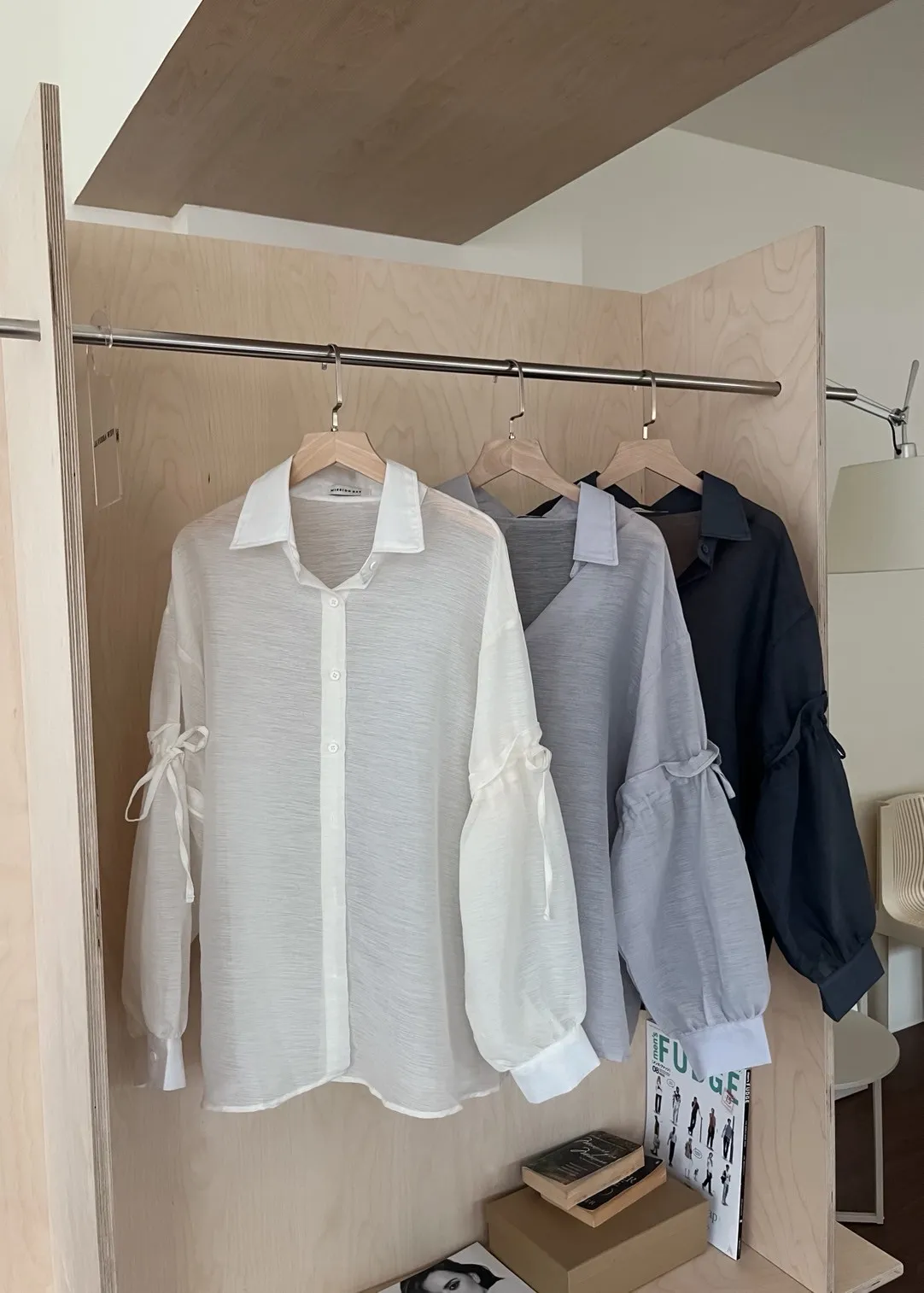 T0057清透感手袖抽繩透膚襯衫(米/淺灰/深灰)(售完不補)