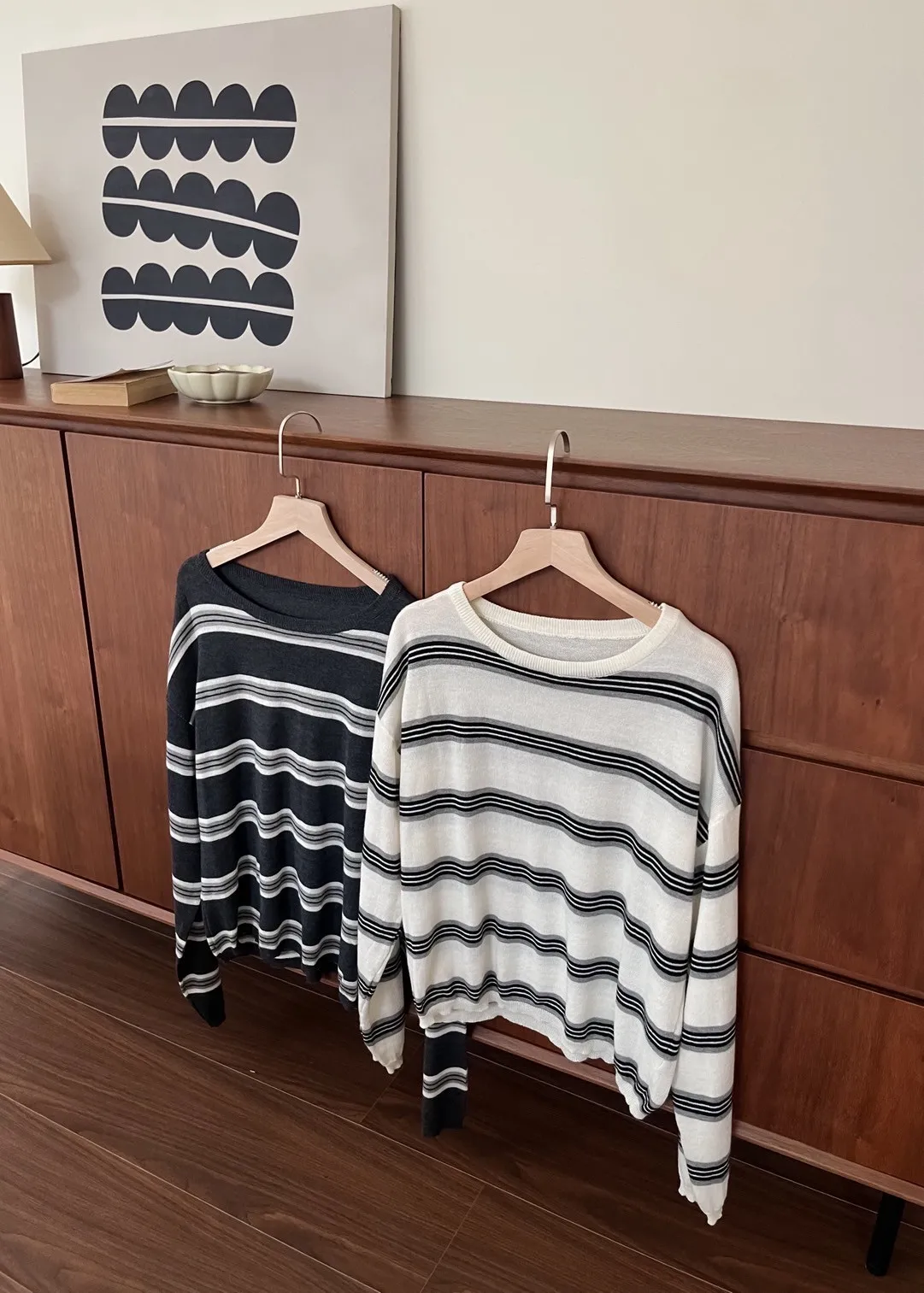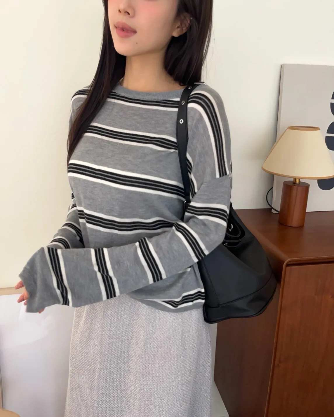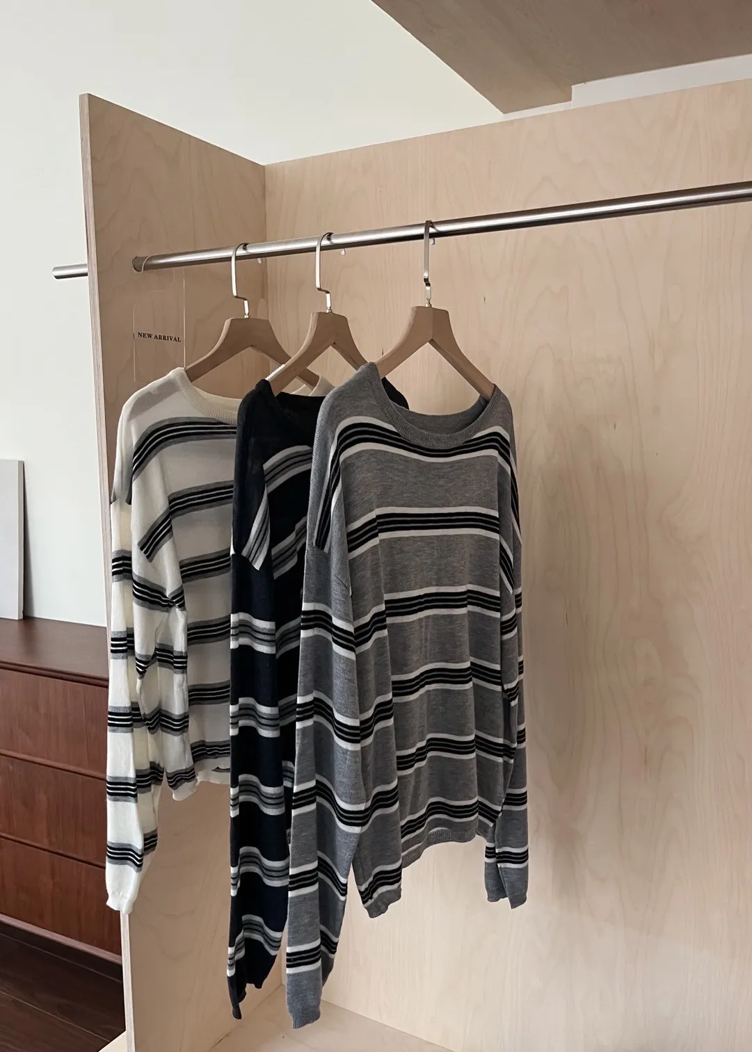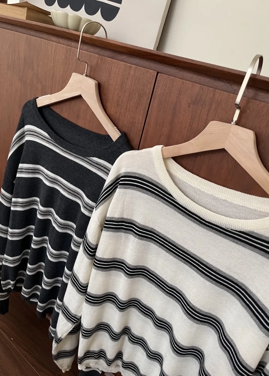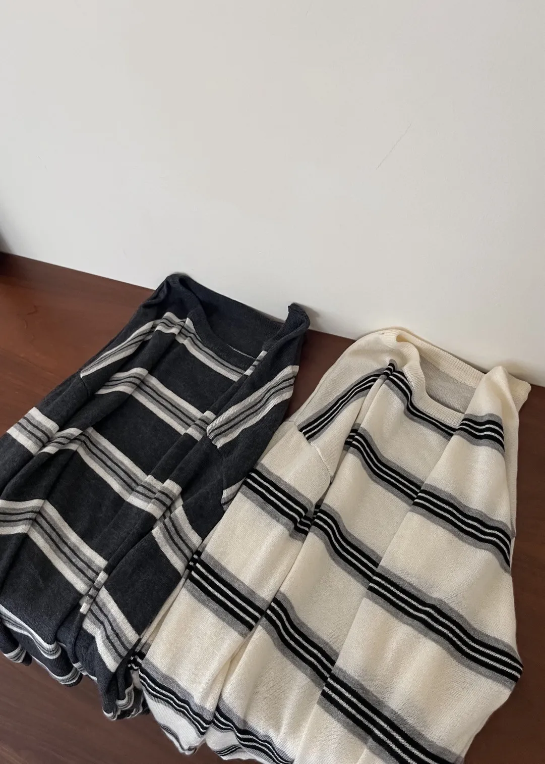 T0065綿綿軟軟橫條薄毛衣(米白/淺灰/深灰)