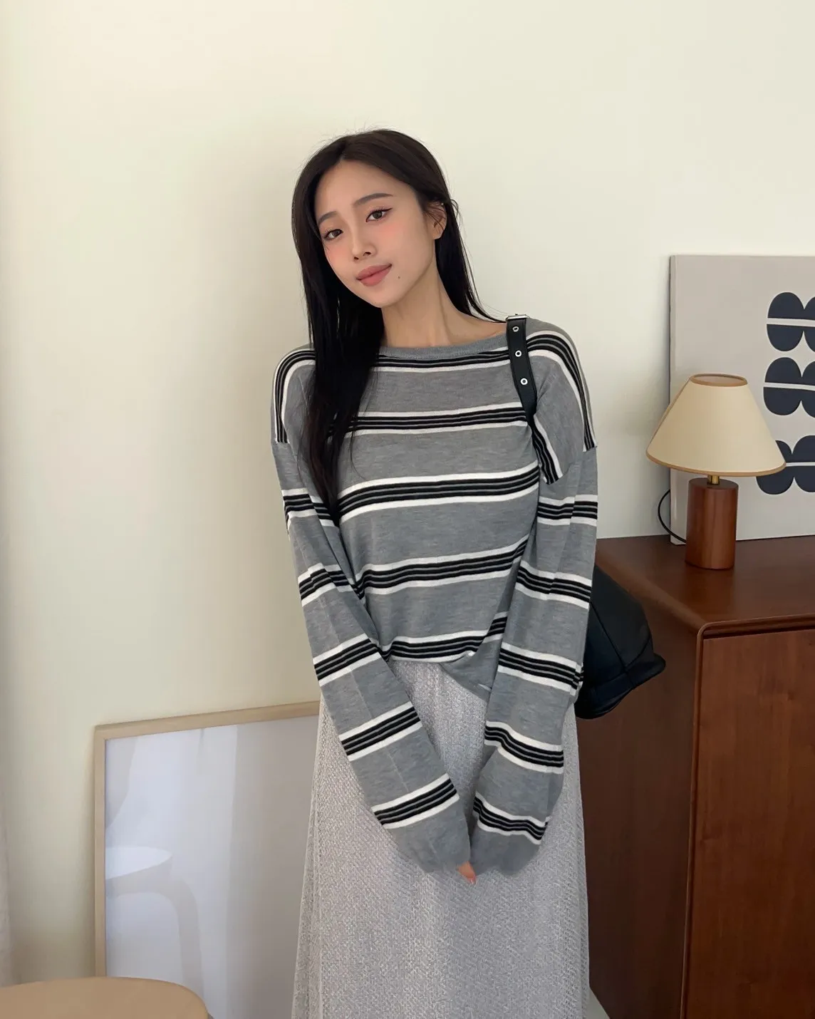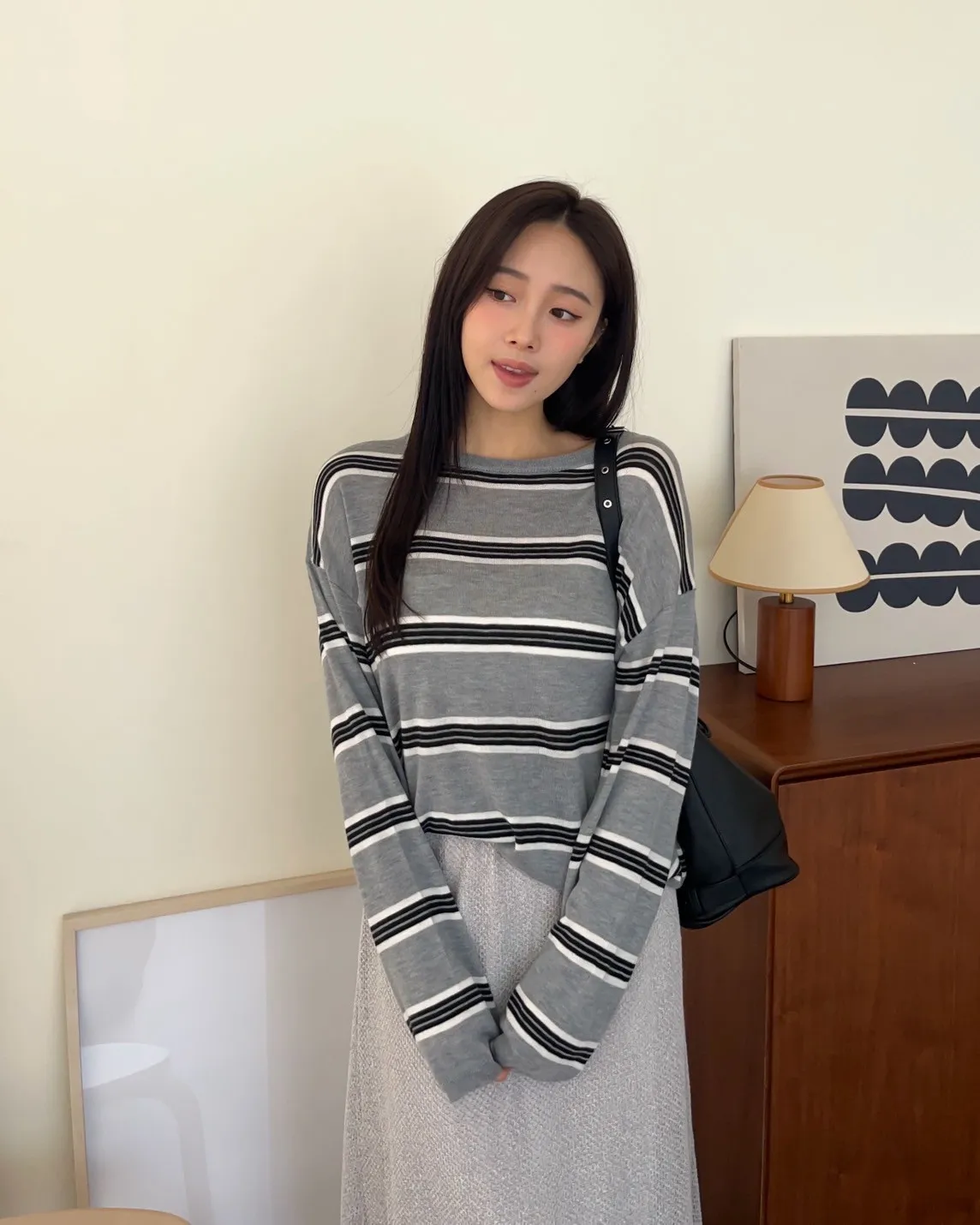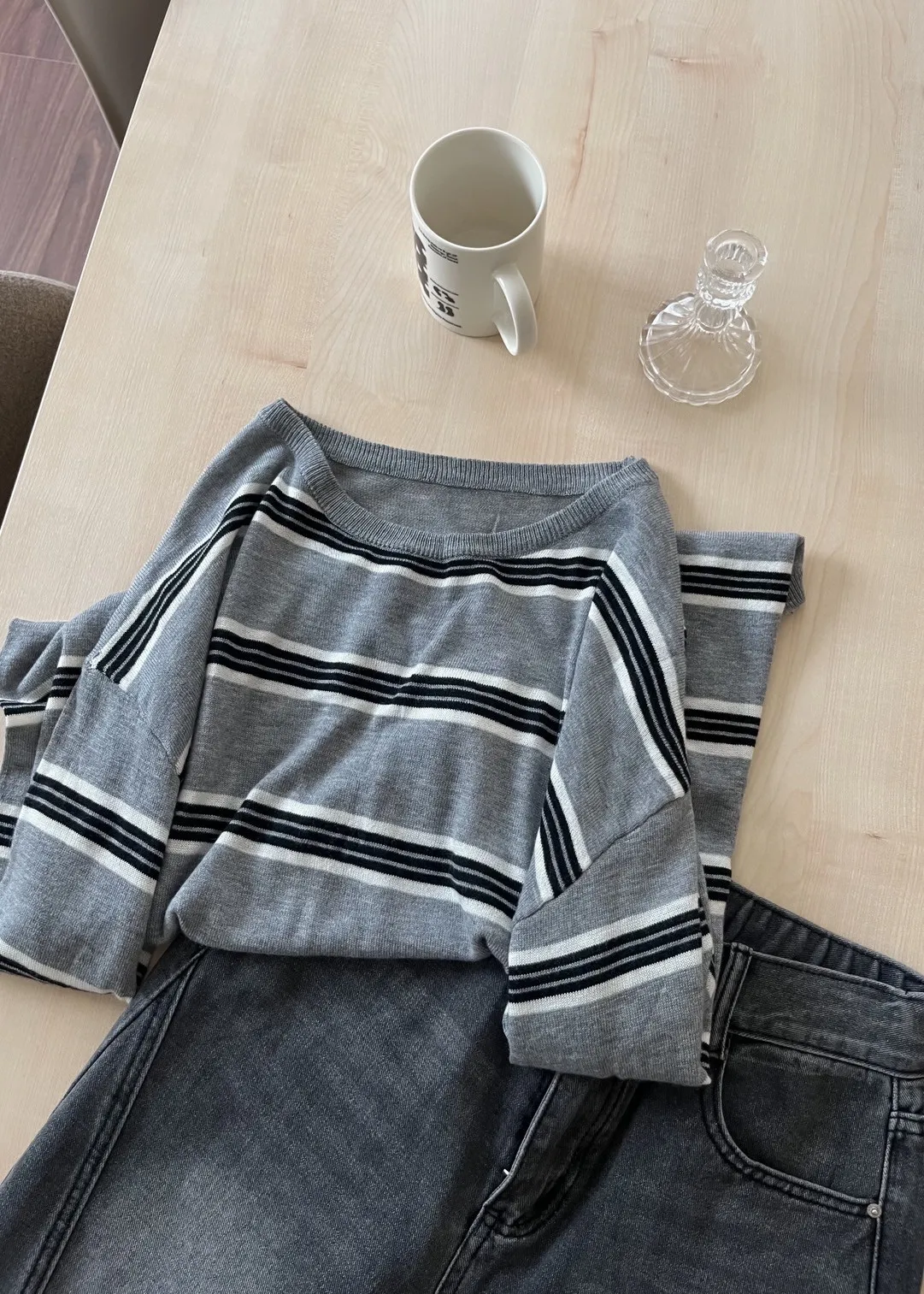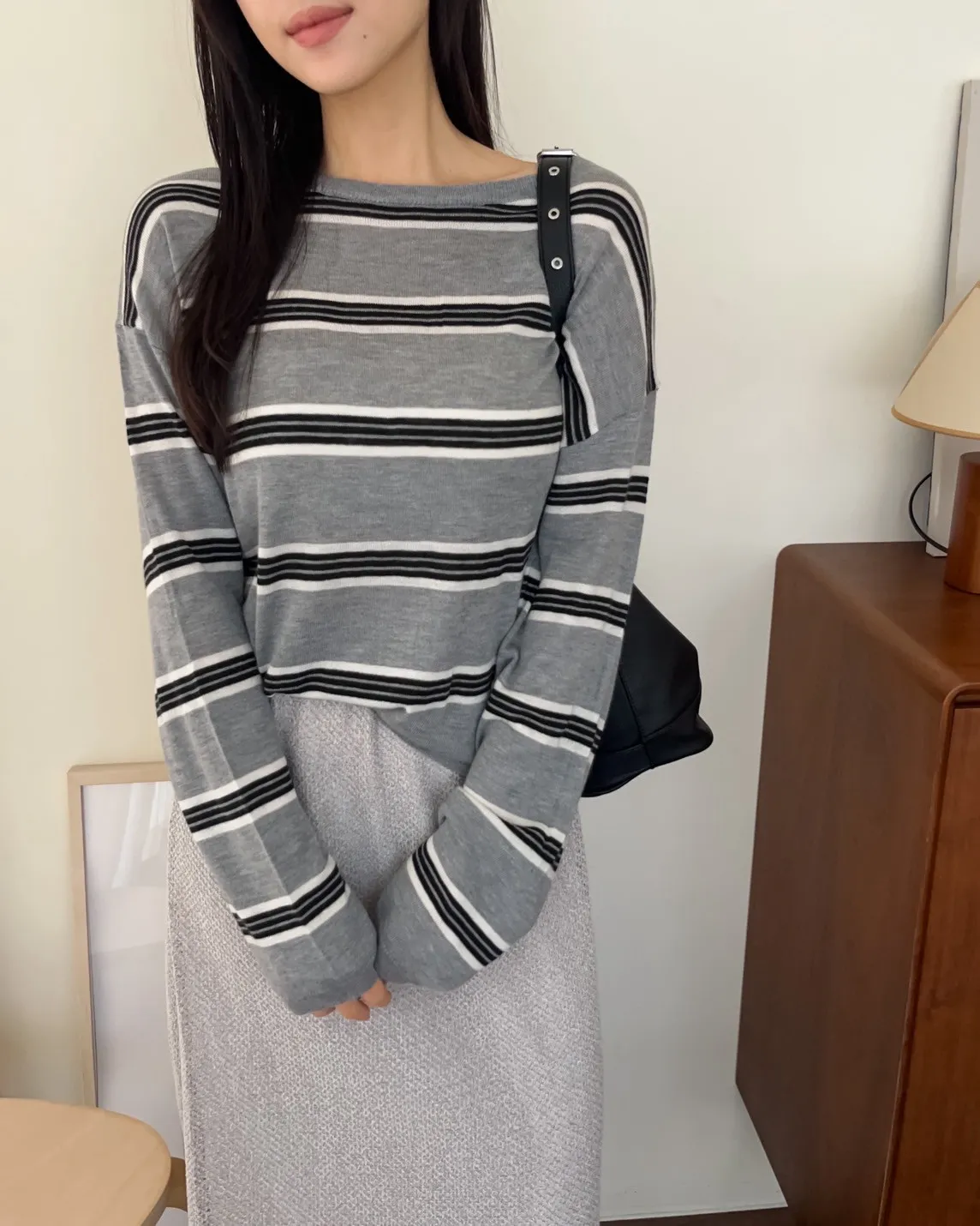 T0065綿綿軟軟橫條薄毛衣(米白/淺灰/深灰)